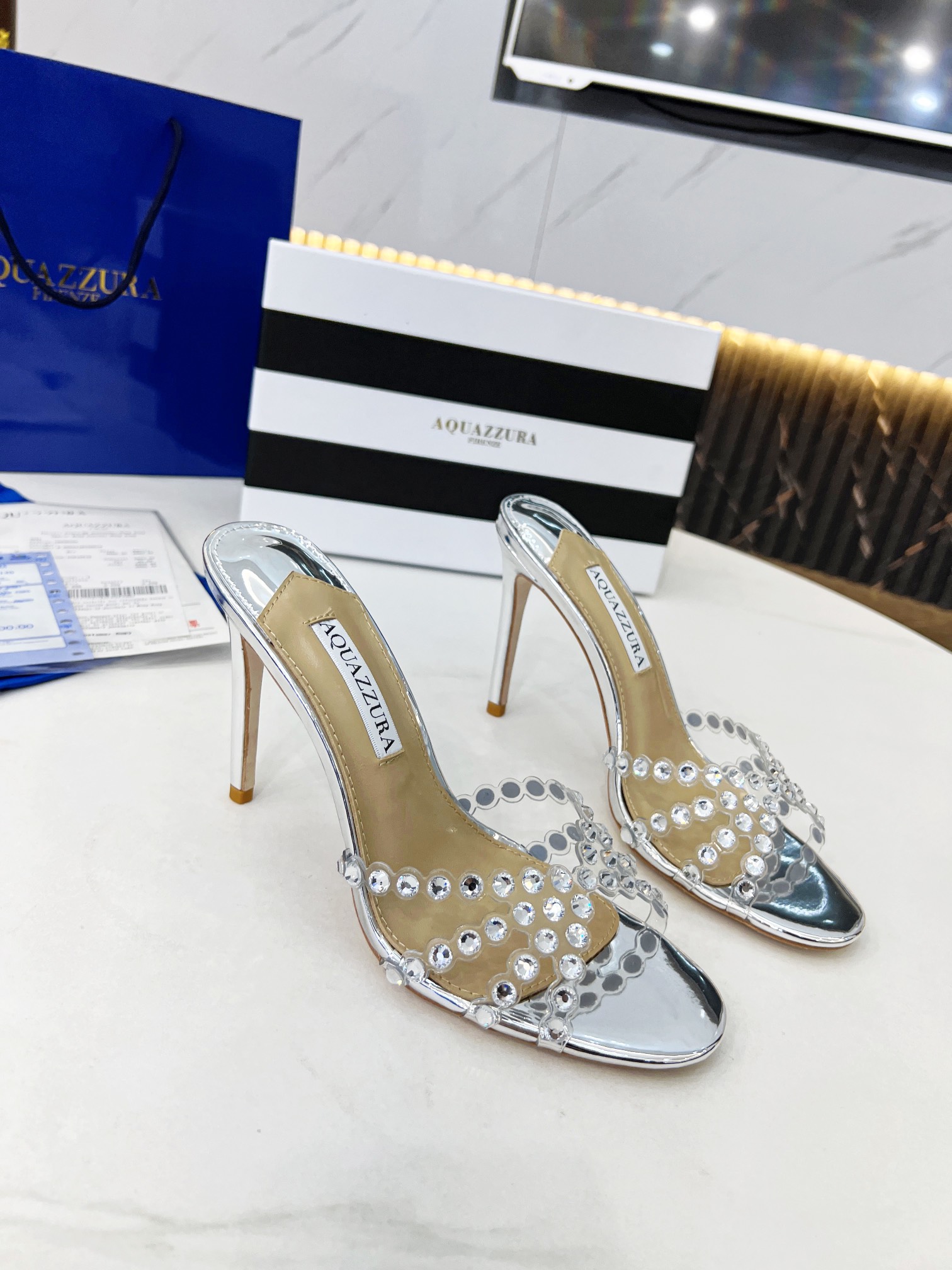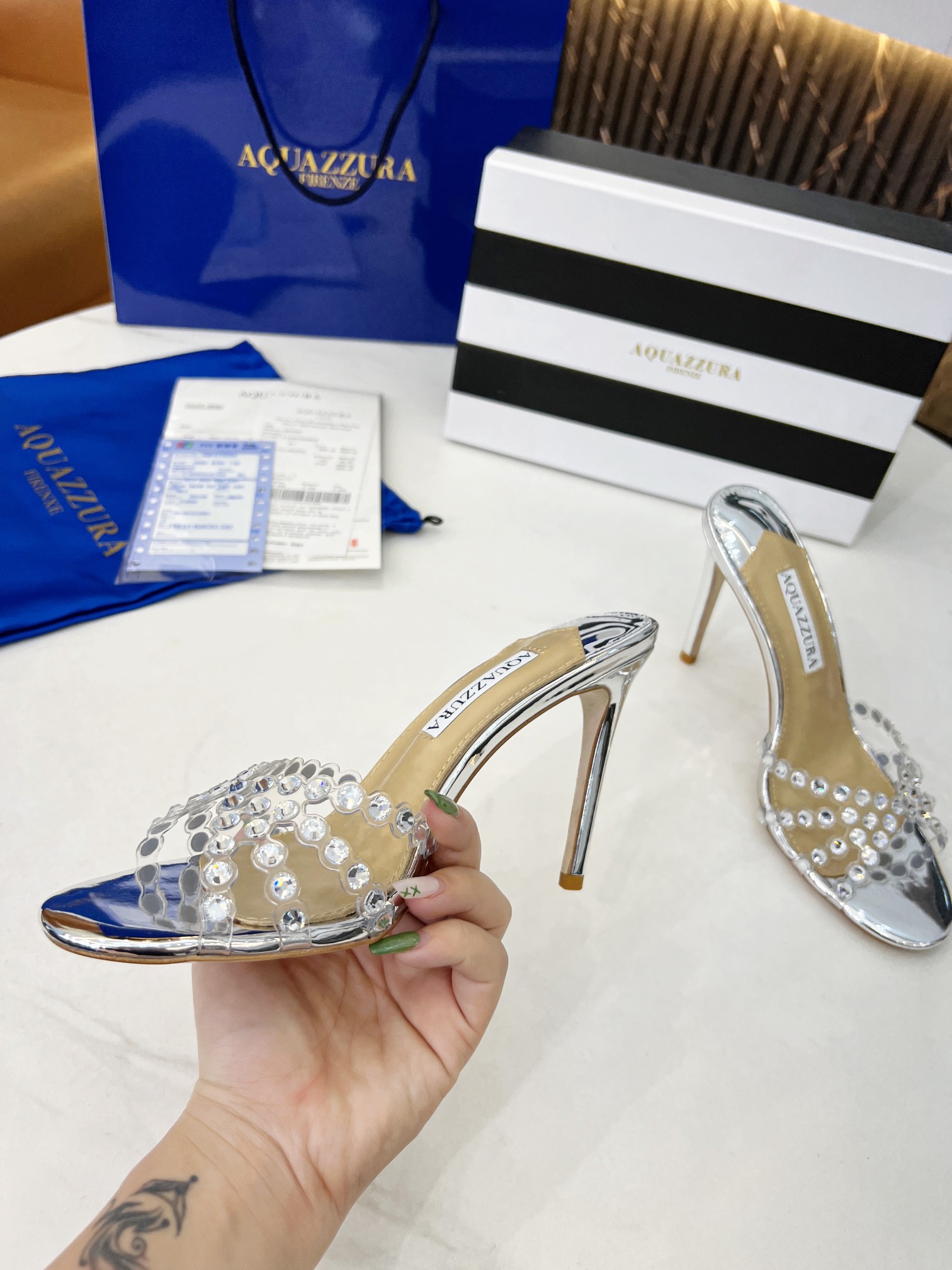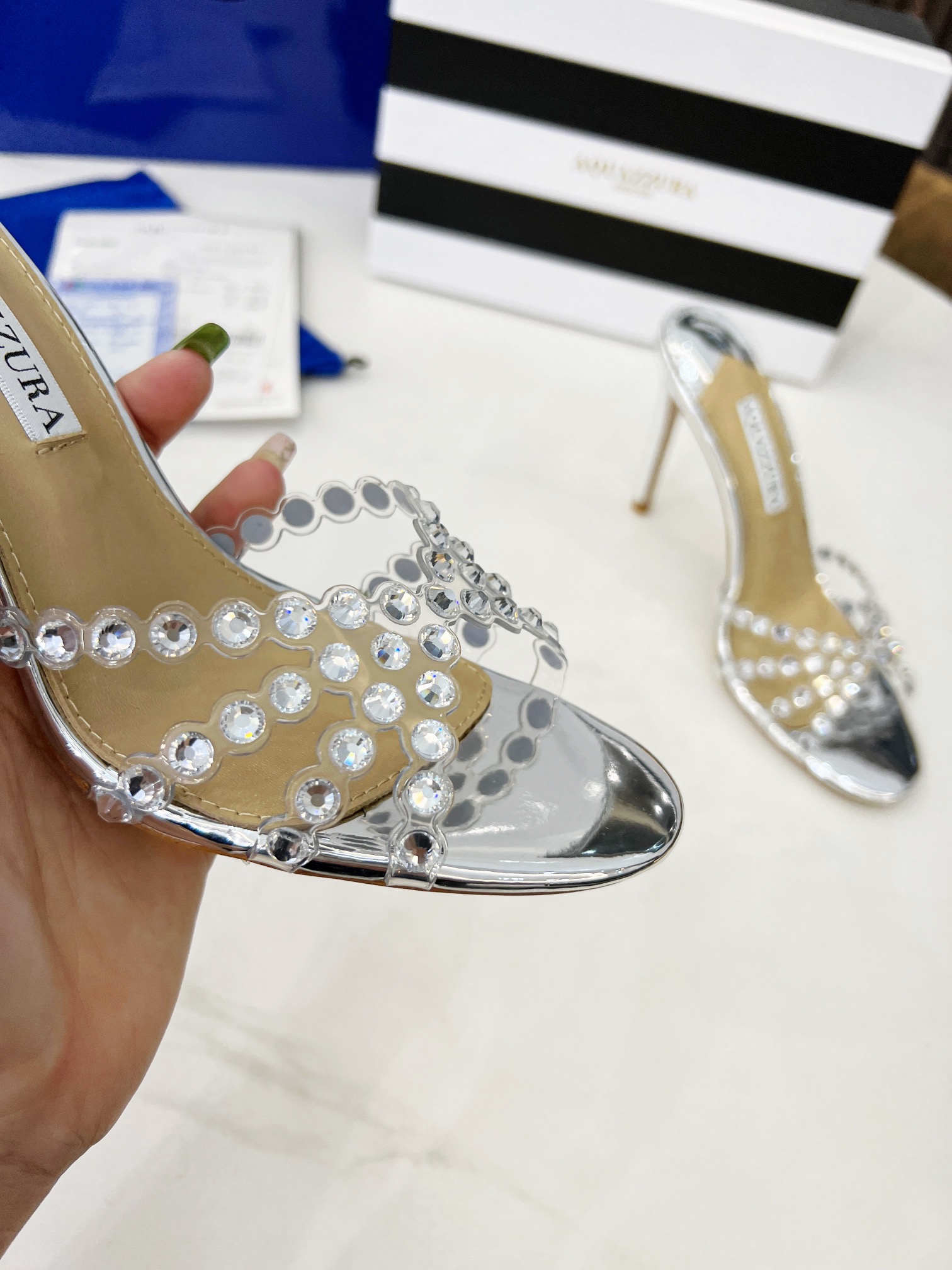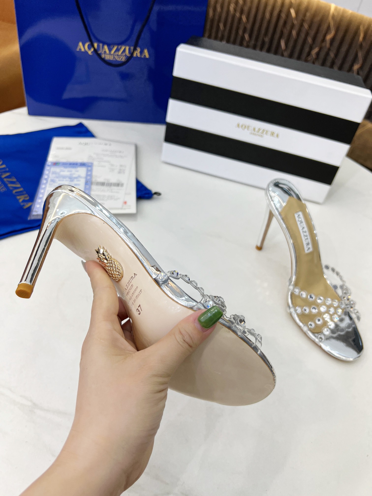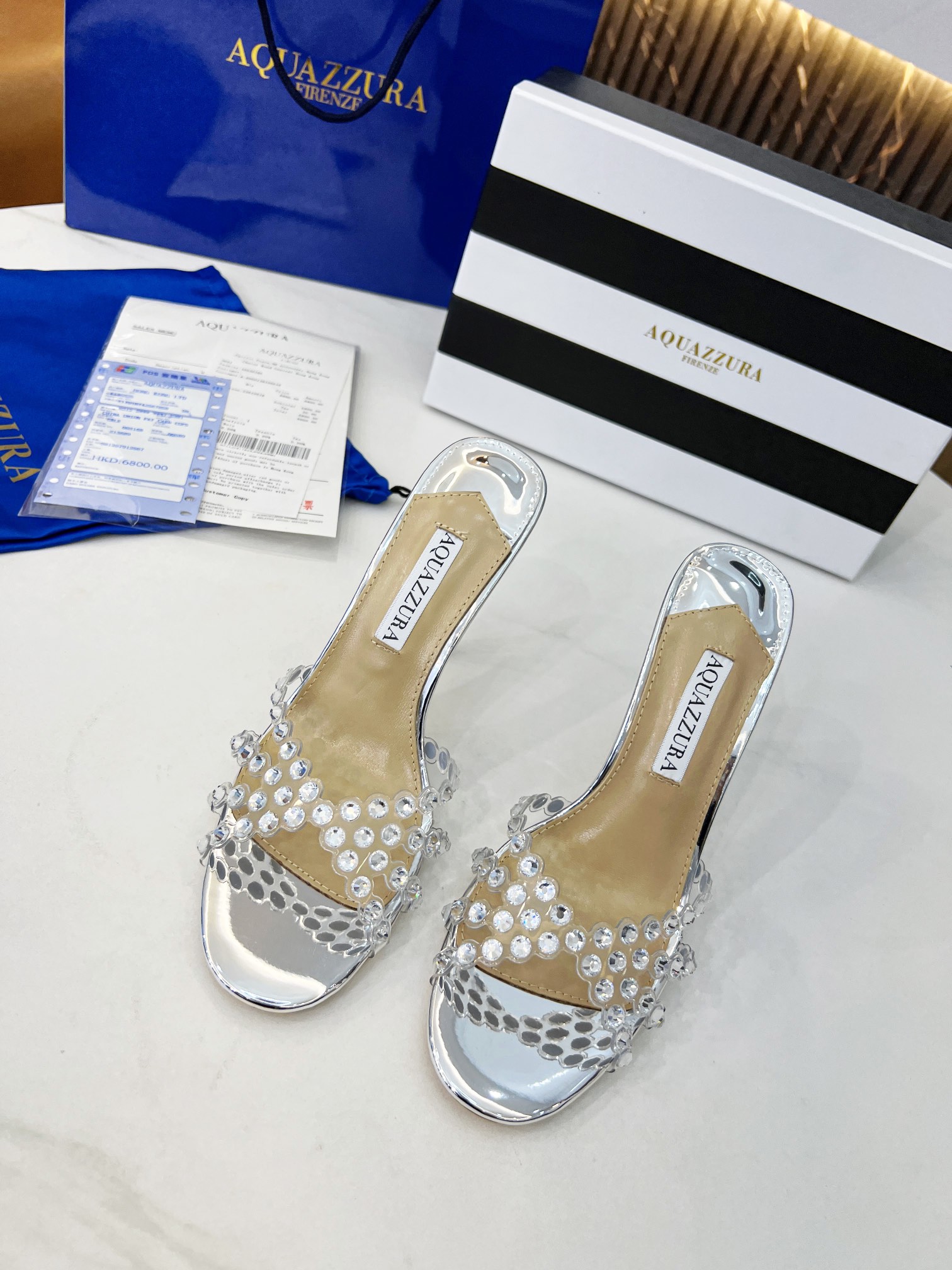 这款鞋子是AAAAA 1:1 质量 (非常棒). 使用了和原版一模一样的材料. 商标部分也保持了和Aquazzura一样. 图片拍摄是实物鞋子拍摄, 您所收到的实物保证和我们图片一模一样.