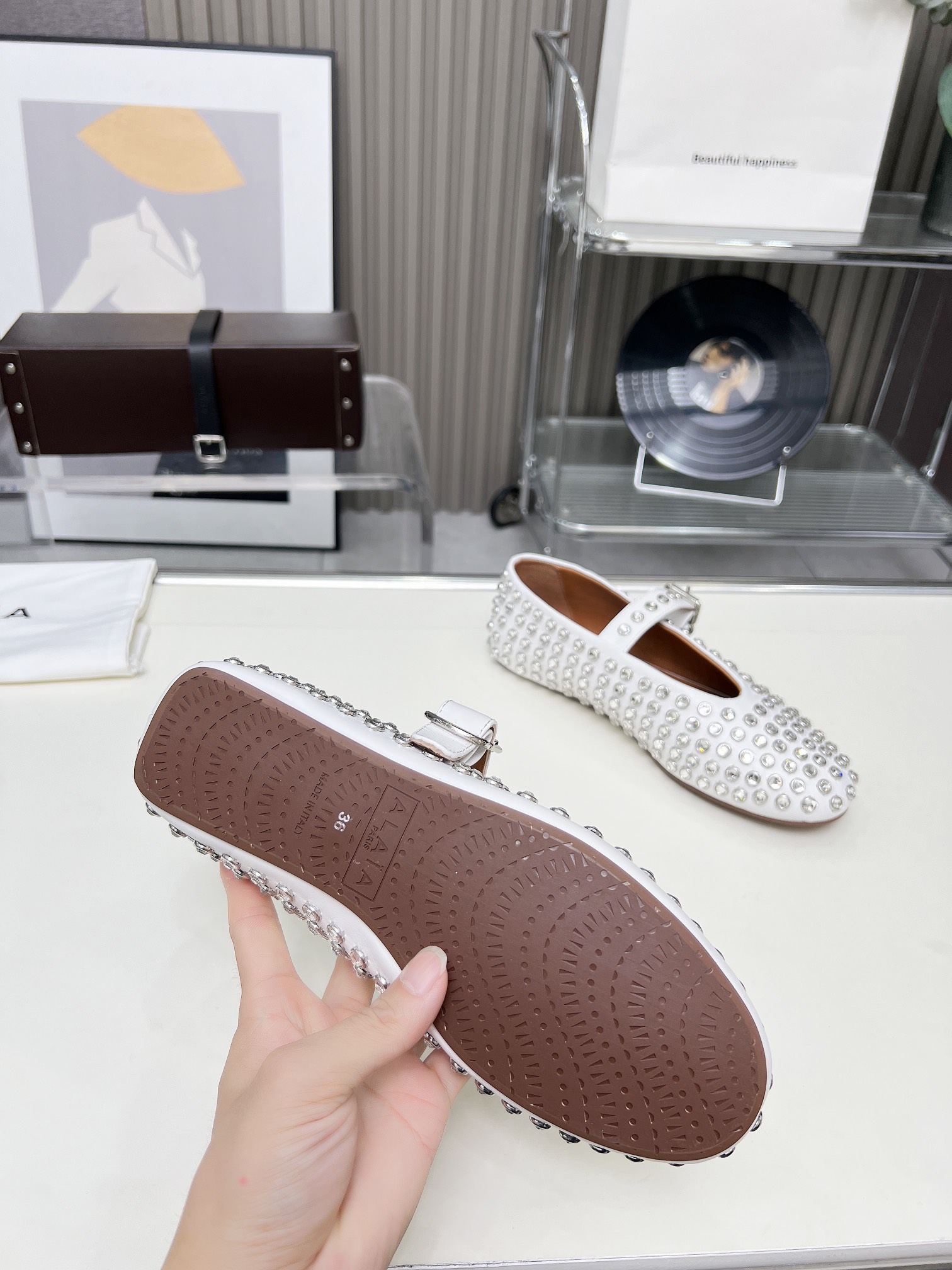 这款鞋子是AAAAA 1:1 质量 (非常棒). 使用了和原版一模一样的材料. 商标部分也保持了和Alaia一样. 图片拍摄是实物鞋子拍摄, 您所收到的实物保证和我们图片一模一样.