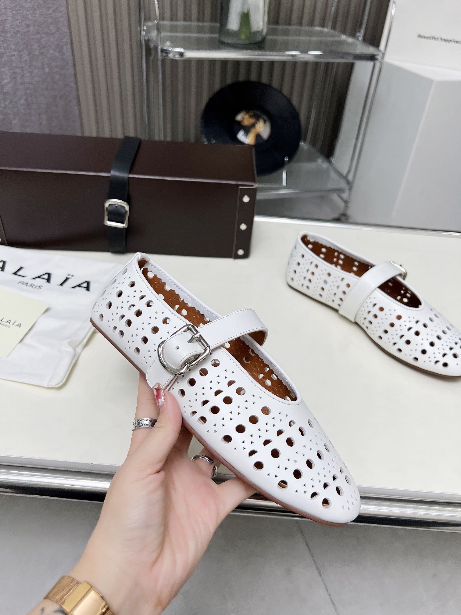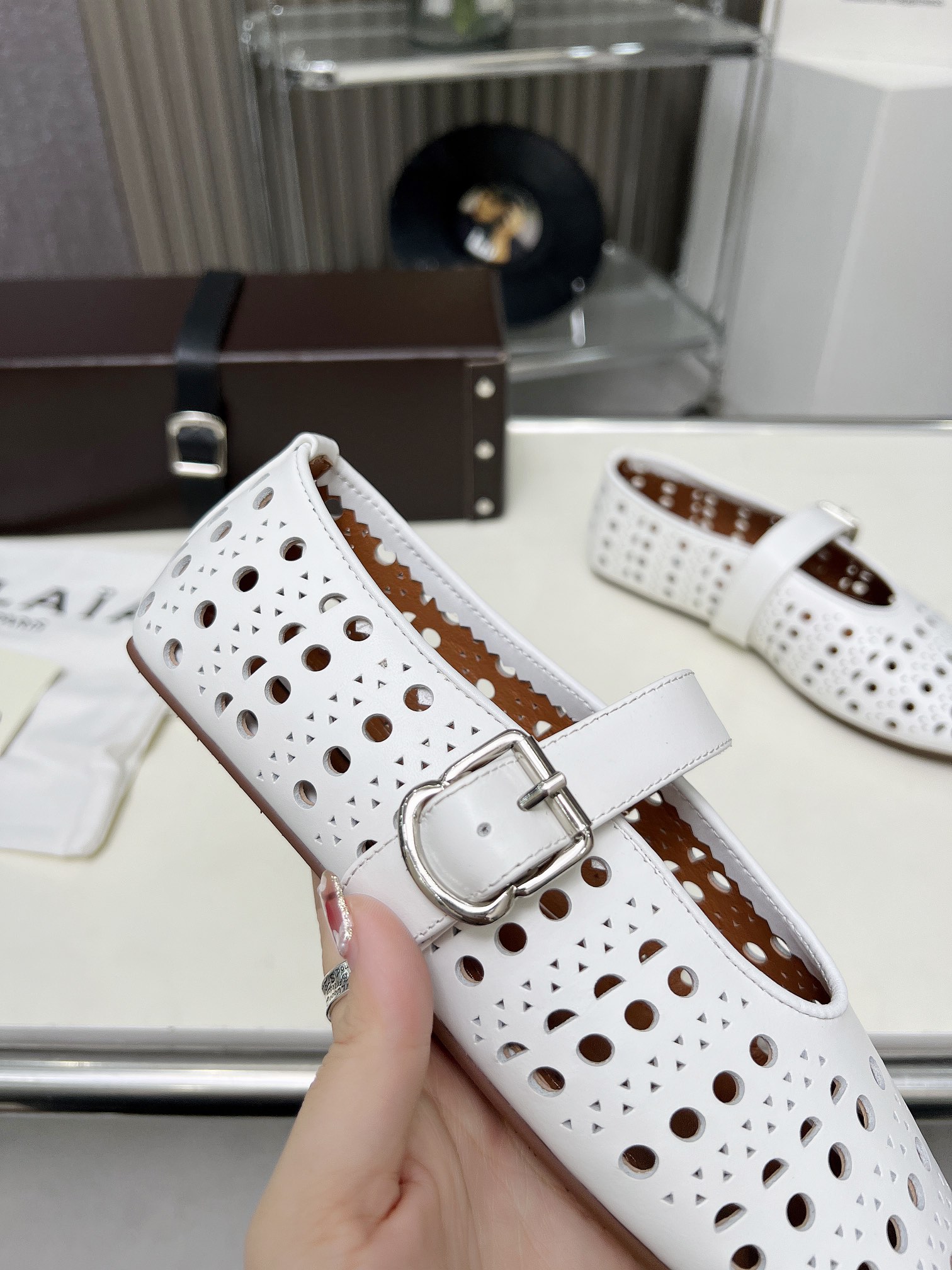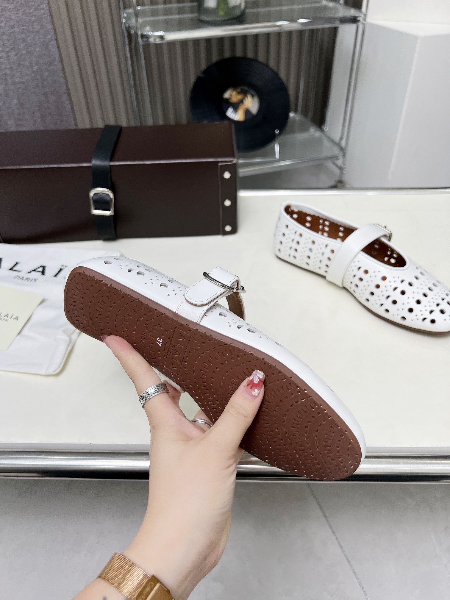 这款鞋子是AAAAA 1:1 质量 (非常棒). 使用了和原版一模一样的材料. 商标部分也保持了和Alaia一样. 图片拍摄是实物鞋子拍摄, 您所收到的实物保证和我们图片一模一样.