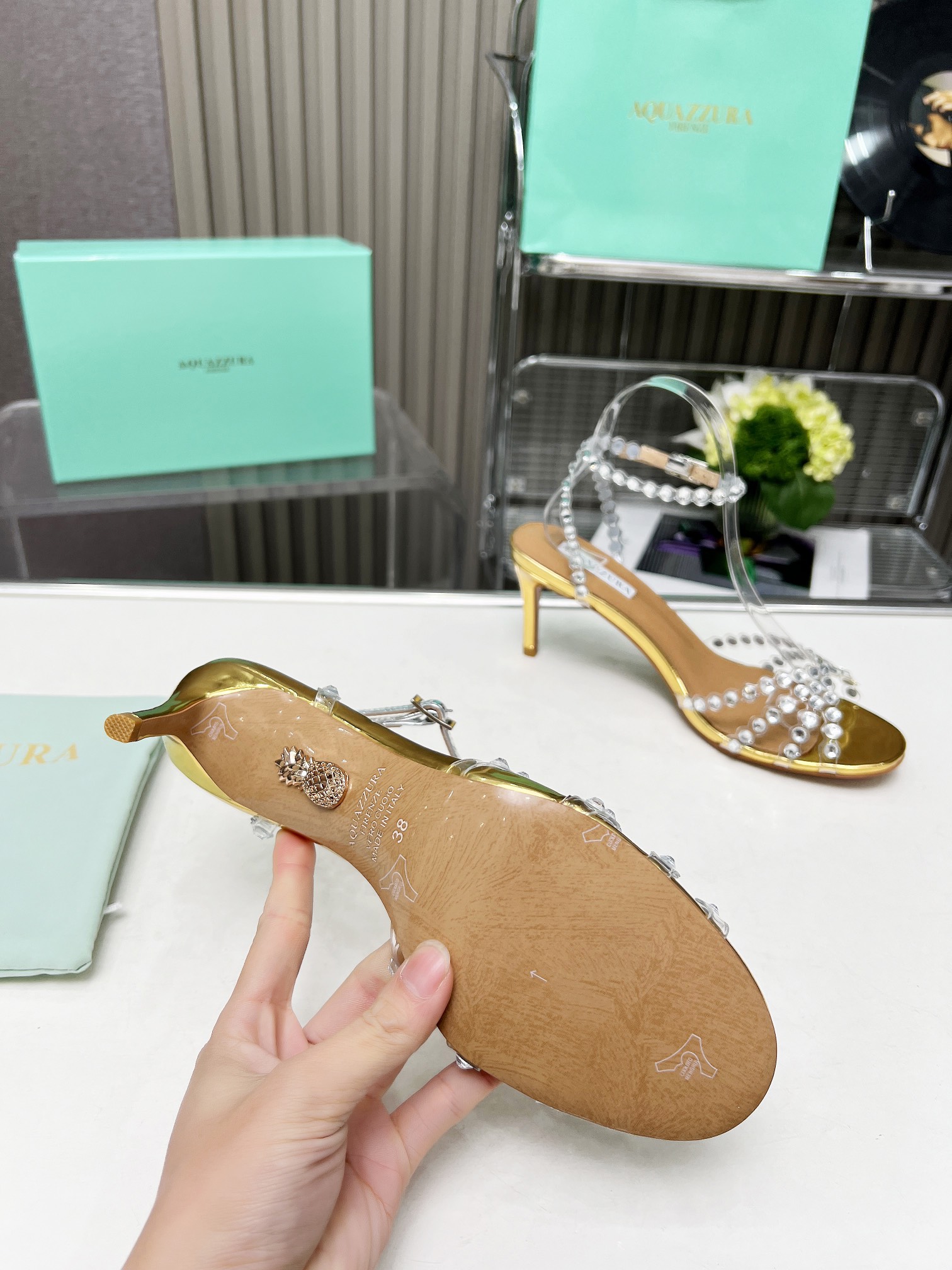 这款鞋子是AAAAA 1:1 质量 (非常棒). 使用了和原版一模一样的材料. 商标部分也保持了和Aquazzura一样. 图片拍摄是实物鞋子拍摄, 您所收到的实物保证和我们图片一模一样.