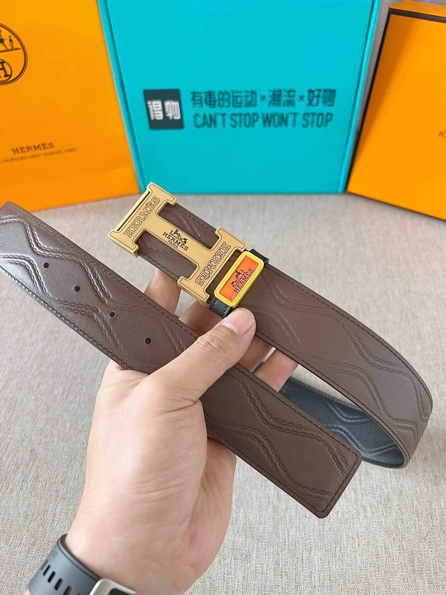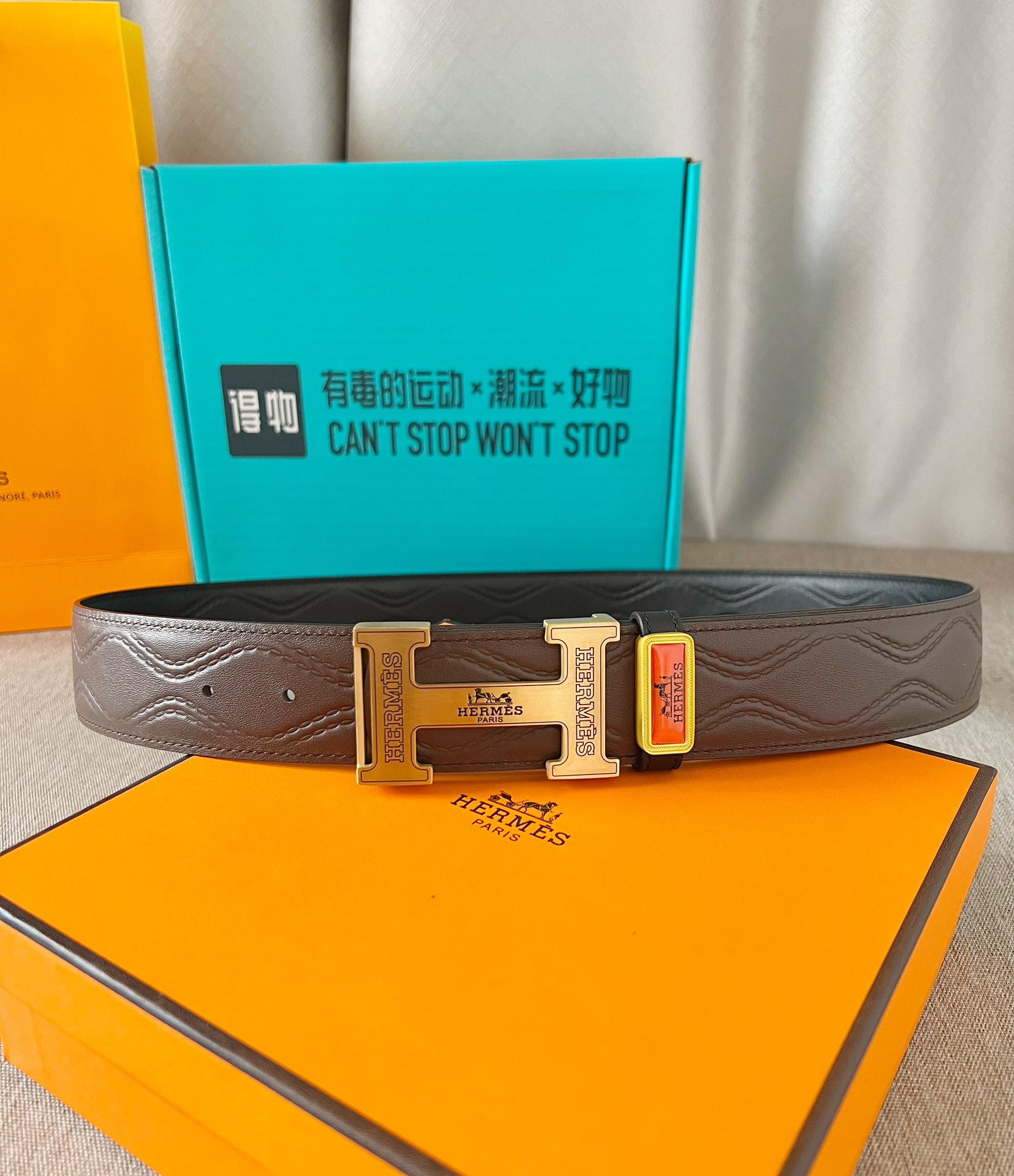 这款皮带是AAAAA 1:1 质量 (非常棒). 使用了和原版一模一样的材料. 商标部分也保持了和爱马仕/Hermes一样. 图片拍摄是实物皮带拍摄, 您所收到的实物保证和我们图片一模一样.
