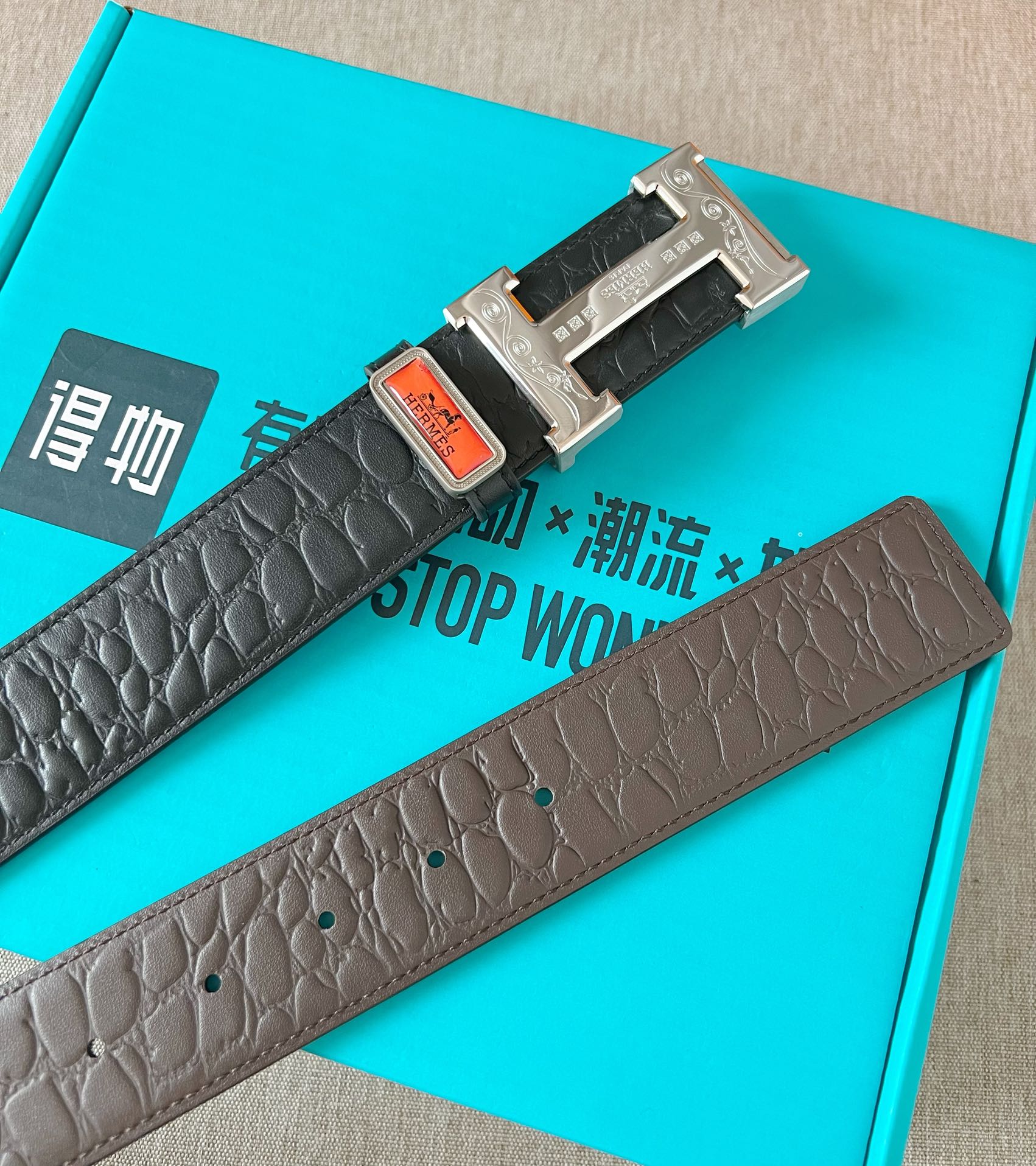 这款皮带是AAAAA 1:1 质量 (非常棒). 使用了和原版一模一样的材料. 商标部分也保持了和爱马仕/Hermes一样. 图片拍摄是实物皮带拍摄, 您所收到的实物保证和我们图片一模一样.
