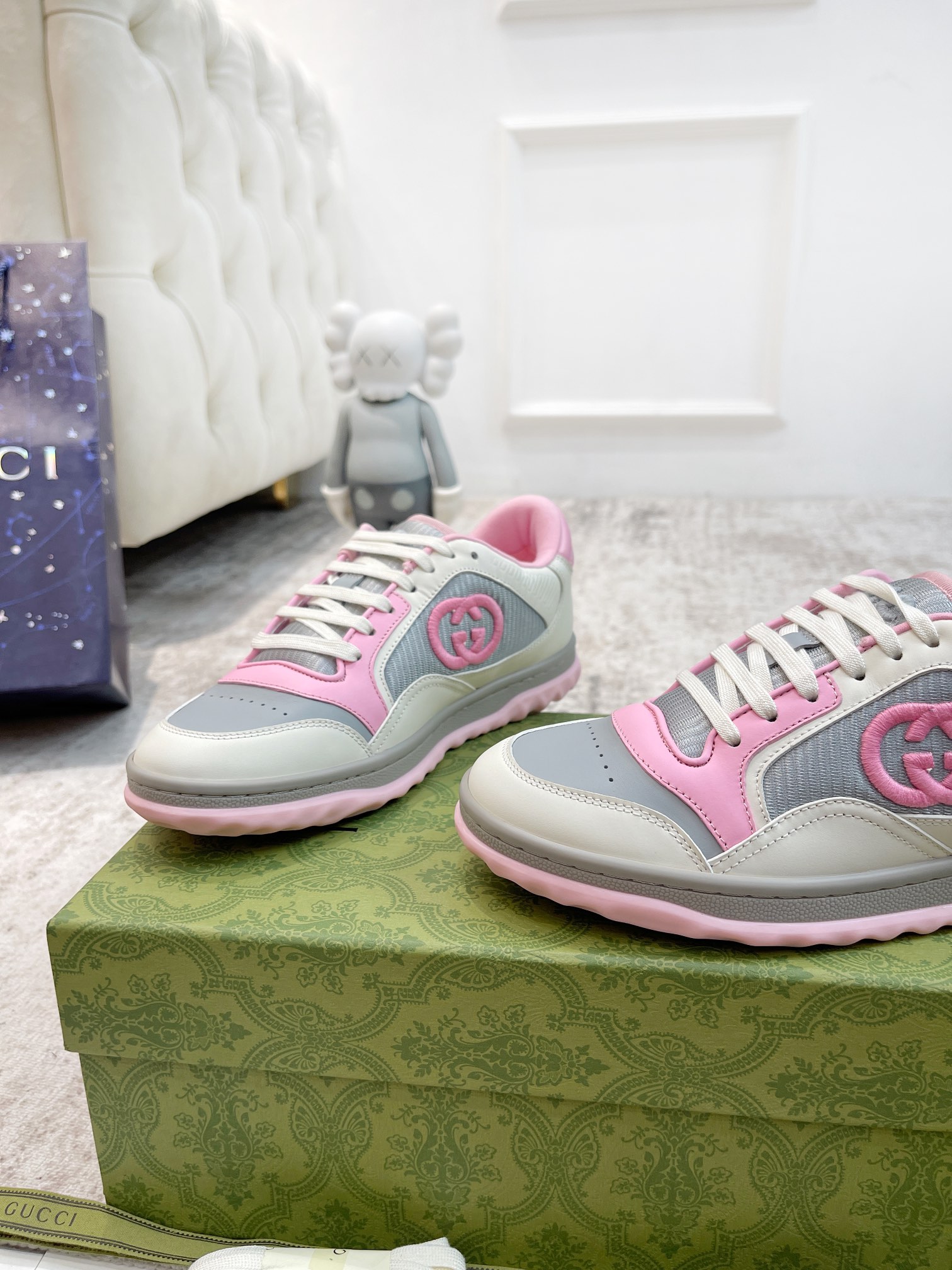 这款鞋子是AAAAA 1:1 质量 (非常棒). 使用了和原版一模一样的材料. 商标部分也保持了和古奇/Gucci一样. 图片拍摄是实物鞋子拍摄, 您所收到的实物保证和我们图片一模一样.