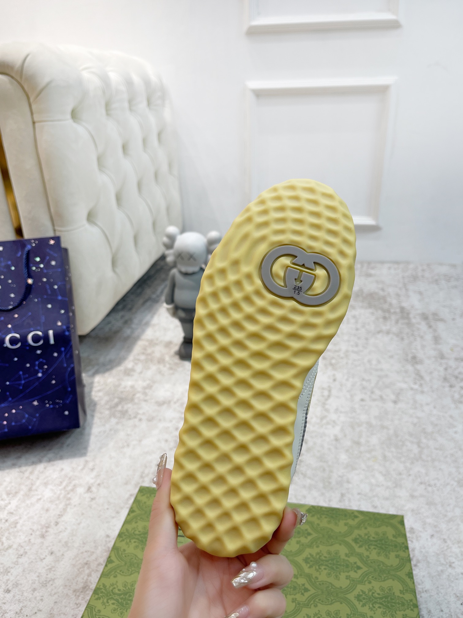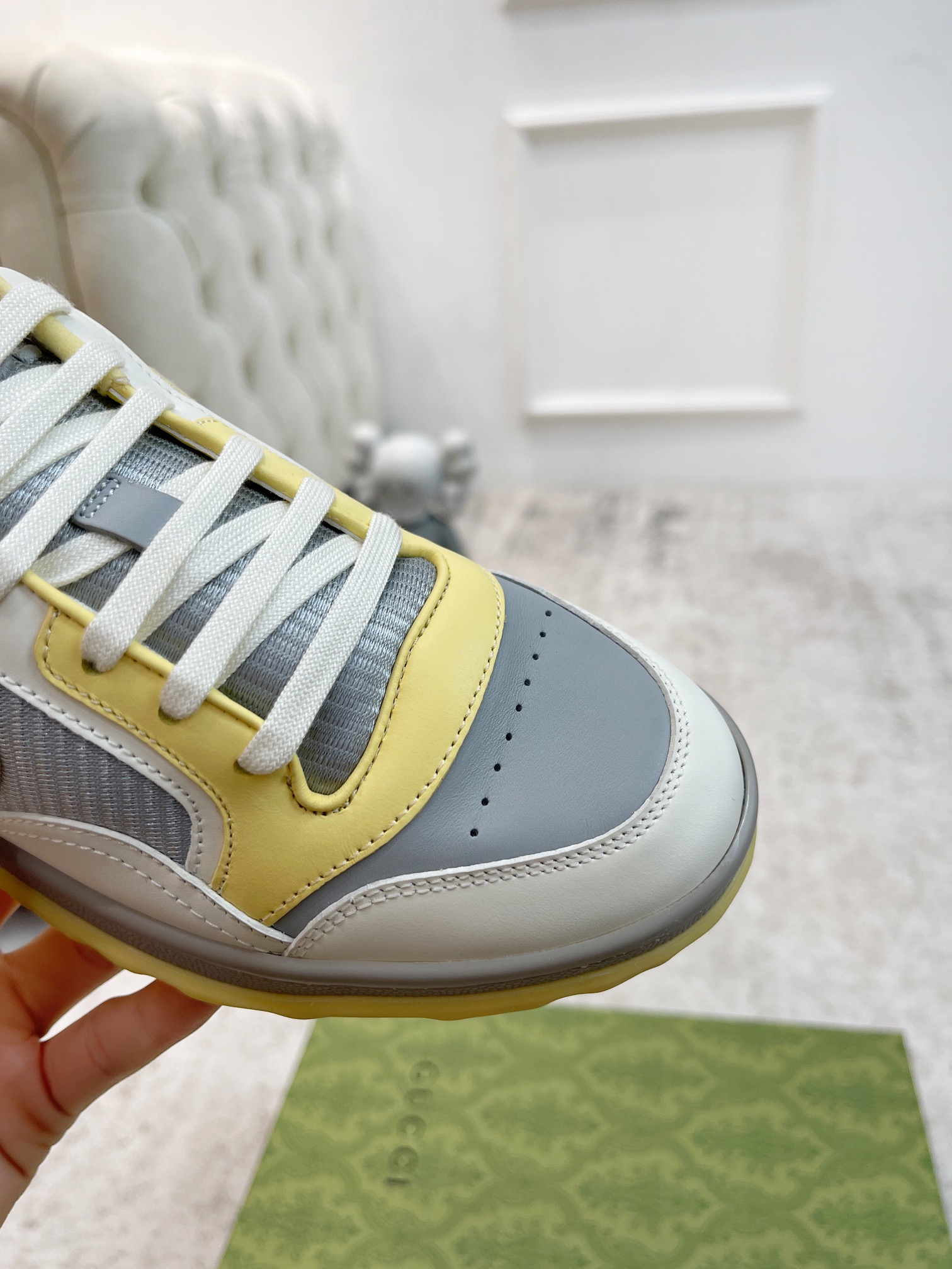 这款鞋子是AAAAA 1:1 质量 (非常棒). 使用了和原版一模一样的材料. 商标部分也保持了和古奇/Gucci一样. 图片拍摄是实物鞋子拍摄, 您所收到的实物保证和我们图片一模一样.