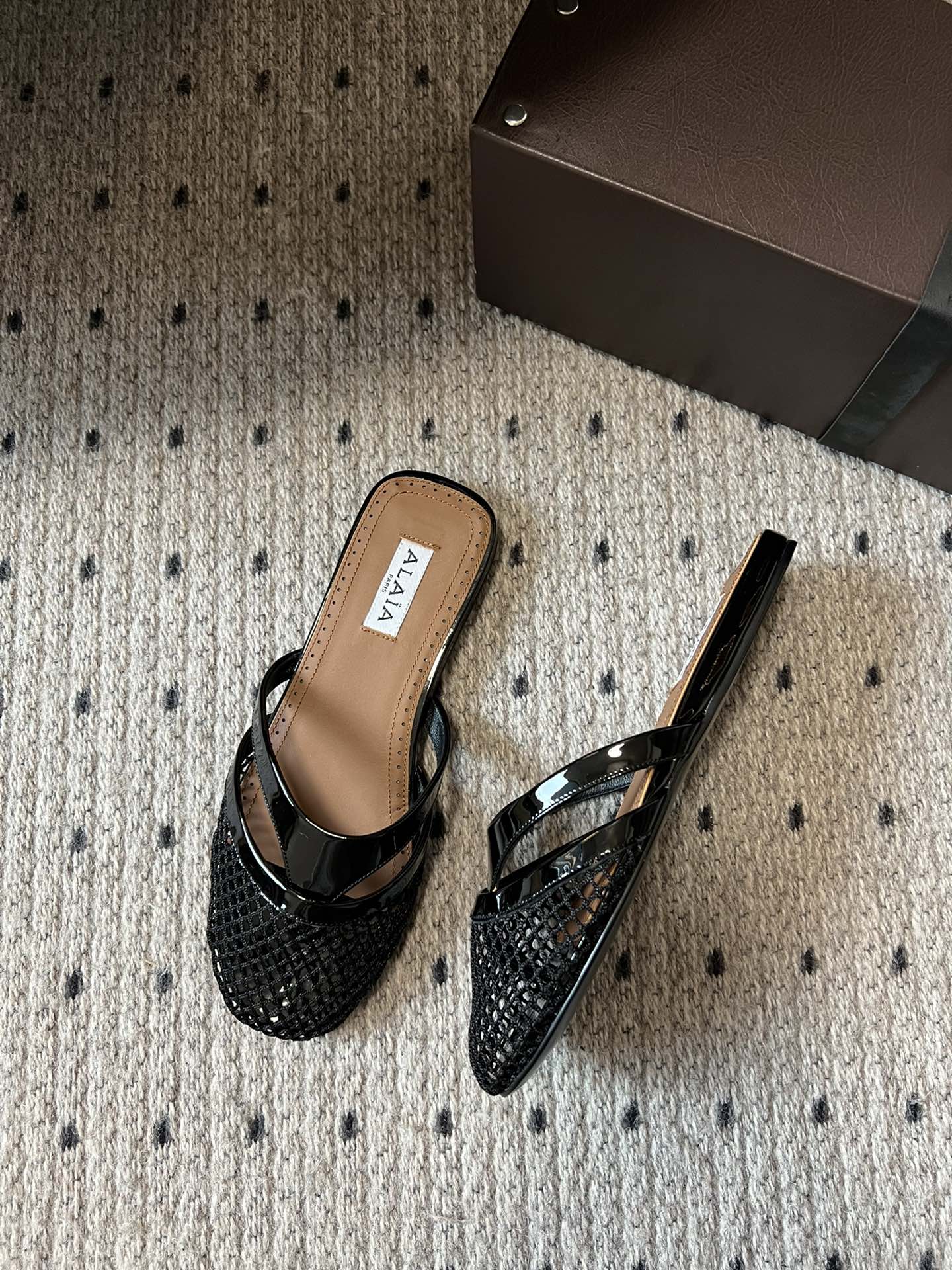 这款鞋子是AAAAA 1:1 质量 (非常棒). 使用了和原版一模一样的材料. 商标部分也保持了和Alaia一样. 图片拍摄是实物鞋子拍摄, 您所收到的实物保证和我们图片一模一样.
