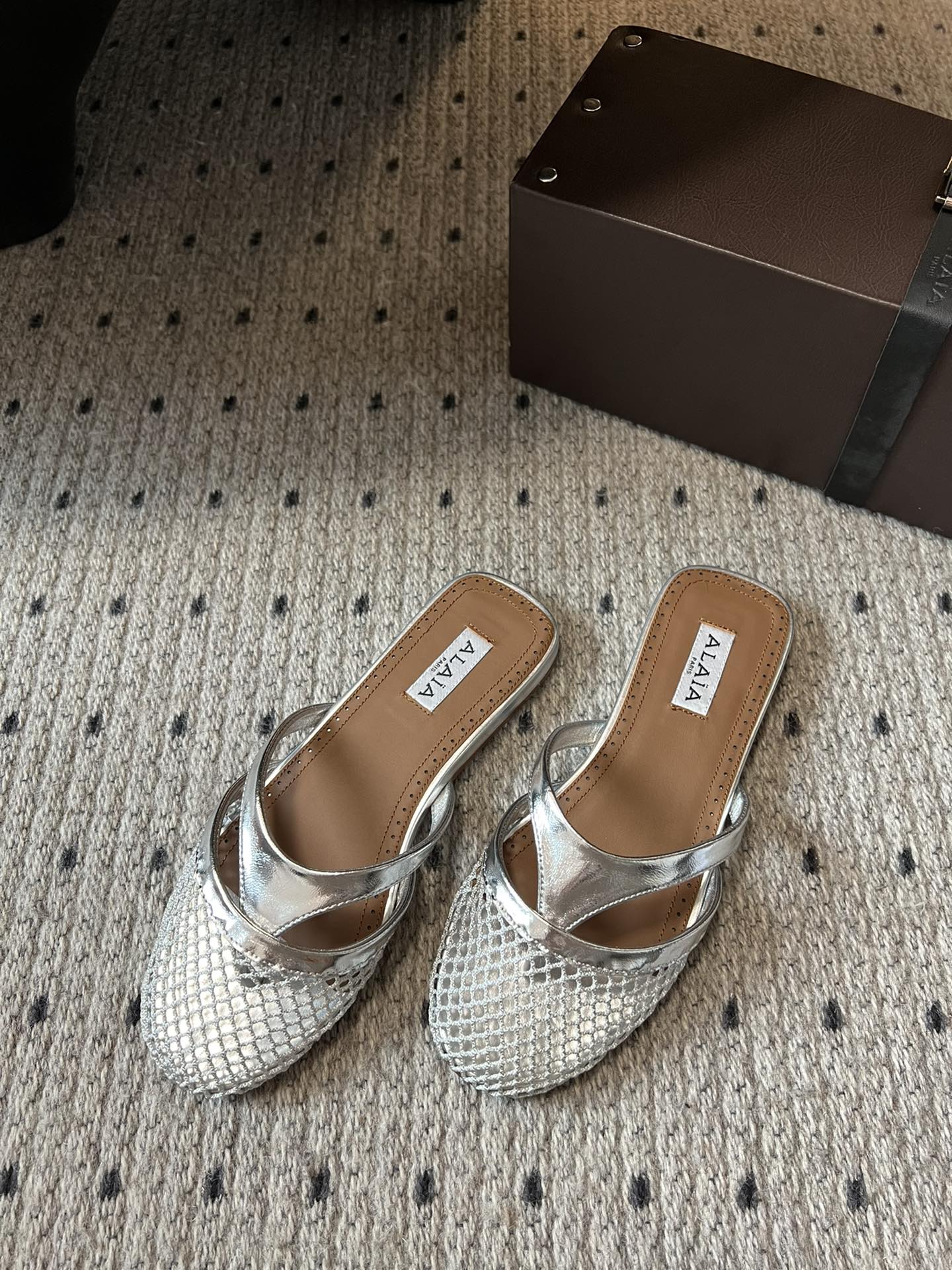 这款鞋子是AAAAA 1:1 质量 (非常棒). 使用了和原版一模一样的材料. 商标部分也保持了和Alaia一样. 图片拍摄是实物鞋子拍摄, 您所收到的实物保证和我们图片一模一样.