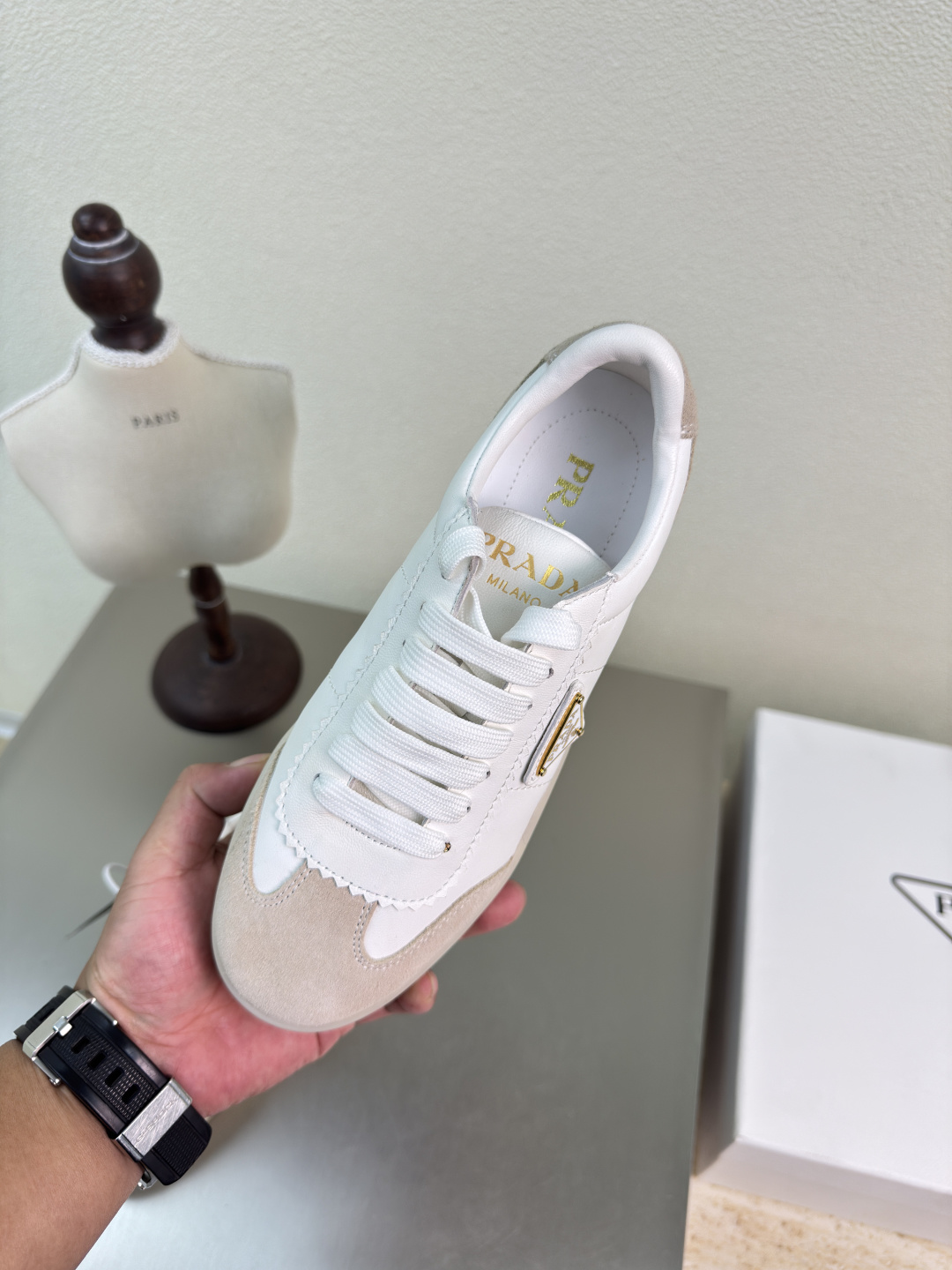 这款鞋子是AAAAA 1:1 质量 (非常棒). 使用了和原版一模一样的材料. 商标部分也保持了和普拉达/Prada一样. 图片拍摄是实物鞋子拍摄, 您所收到的实物保证和我们图片一模一样.