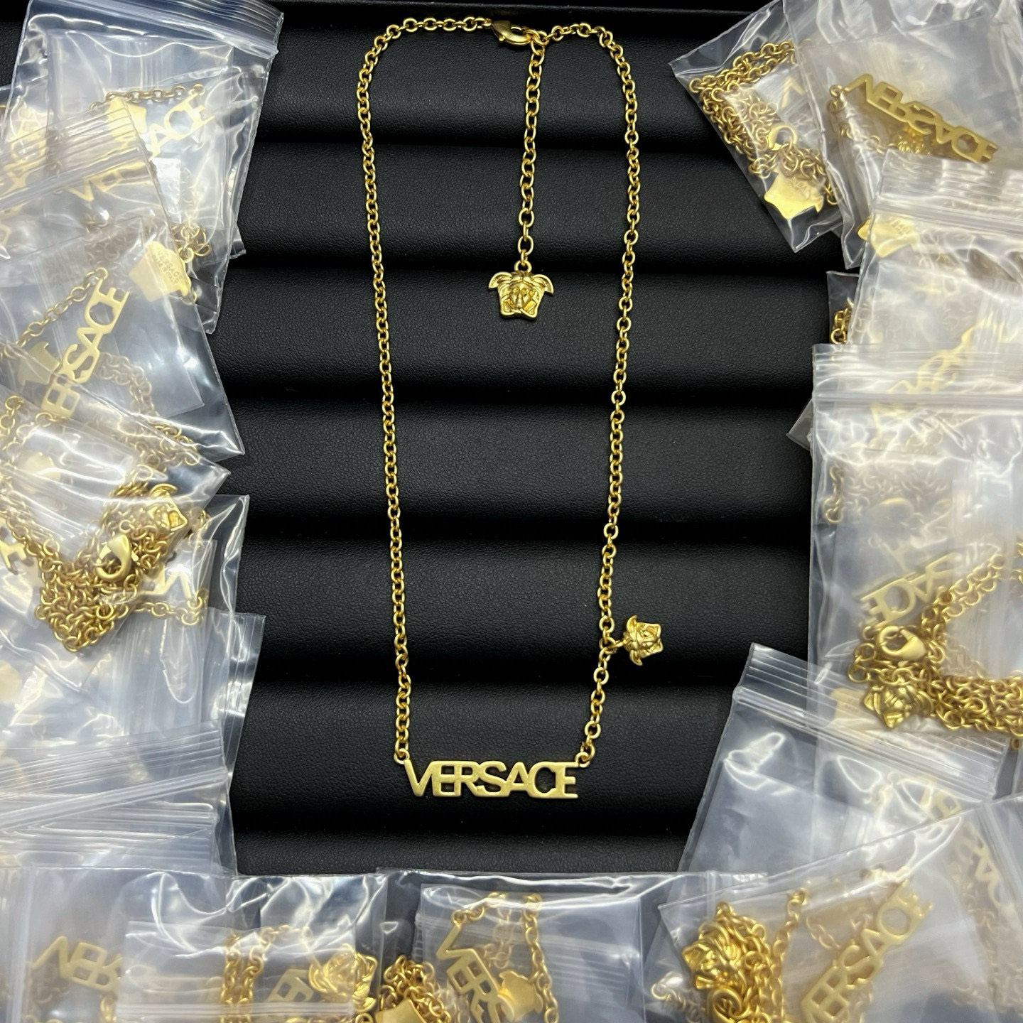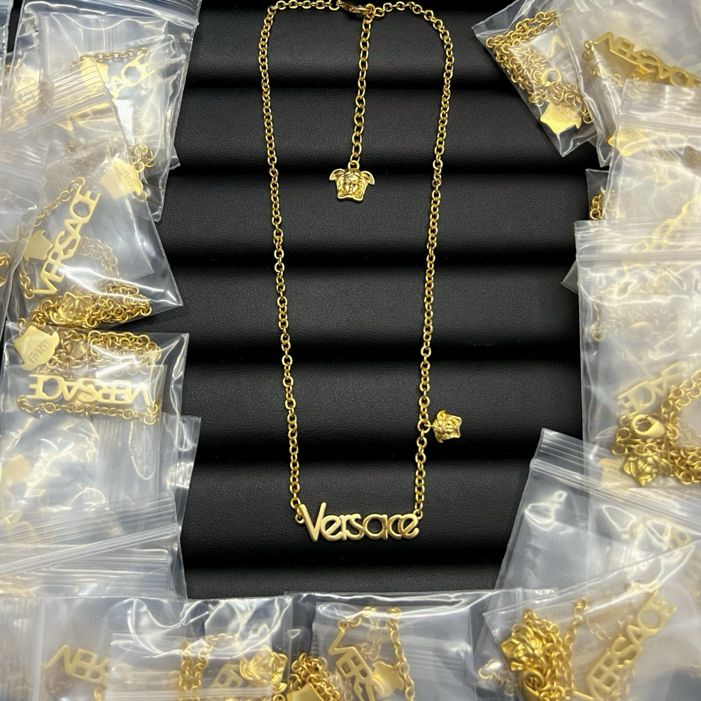 这款首饰是AAAAA 1:1 质量 (非常棒). 使用了和原版一模一样的材料. 商标部分也保持了和范思哲/Versace一样. 图片拍摄是实物首饰拍摄, 您所收到的实物保证和我们图片一模一样.
