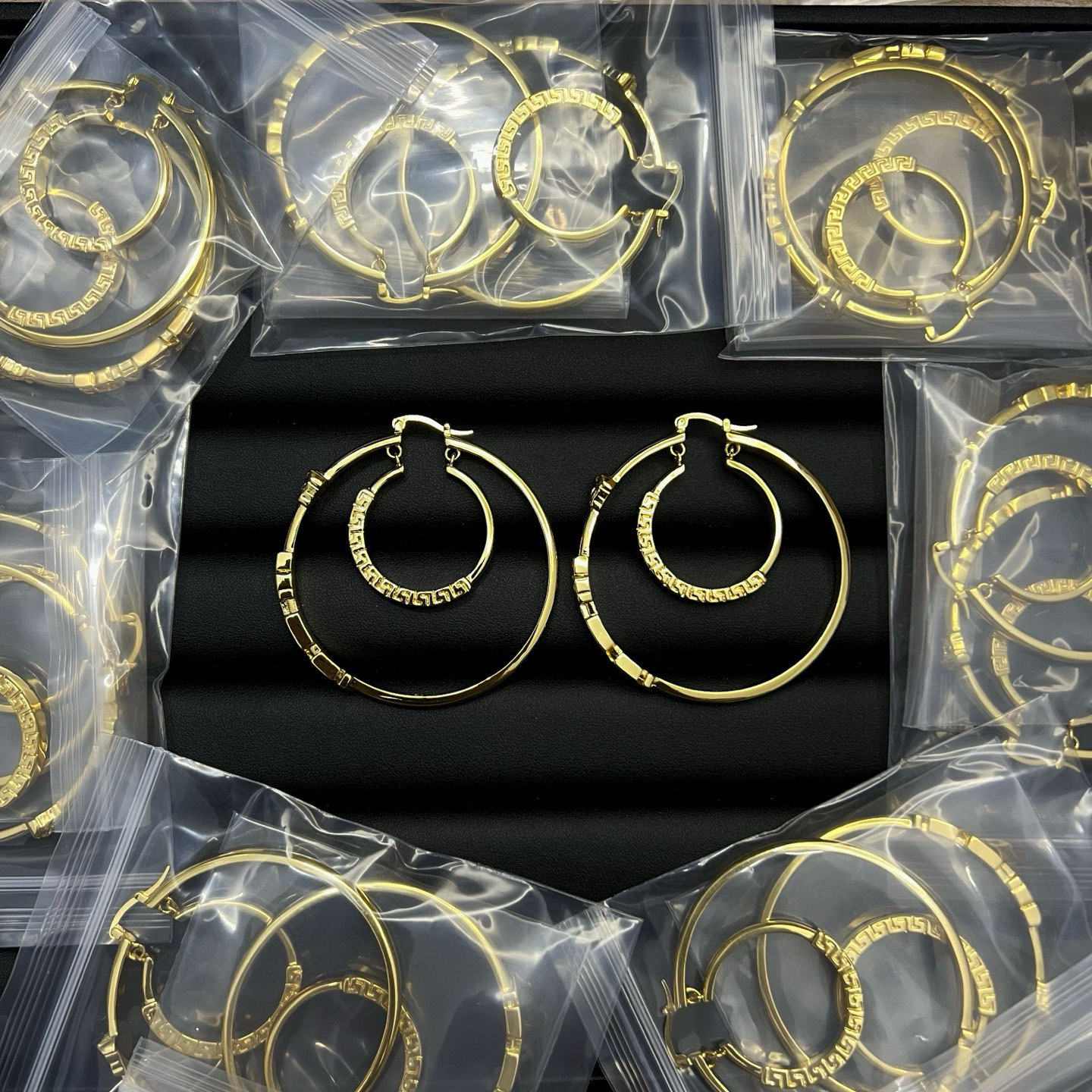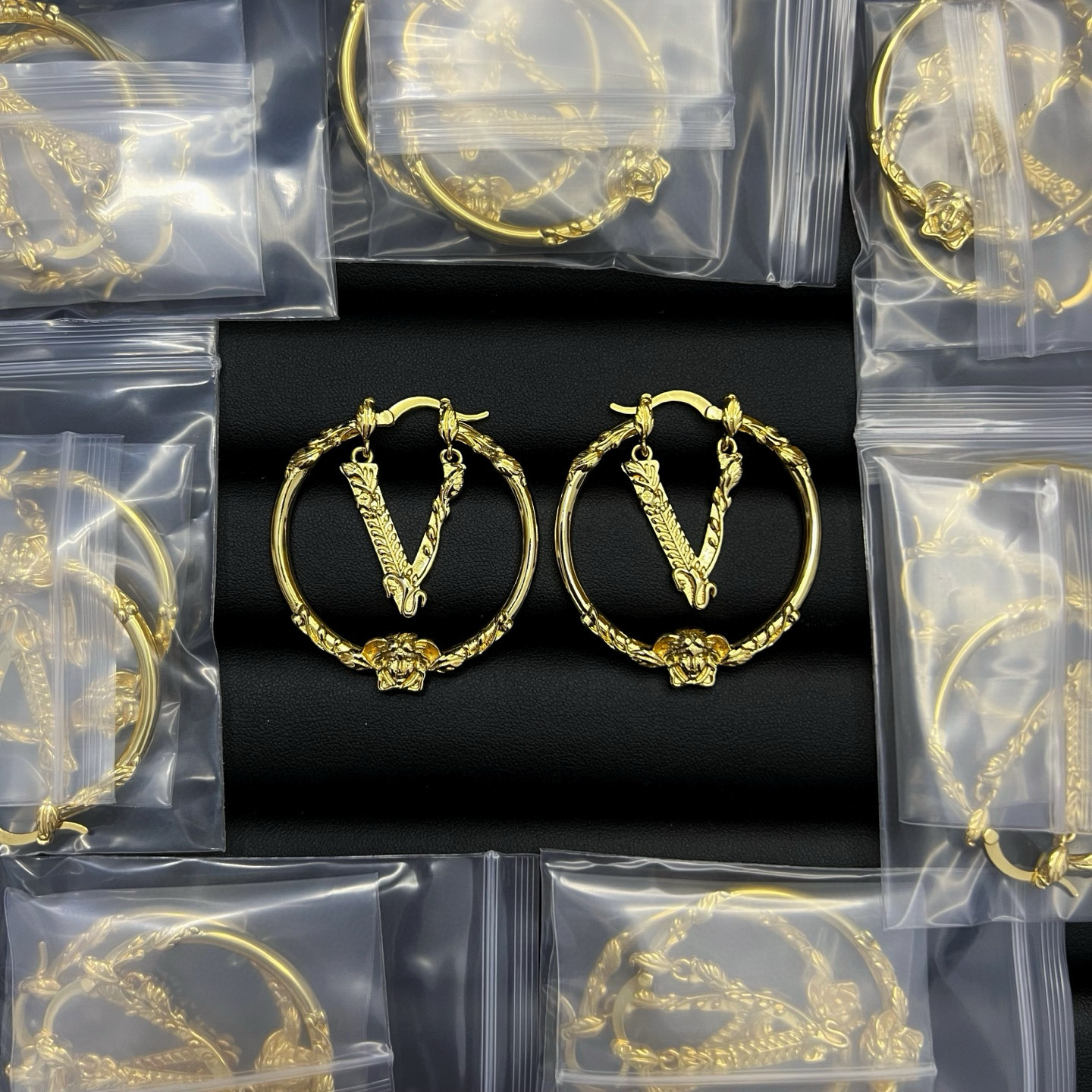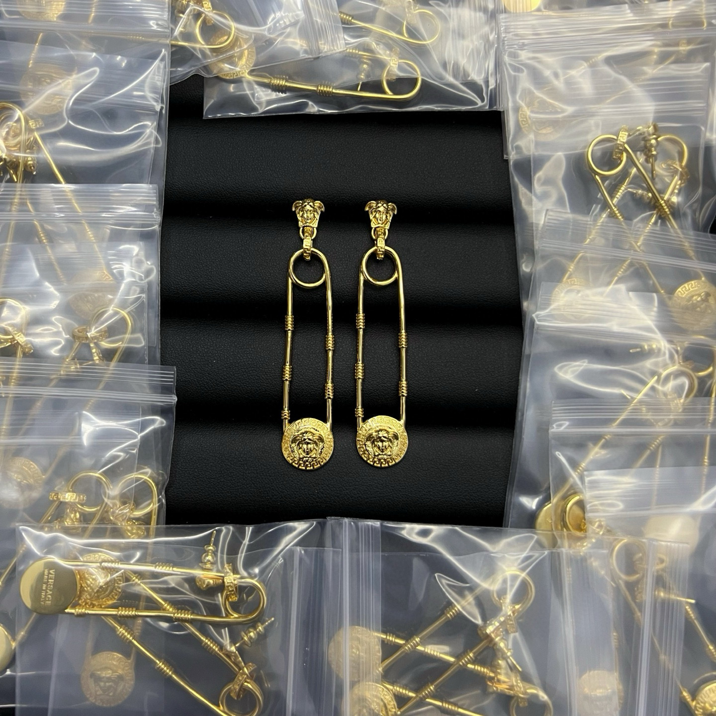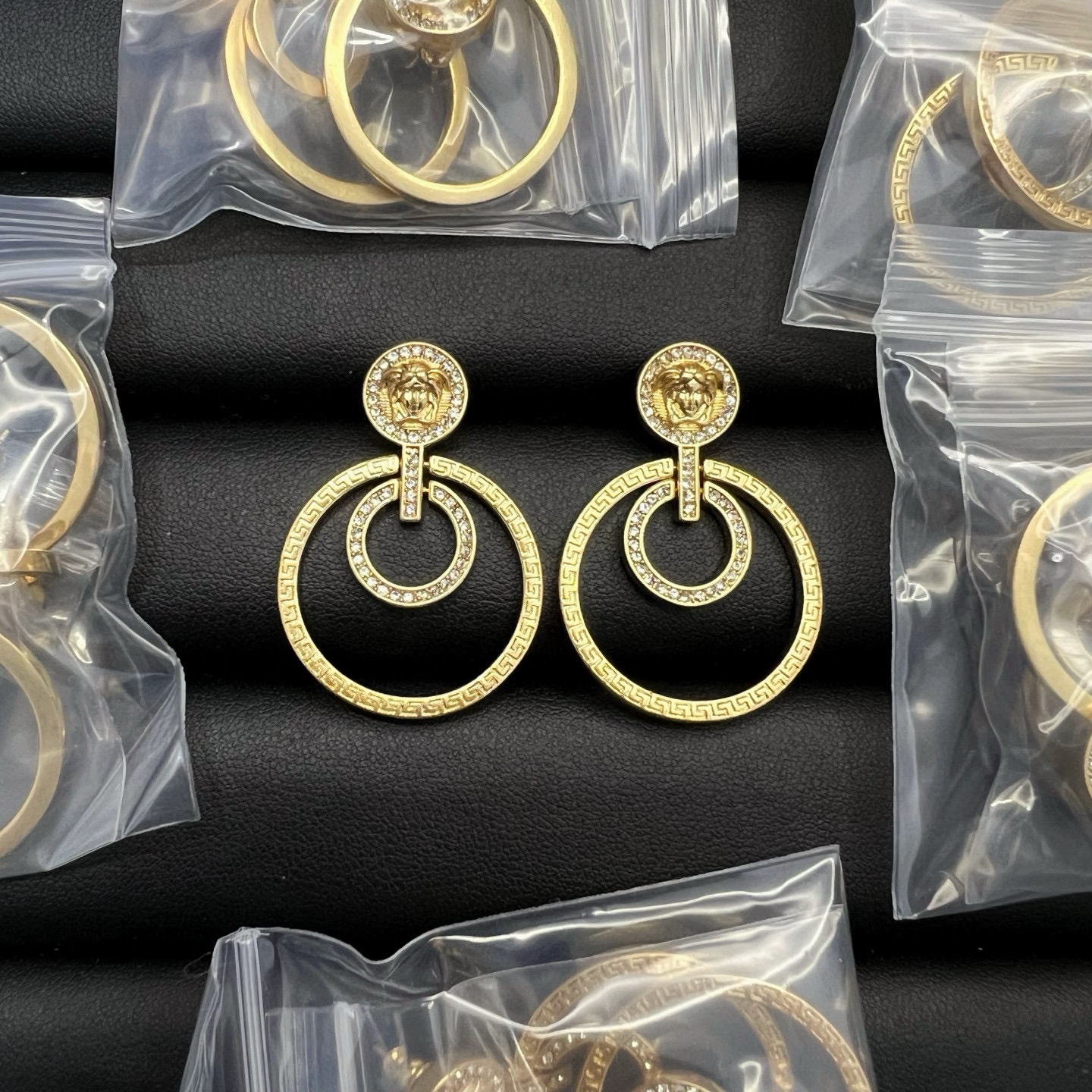 这款首饰是AAAAA 1:1 质量 (非常棒). 使用了和原版一模一样的材料. 商标部分也保持了和范思哲/Versace一样. 图片拍摄是实物首饰拍摄, 您所收到的实物保证和我们图片一模一样.