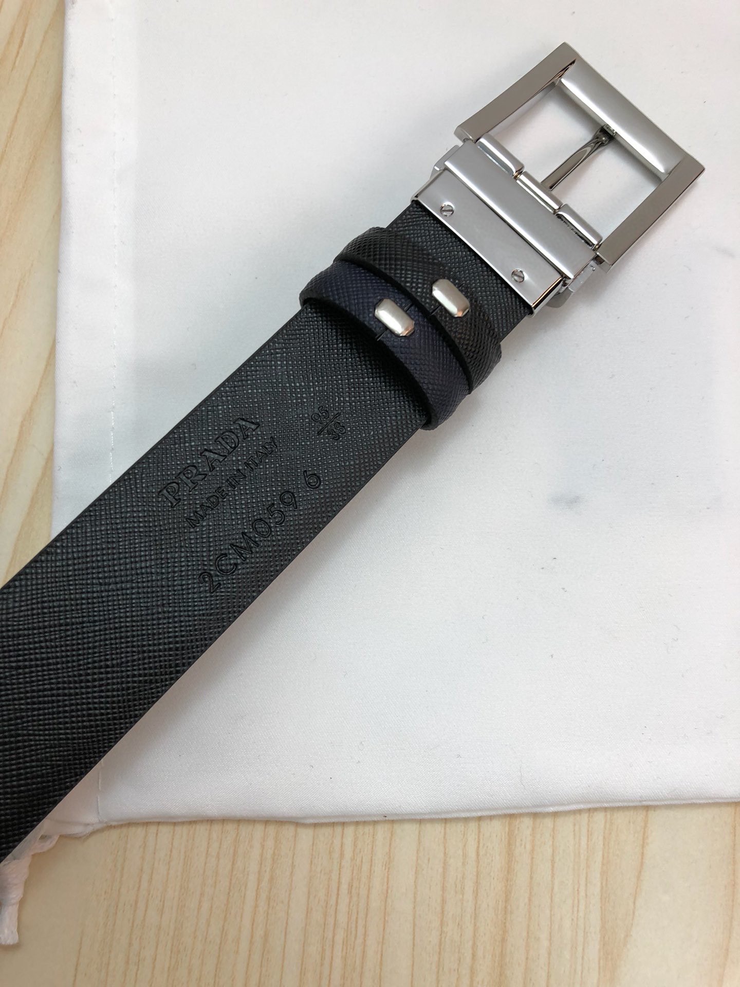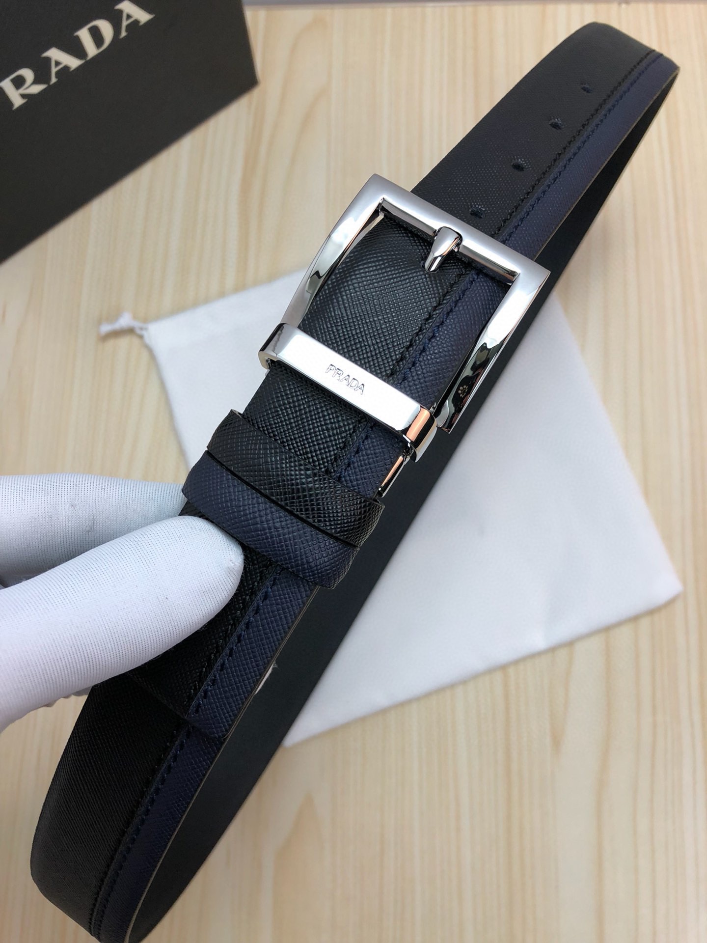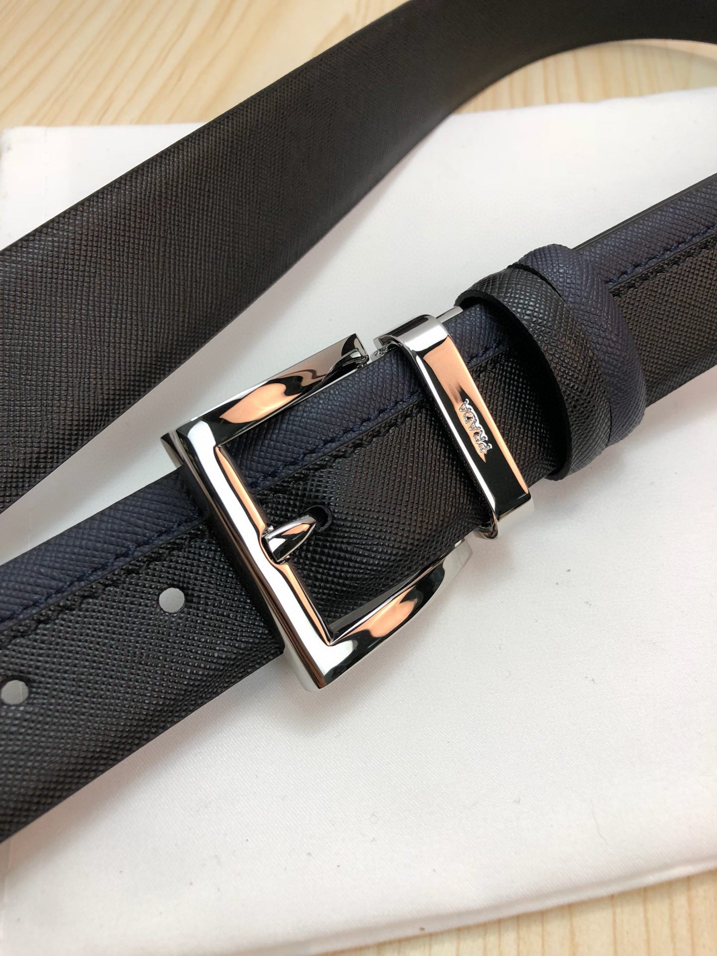 这款皮带是AAAAA 1:1 质量 (非常棒). 使用了和原版一模一样的材料. 商标部分也保持了和普拉达/Prada一样. 图片拍摄是实物皮带拍摄, 您所收到的实物保证和我们图片一模一样.