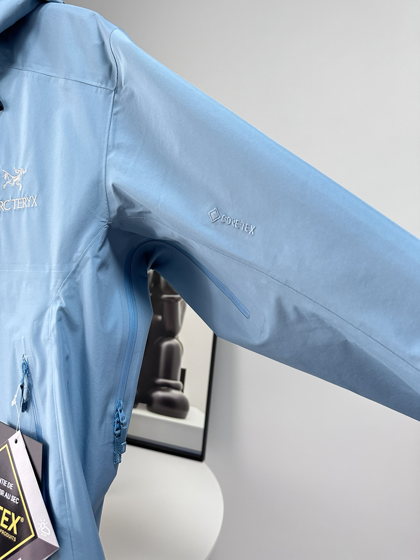 这款衣服是AAAAA 1:1 质量 (非常棒). 使用了和原版一模一样的材料. 商标部分也保持了和ARC'TERYX一样. 图片拍摄是实物衣服拍摄, 您所收到的实物保证和我们图片一模一样.