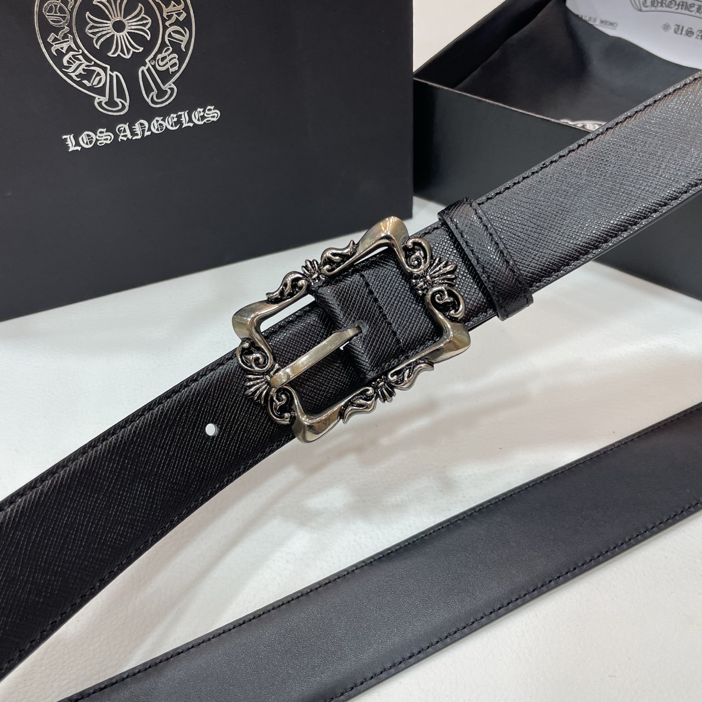 这款皮带是AAAAA 1:1 质量 (非常棒). 使用了和原版一模一样的材料. 商标部分也保持了和克罗心/Chrome Hearts一样. 图片拍摄是实物皮带拍摄, 您所收到的实物保证和我们图片一模一样.