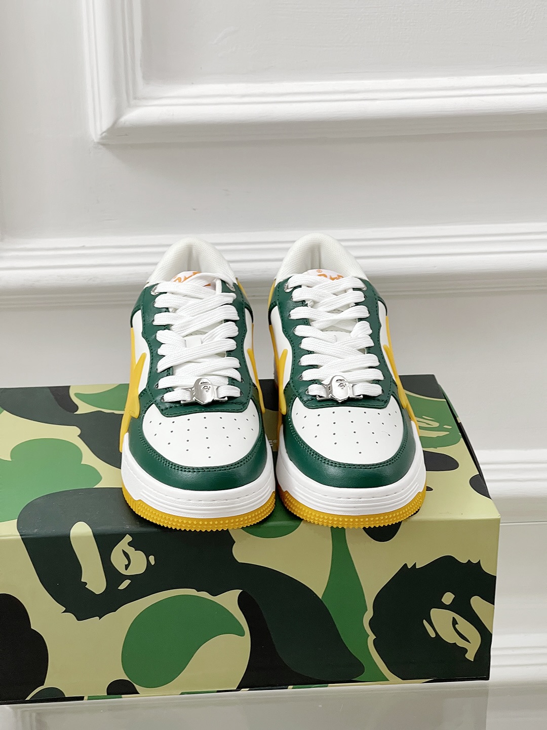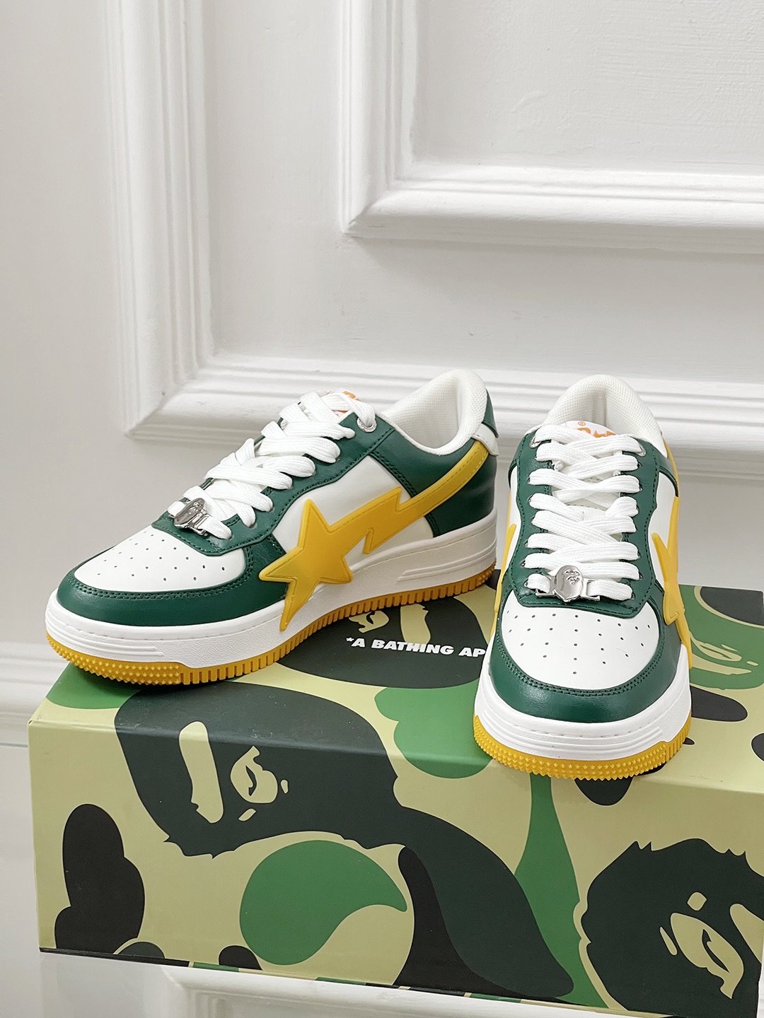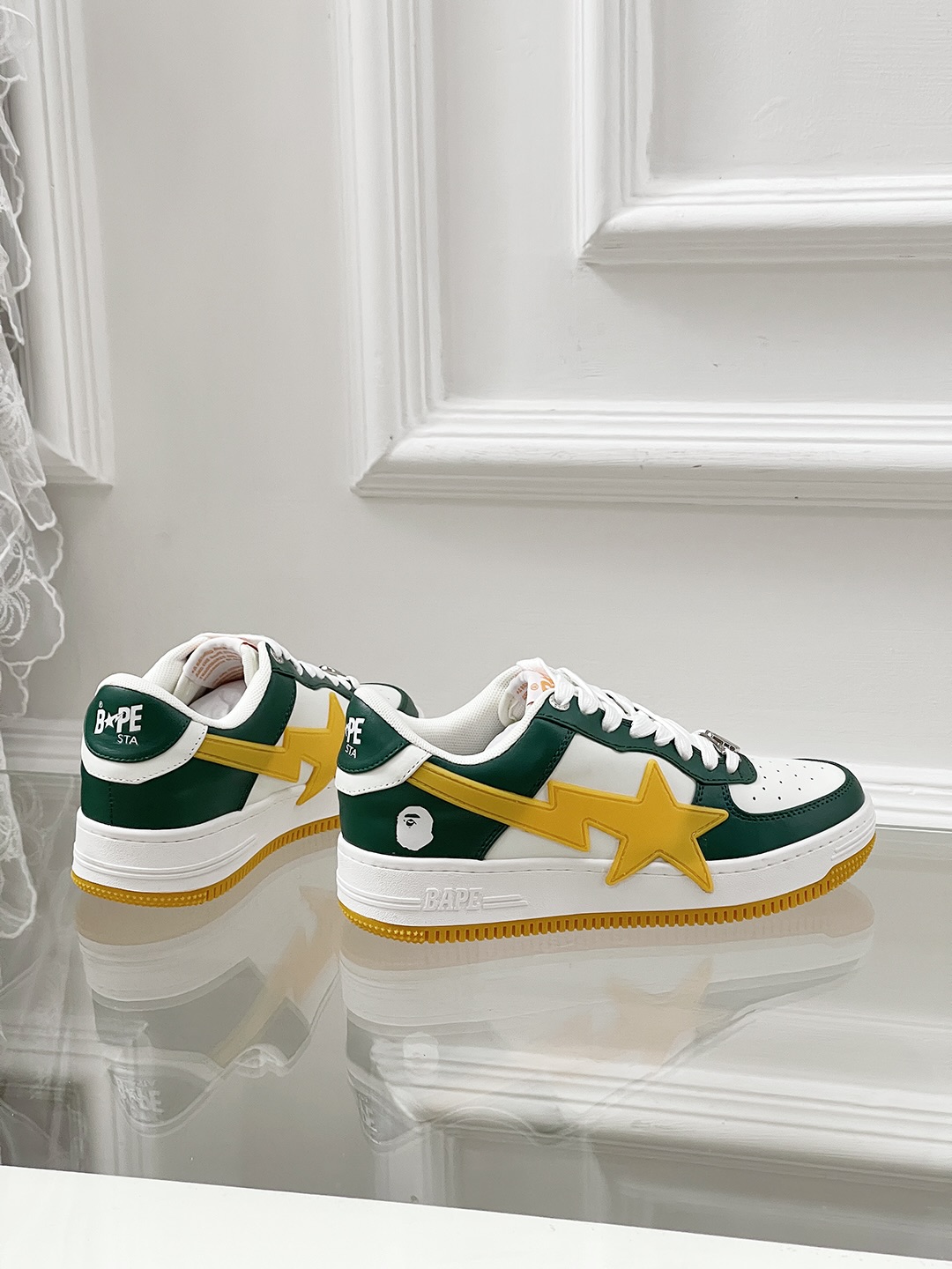 这款鞋子是AAAAA 1:1 质量 (非常棒). 使用了和原版一模一样的材料. 商标部分也保持了和Bape一样. 图片拍摄是实物鞋子拍摄, 您所收到的实物保证和我们图片一模一样.