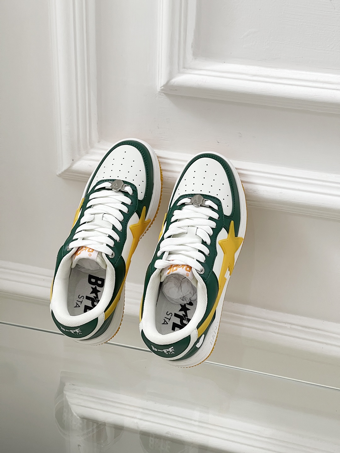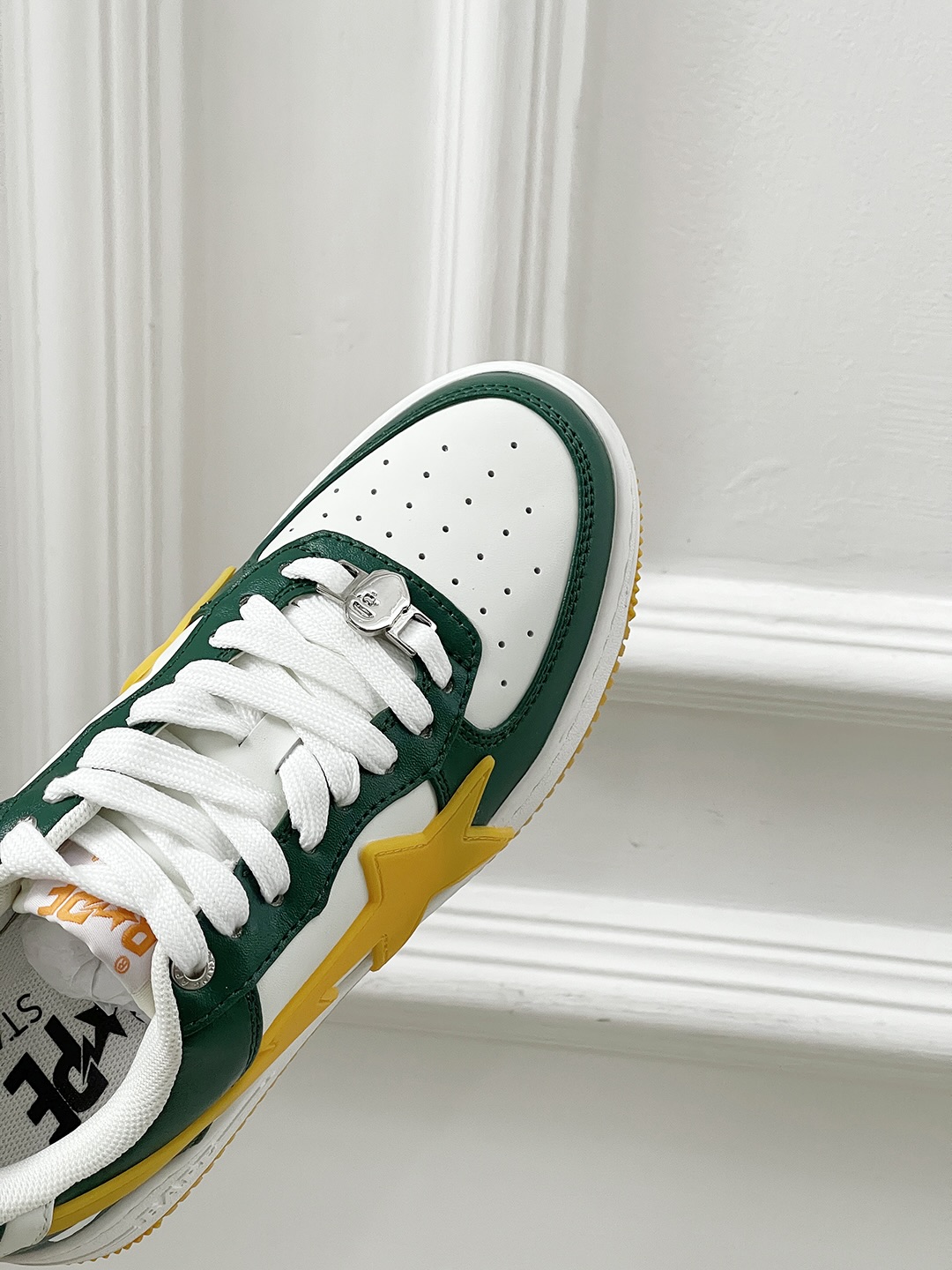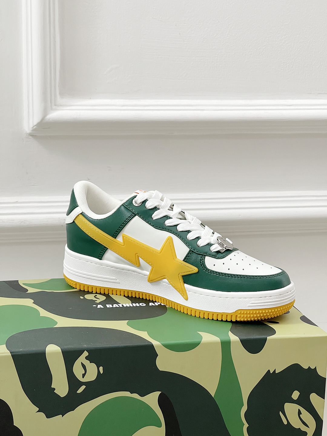 这款鞋子是AAAAA 1:1 质量 (非常棒). 使用了和原版一模一样的材料. 商标部分也保持了和Bape一样. 图片拍摄是实物鞋子拍摄, 您所收到的实物保证和我们图片一模一样.
