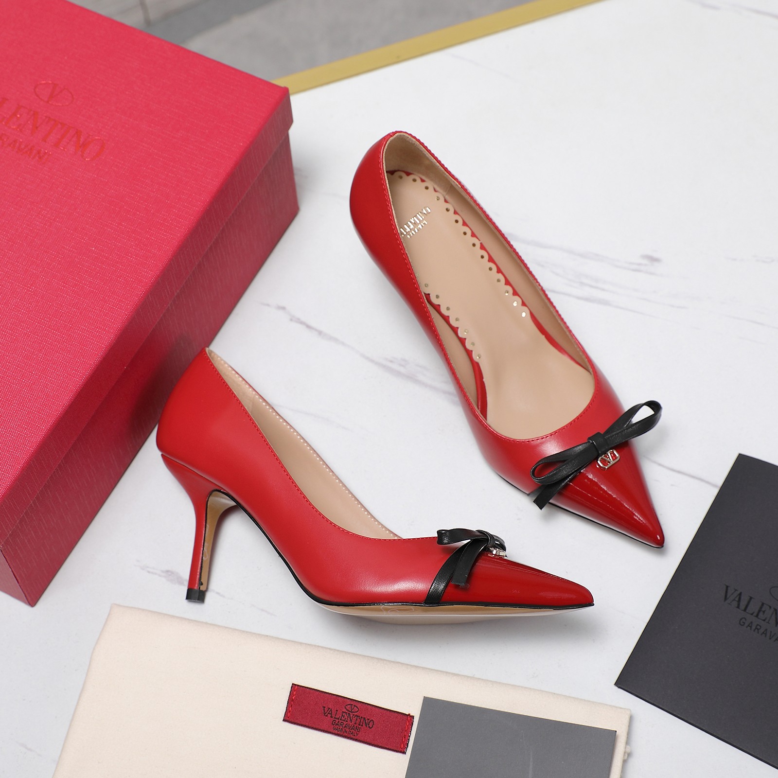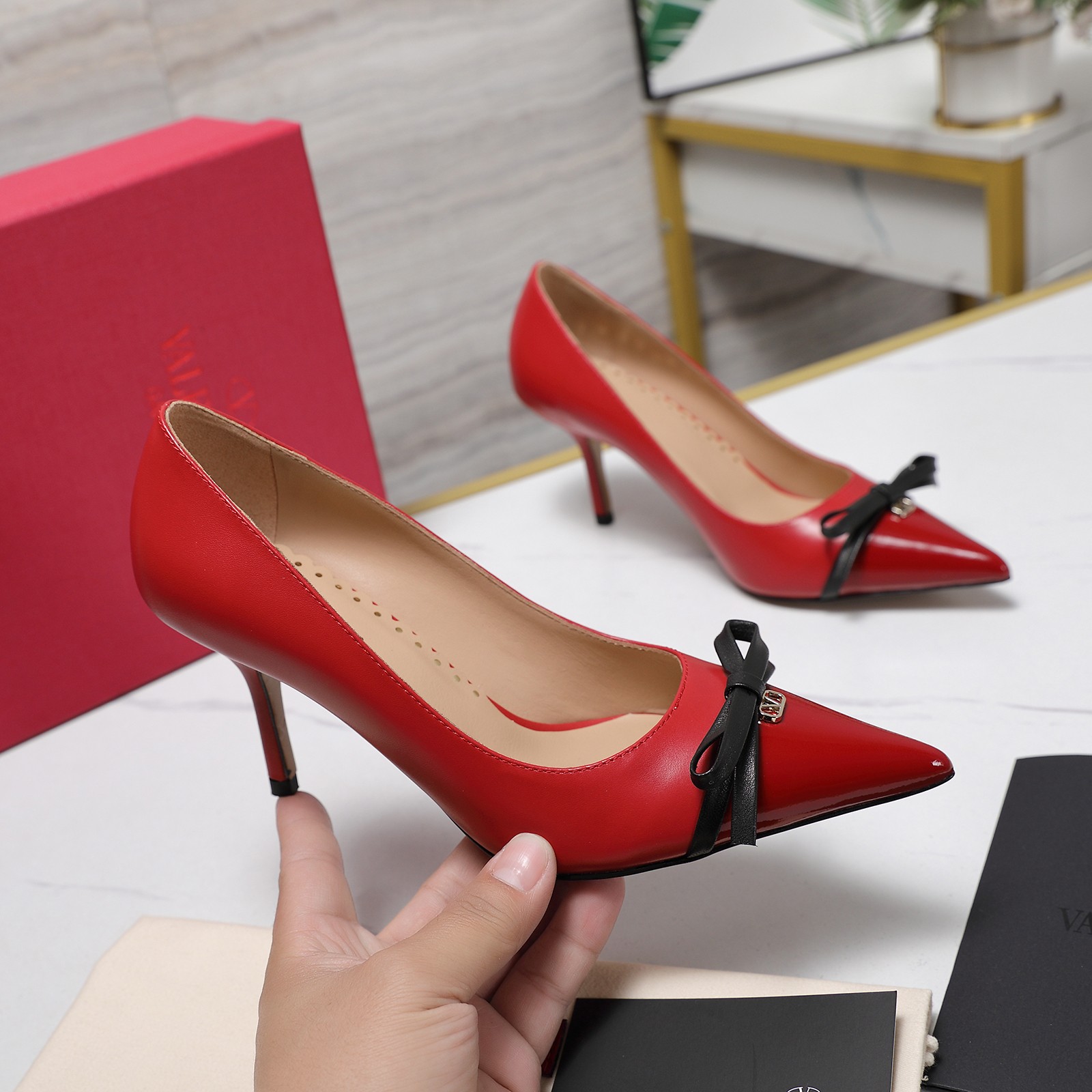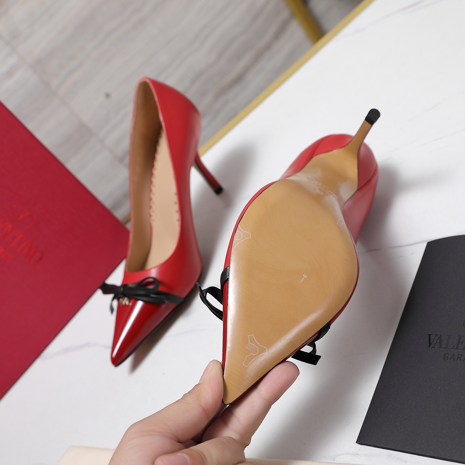 这款鞋子是AAAAA 1:1 质量 (非常棒). 使用了和原版一模一样的材料. 商标部分也保持了和华伦天奴/Valentino一样. 图片拍摄是实物鞋子拍摄, 您所收到的实物保证和我们图片一模一样.
