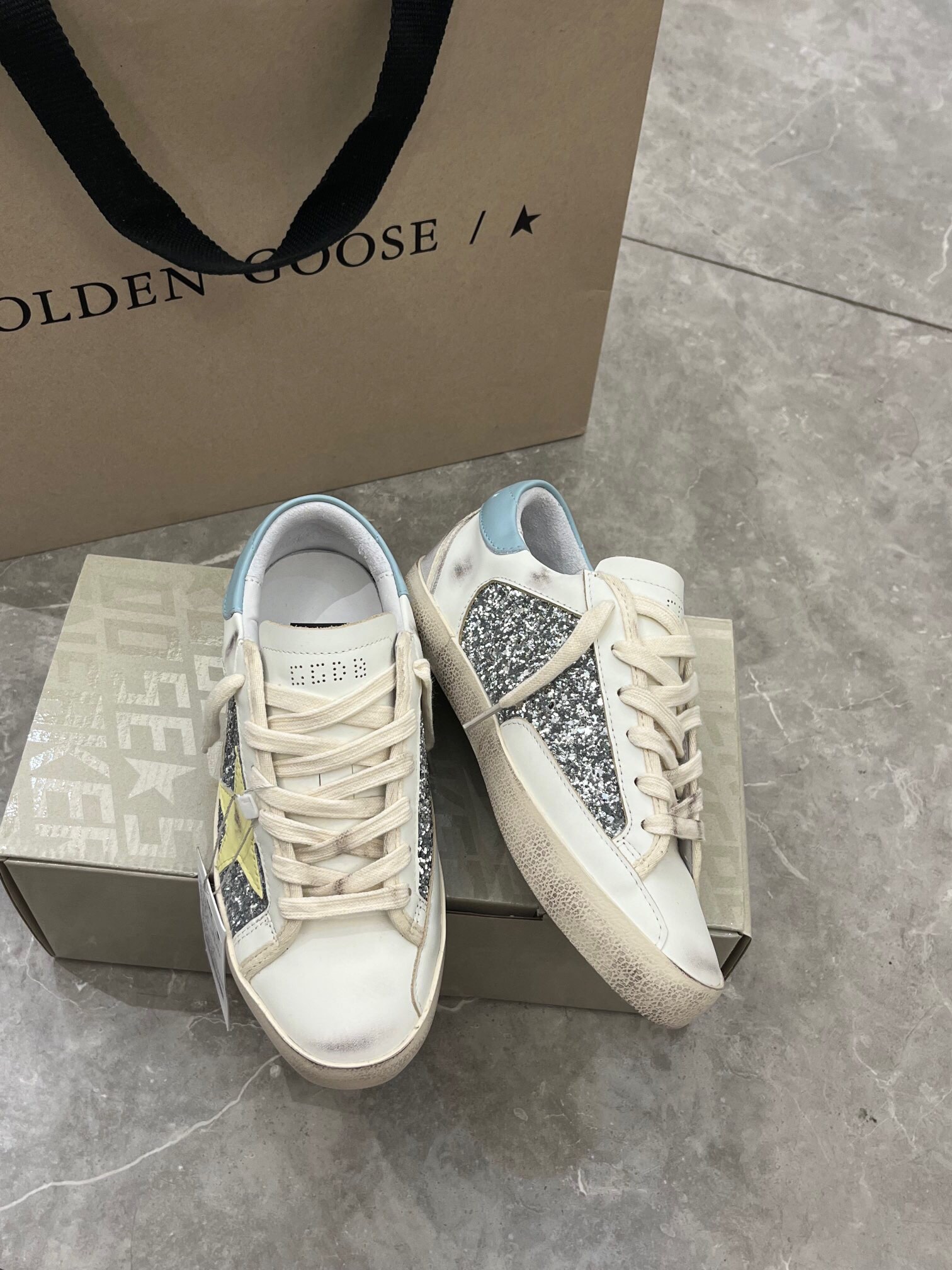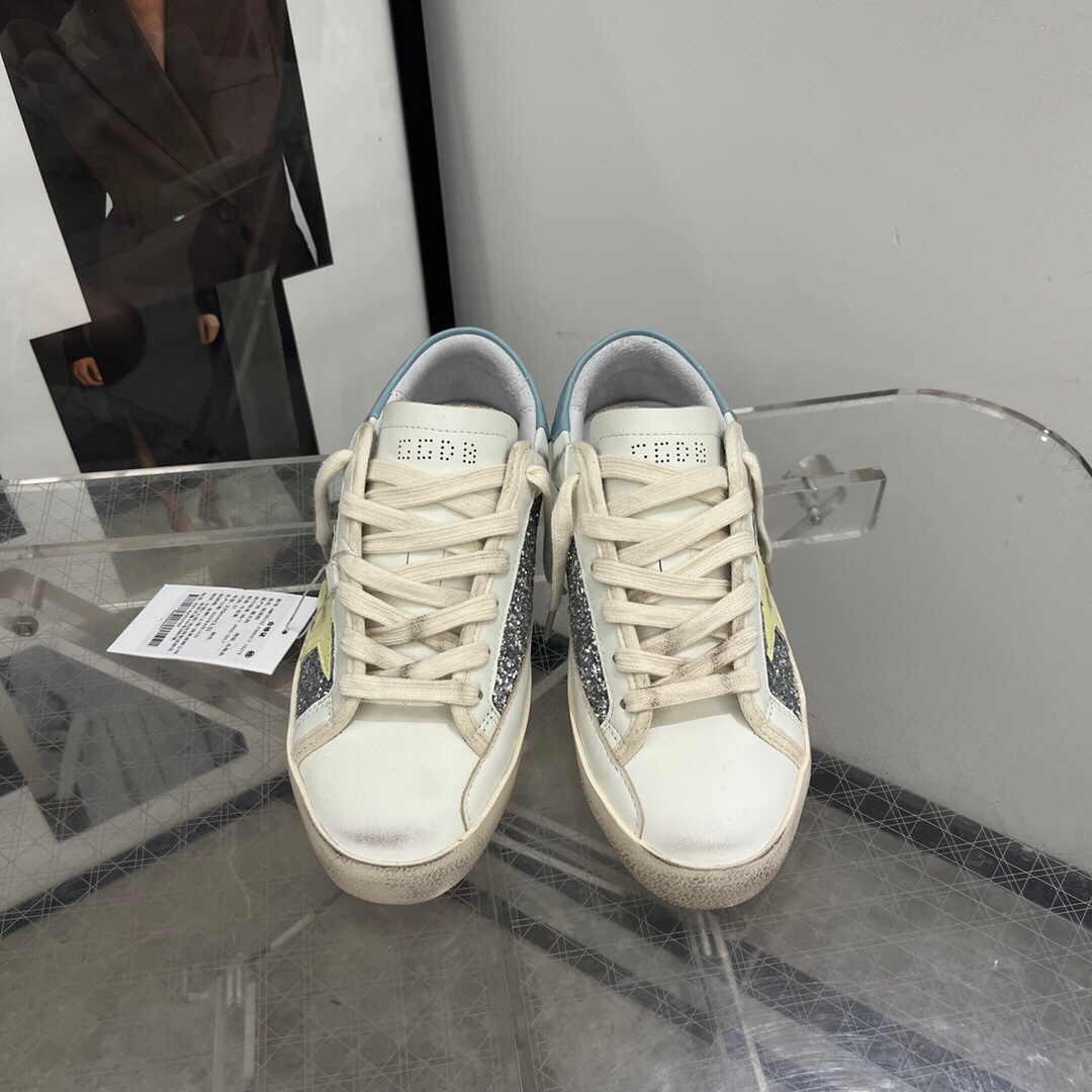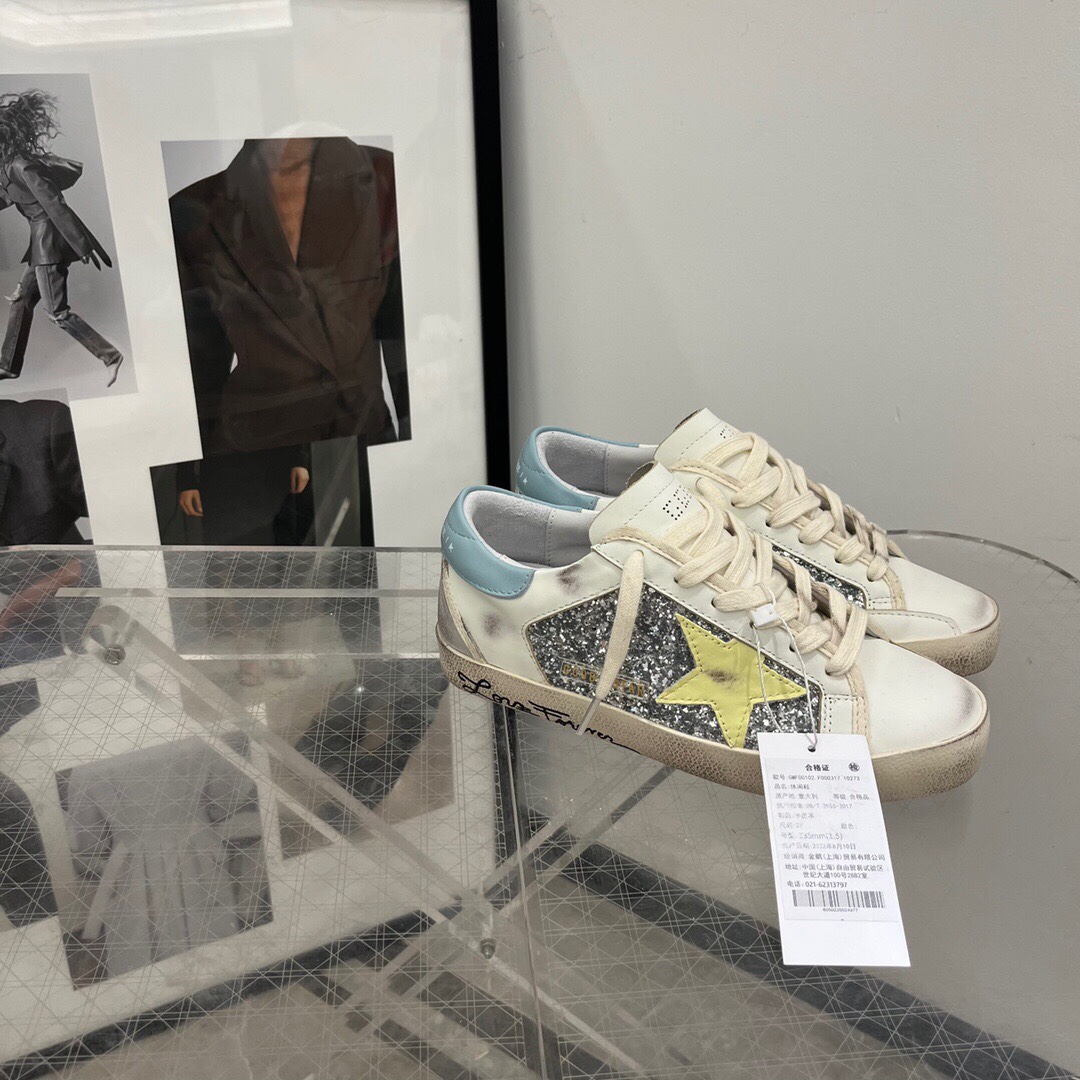 这款鞋子是AAAAA 1:1 质量 (非常棒). 使用了和原版一模一样的材料. 商标部分也保持了和Golden Goose一样. 图片拍摄是实物鞋子拍摄, 您所收到的实物保证和我们图片一模一样.