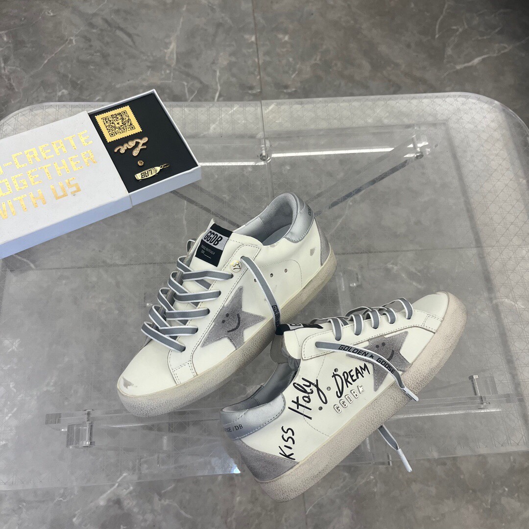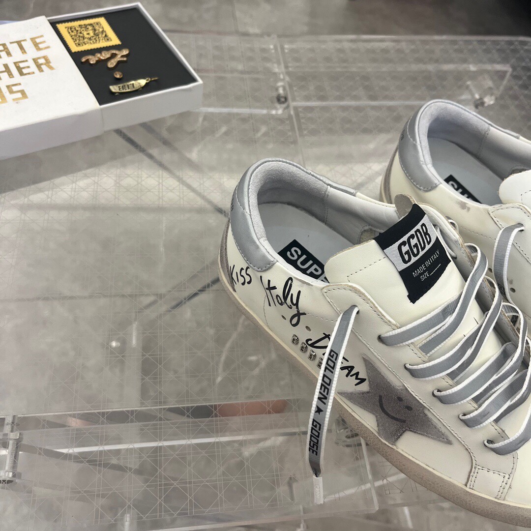 这款鞋子是AAAAA 1:1 质量 (非常棒). 使用了和原版一模一样的材料. 商标部分也保持了和Golden Goose一样. 图片拍摄是实物鞋子拍摄, 您所收到的实物保证和我们图片一模一样.
