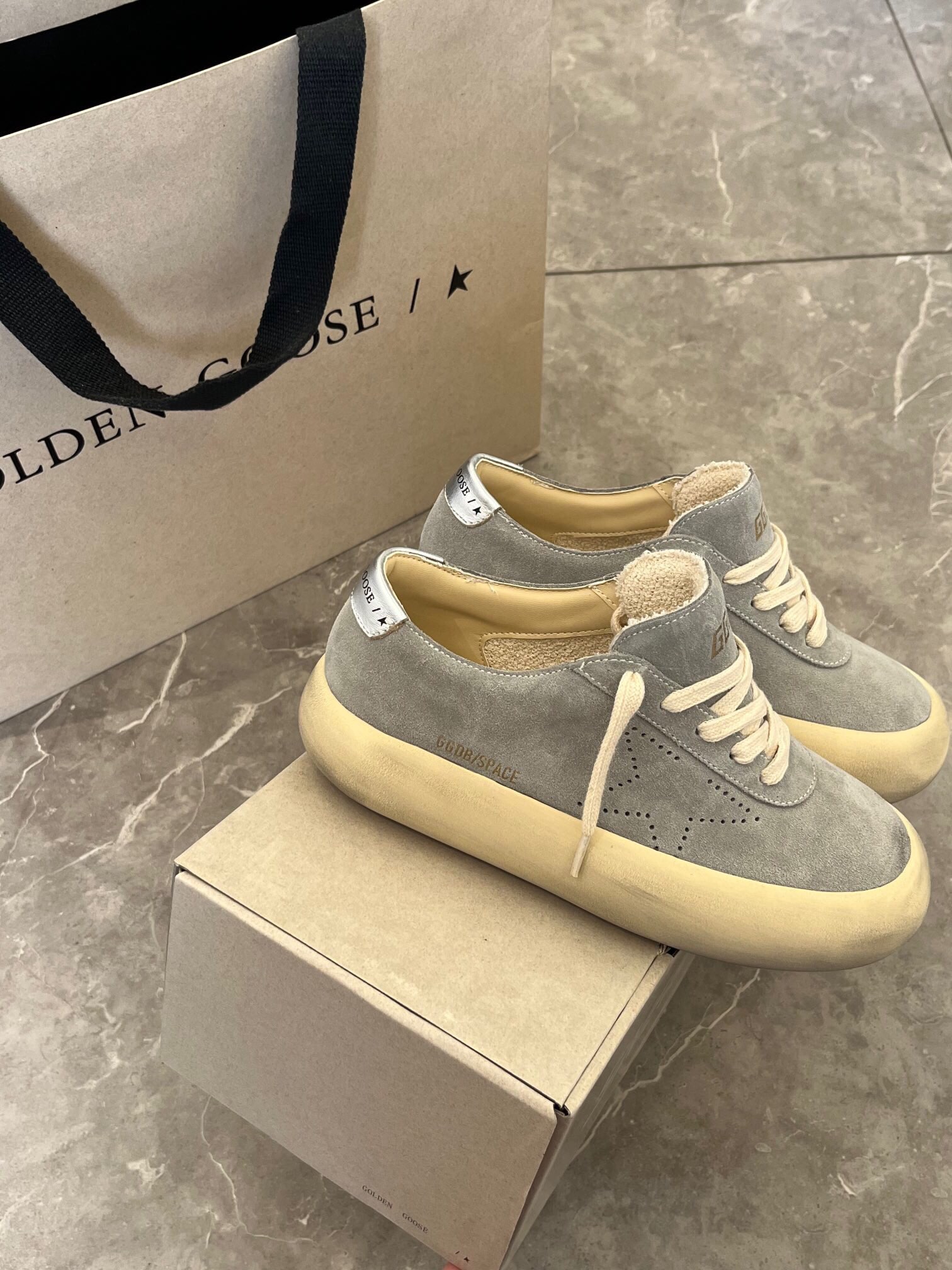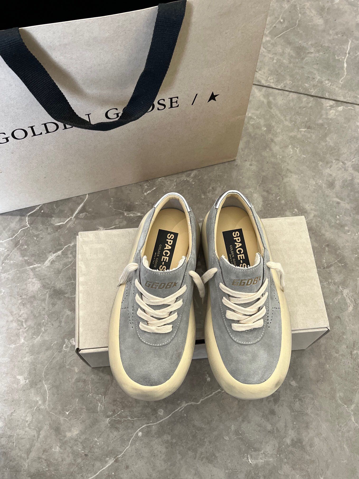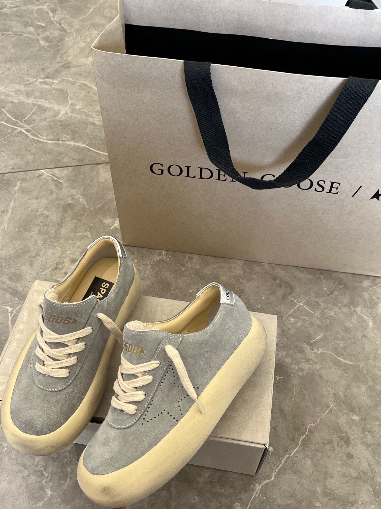 这款鞋子是AAAAA 1:1 质量 (非常棒). 使用了和原版一模一样的材料. 商标部分也保持了和Golden Goose一样. 图片拍摄是实物鞋子拍摄, 您所收到的实物保证和我们图片一模一样.