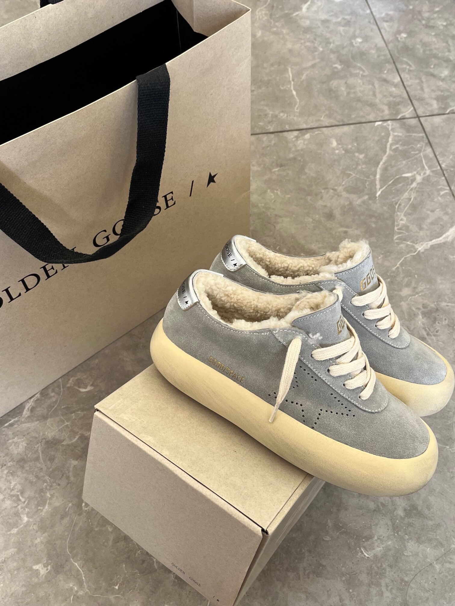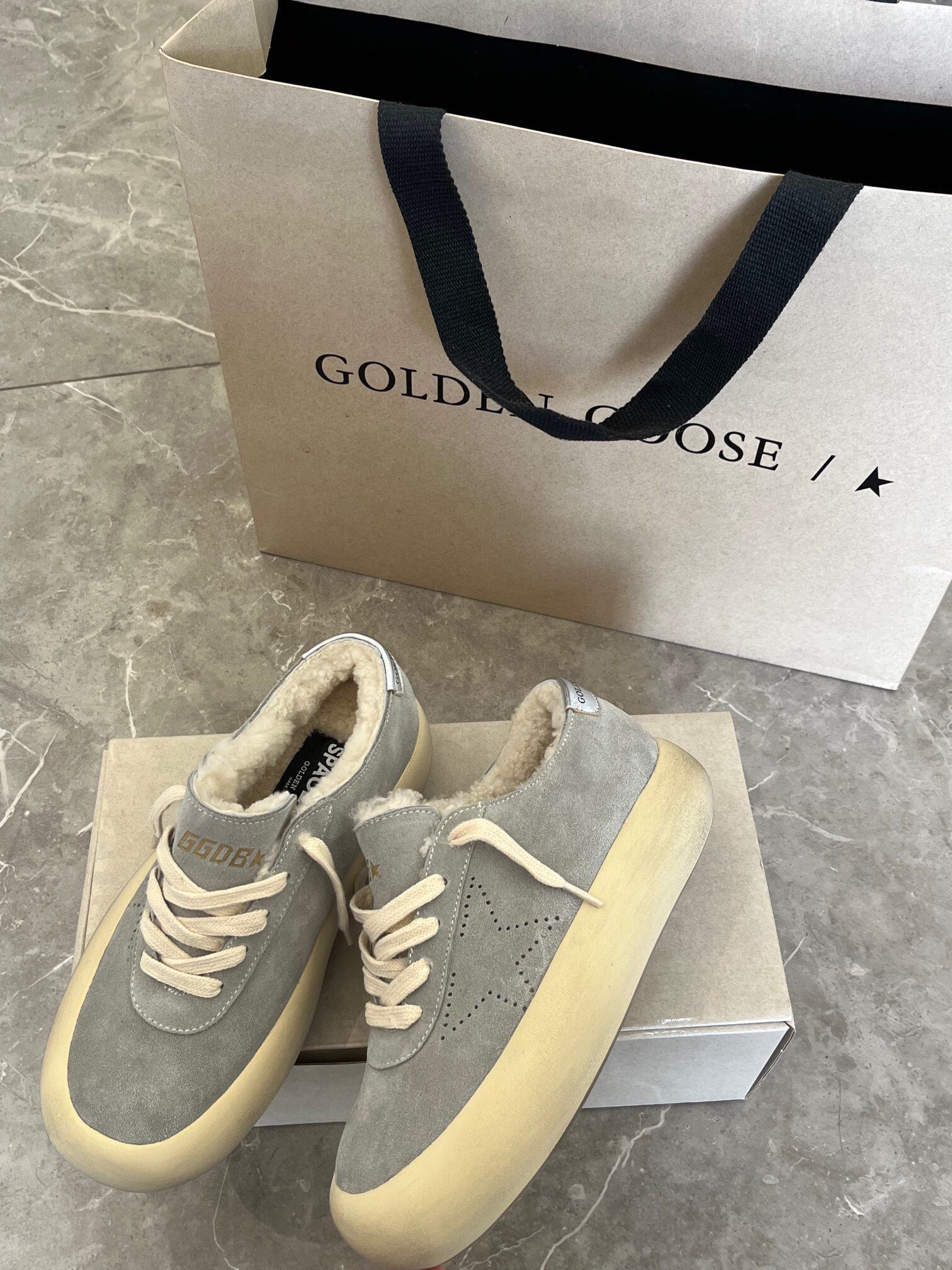 这款鞋子是AAAAA 1:1 质量 (非常棒). 使用了和原版一模一样的材料. 商标部分也保持了和Golden Goose一样. 图片拍摄是实物鞋子拍摄, 您所收到的实物保证和我们图片一模一样.