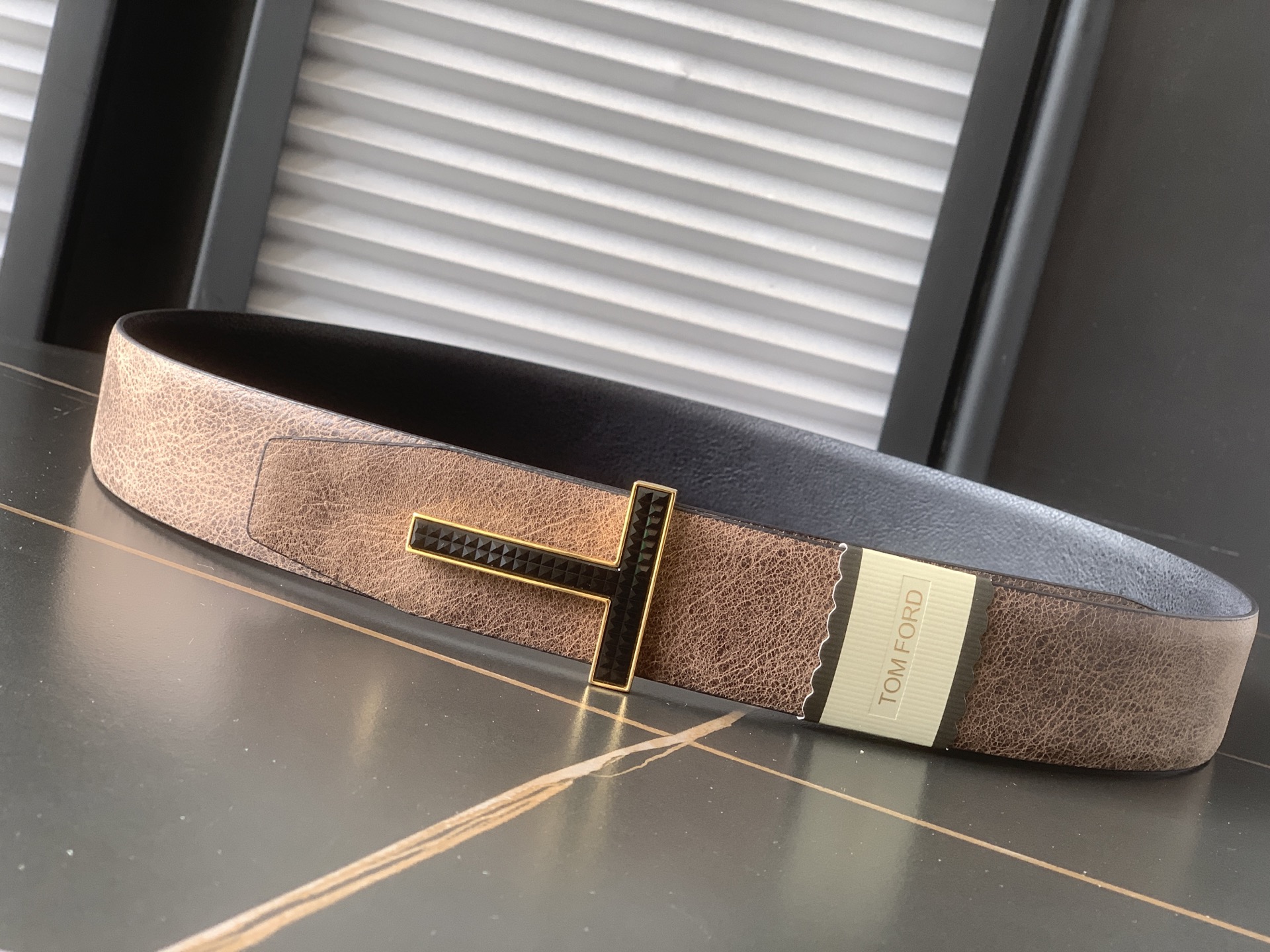 这款皮带是AAAAA 1:1 质量 (非常棒). 使用了和原版一模一样的材料. 商标部分也保持了和汤姆福特/Tom Ford一样. 图片拍摄是实物皮带拍摄, 您所收到的实物保证和我们图片一模一样.