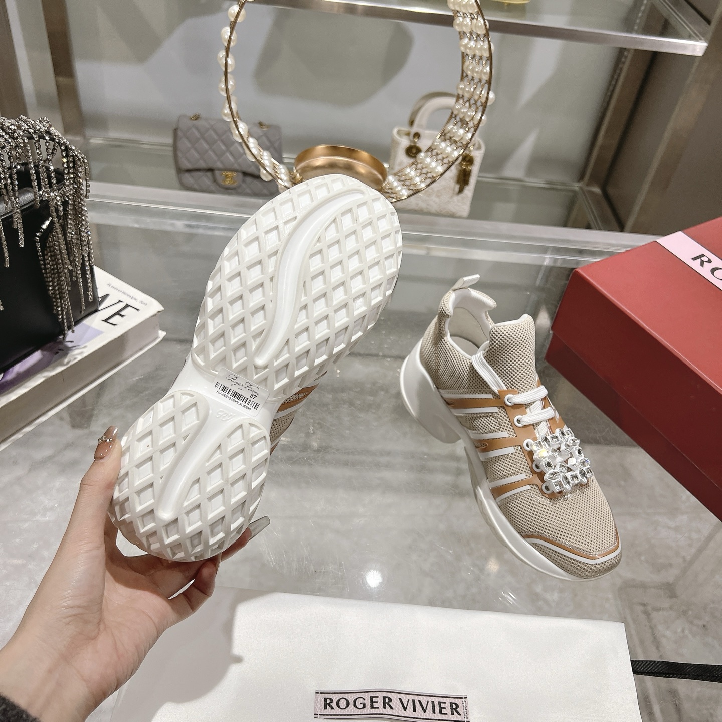 这款鞋子是AAAAA 1:1 质量 (非常棒). 使用了和原版一模一样的材料. 商标部分也保持了和罗杰维维耶/Roger Vivier一样. 图片拍摄是实物鞋子拍摄, 您所收到的实物保证和我们图片一模一样.