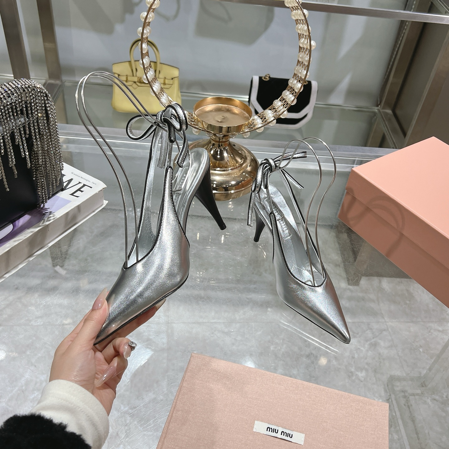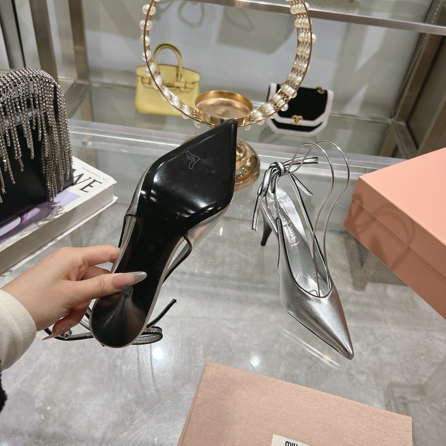 这款鞋子是AAAAA 1:1 质量 (非常棒). 使用了和原版一模一样的材料. 商标部分也保持了和缪缪/Miu Miu一样. 图片拍摄是实物鞋子拍摄, 您所收到的实物保证和我们图片一模一样.
