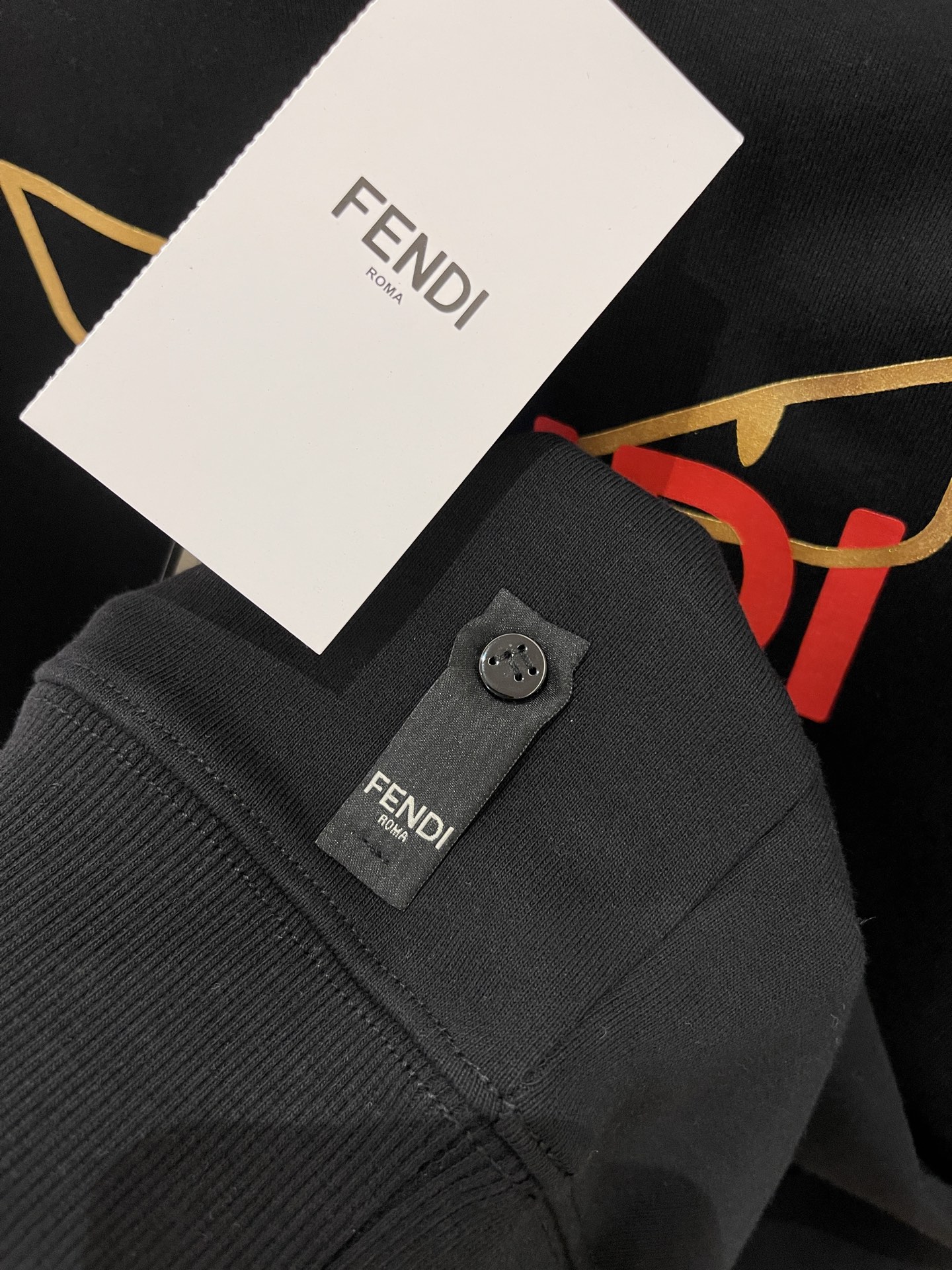 这款衣服是AAAAA 1:1 质量 (非常棒). 使用了和原版一模一样的材料. 商标部分也保持了和芬迪/Fendi一样. 图片拍摄是实物衣服拍摄, 您所收到的实物保证和我们图片一模一样.