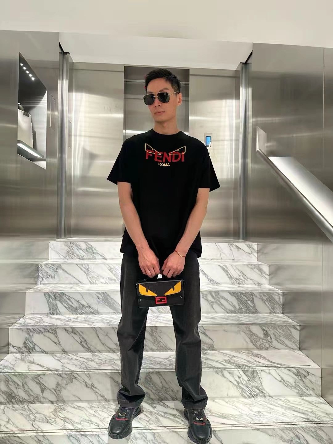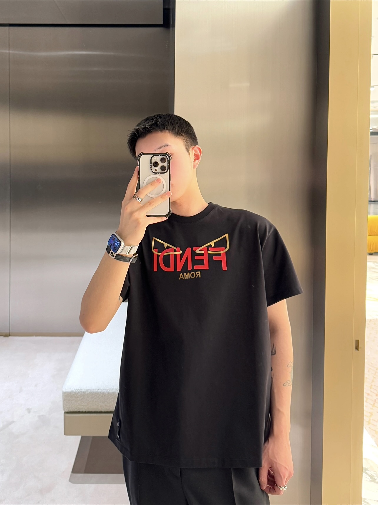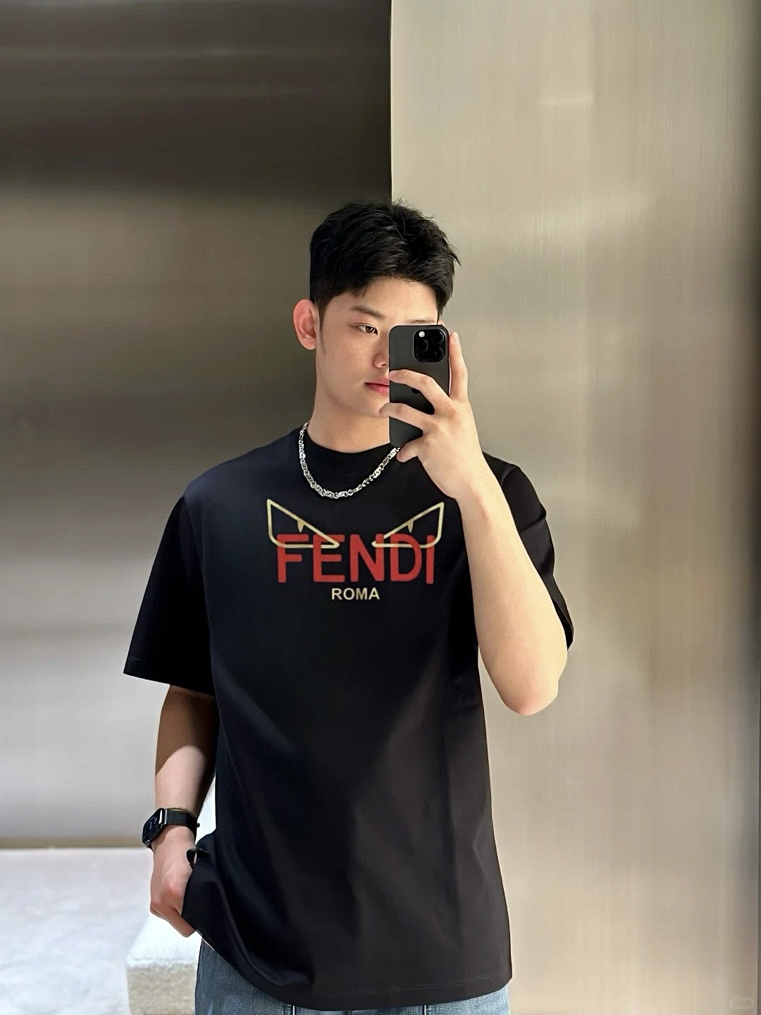这款衣服是AAAAA 1:1 质量 (非常棒). 使用了和原版一模一样的材料. 商标部分也保持了和芬迪/Fendi一样. 图片拍摄是实物衣服拍摄, 您所收到的实物保证和我们图片一模一样.