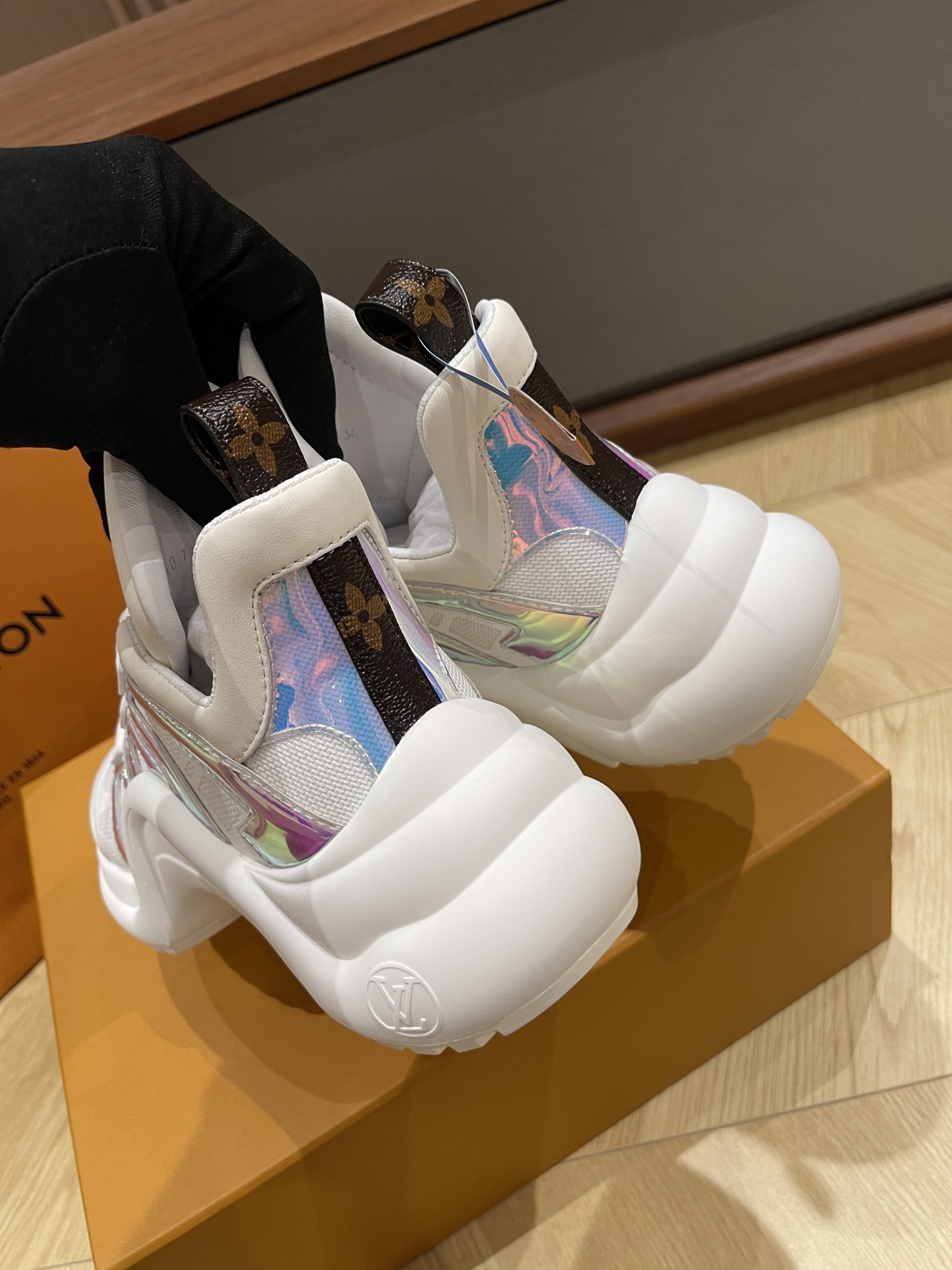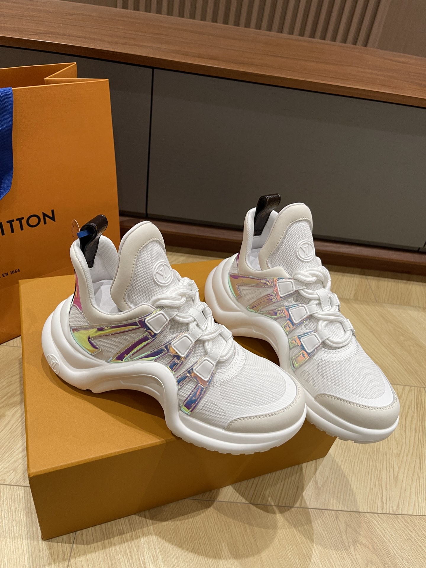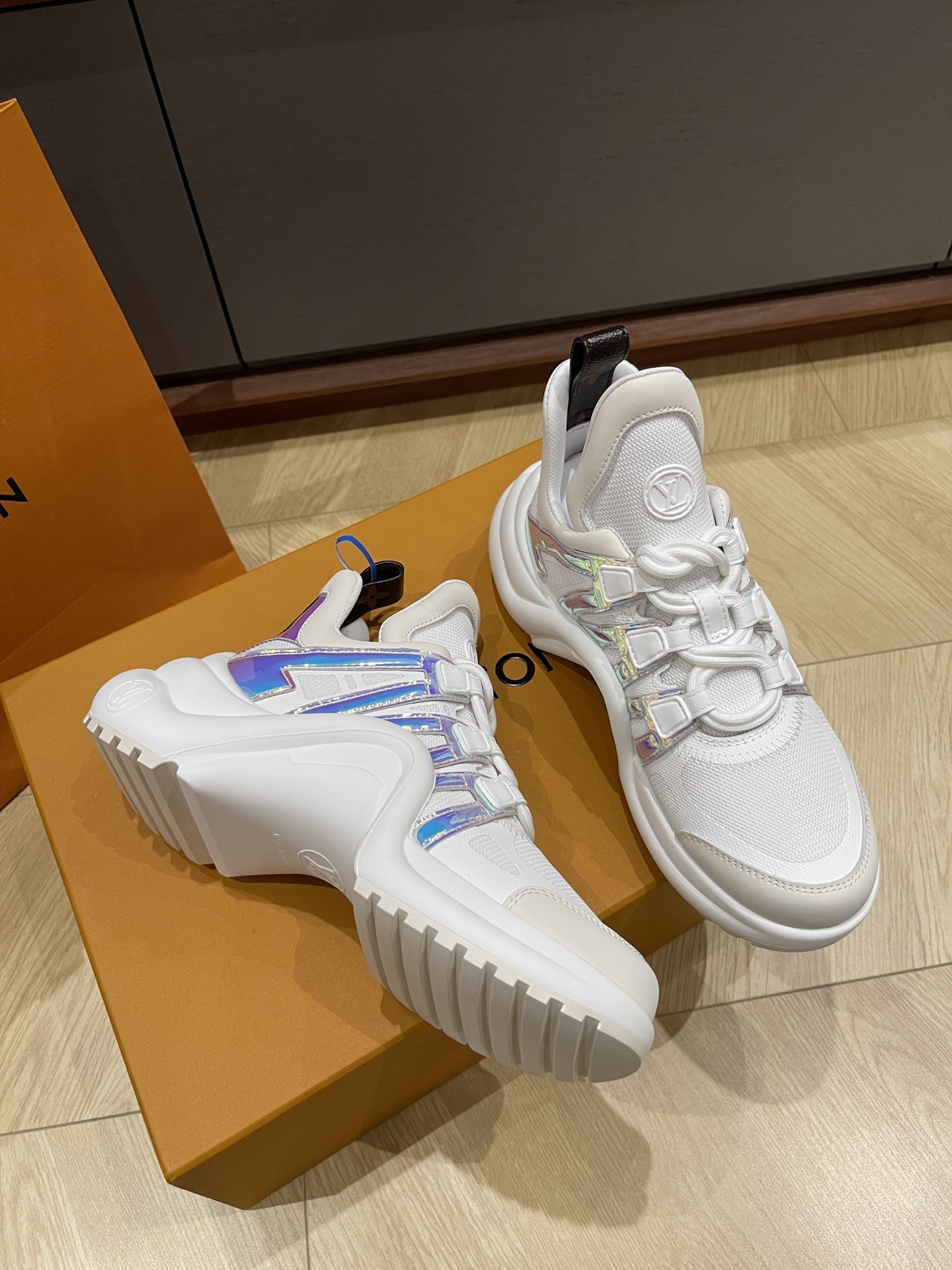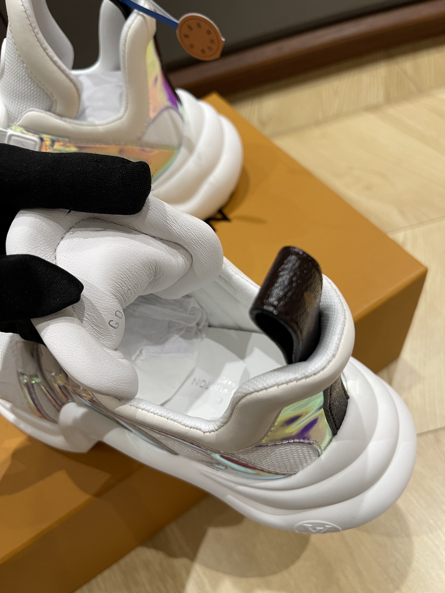 这款鞋子是AAAAA 1:1 质量 (非常棒). 使用了和原版一模一样的材料. 商标部分也保持了和路易威登/Louis Vuitton一样. 图片拍摄是实物鞋子拍摄, 您所收到的实物保证和我们图片一模一样.