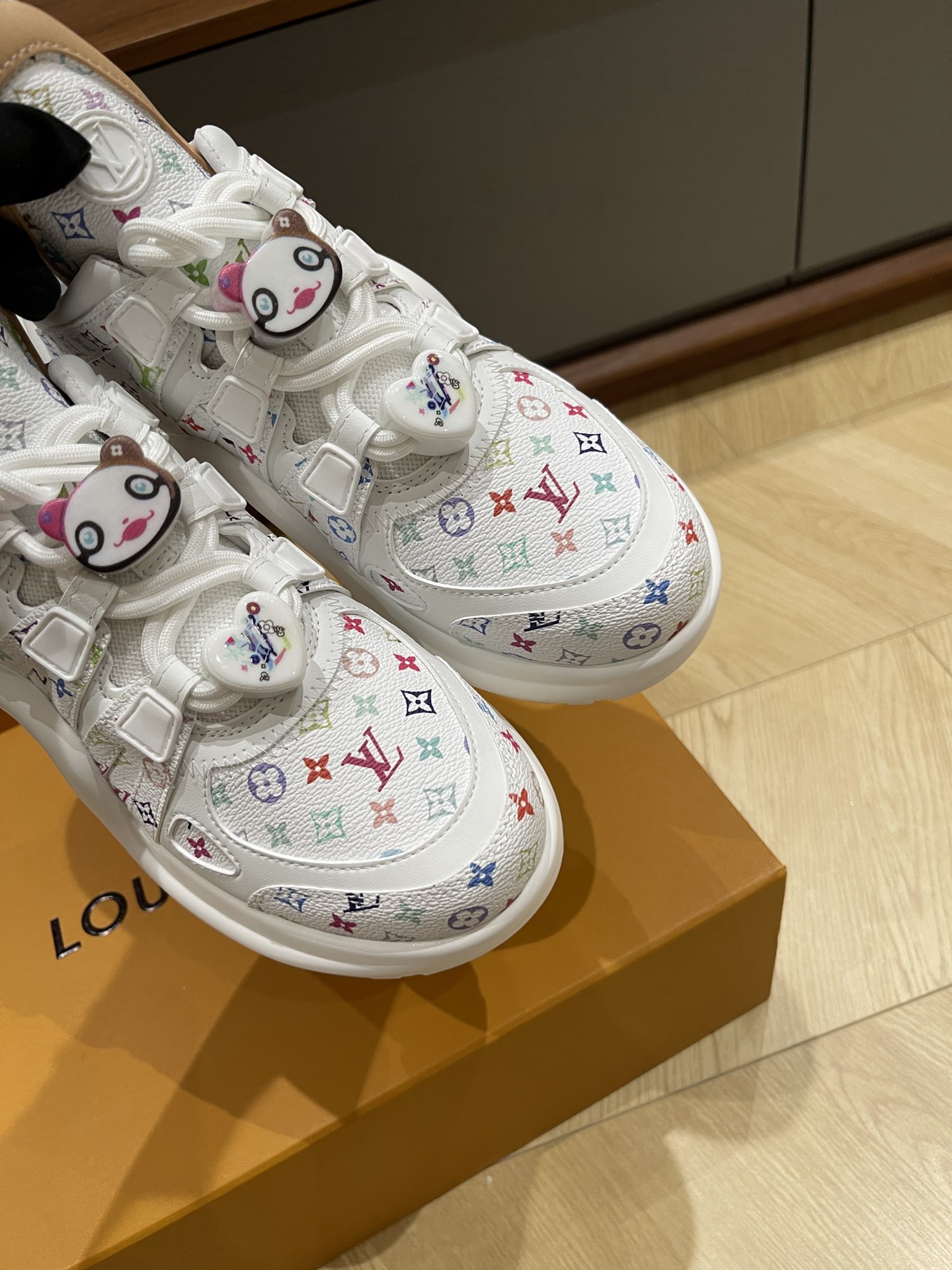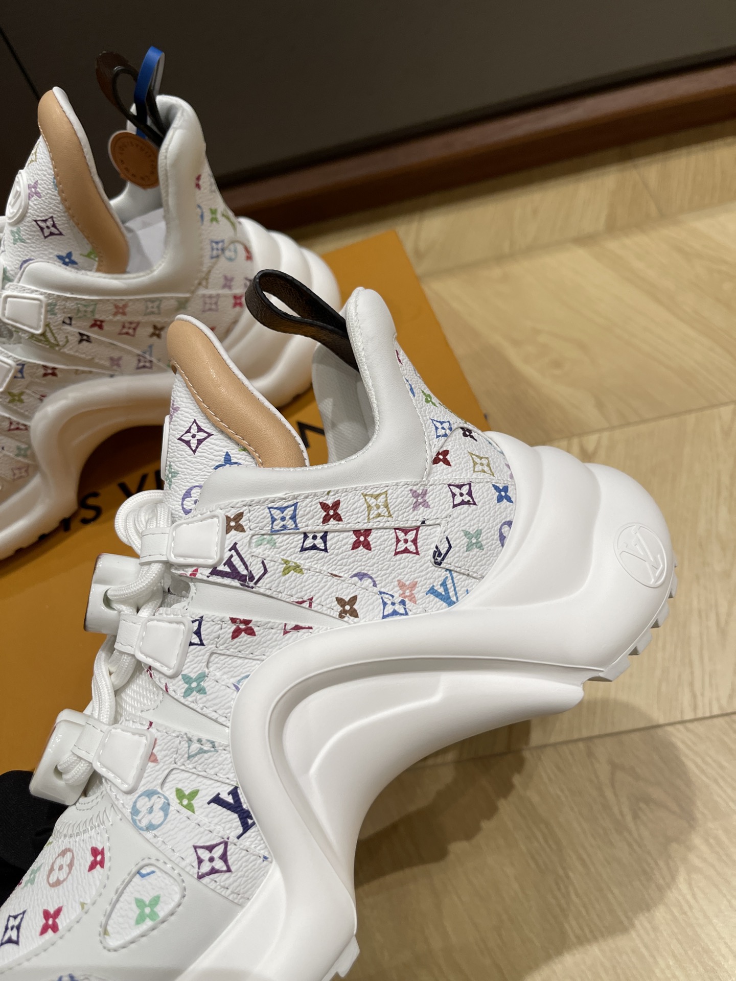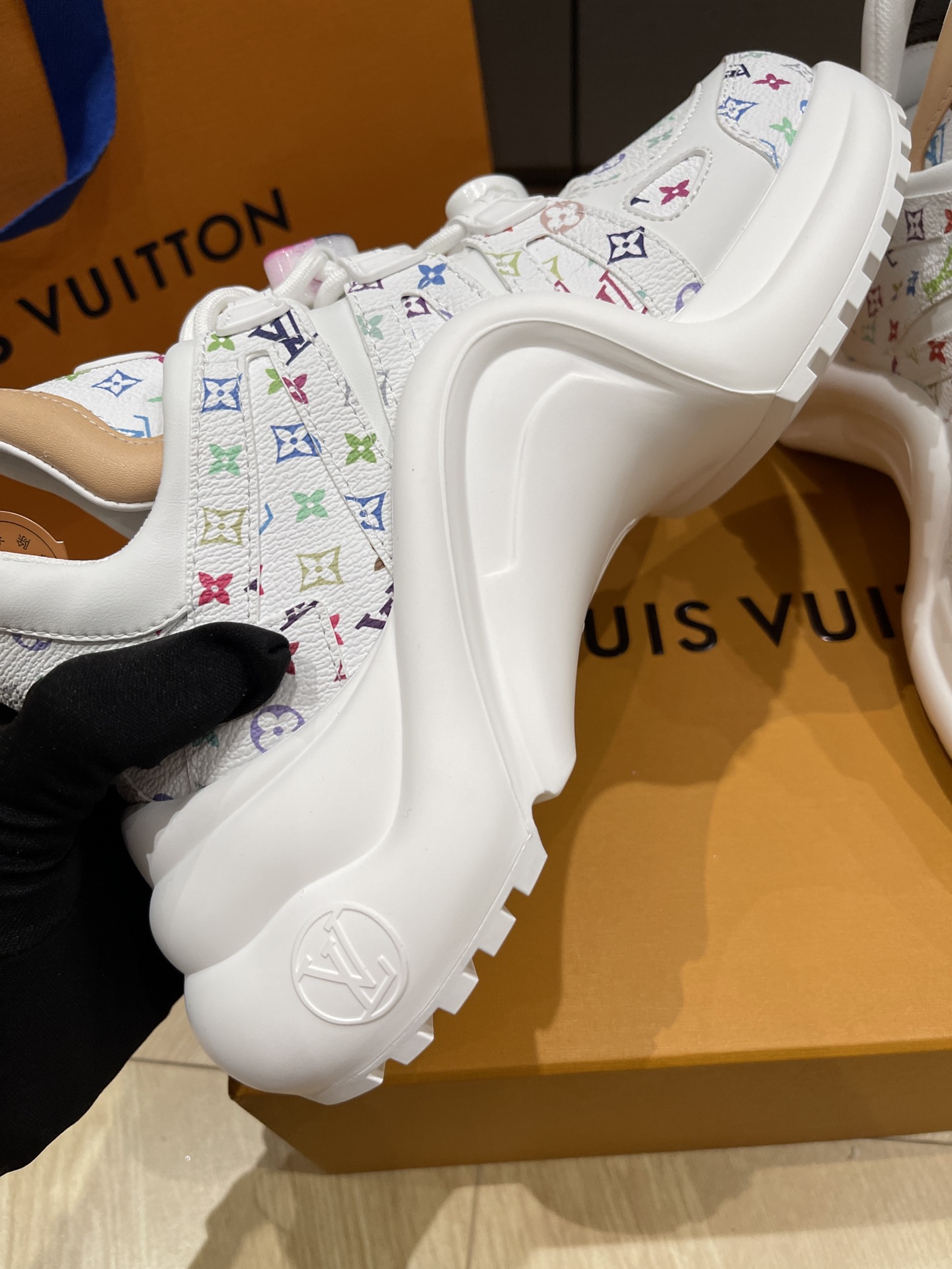 这款鞋子是AAAAA 1:1 质量 (非常棒). 使用了和原版一模一样的材料. 商标部分也保持了和路易威登/Louis Vuitton一样. 图片拍摄是实物鞋子拍摄, 您所收到的实物保证和我们图片一模一样.