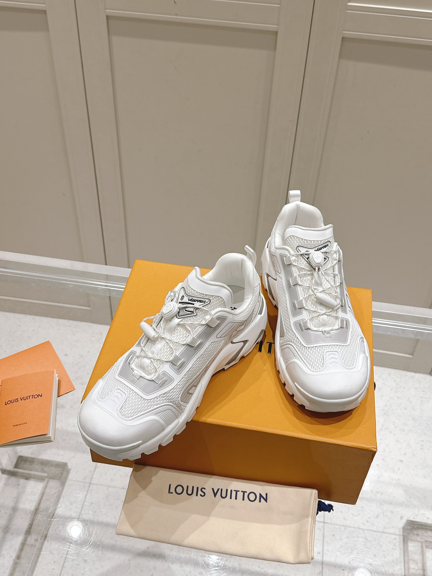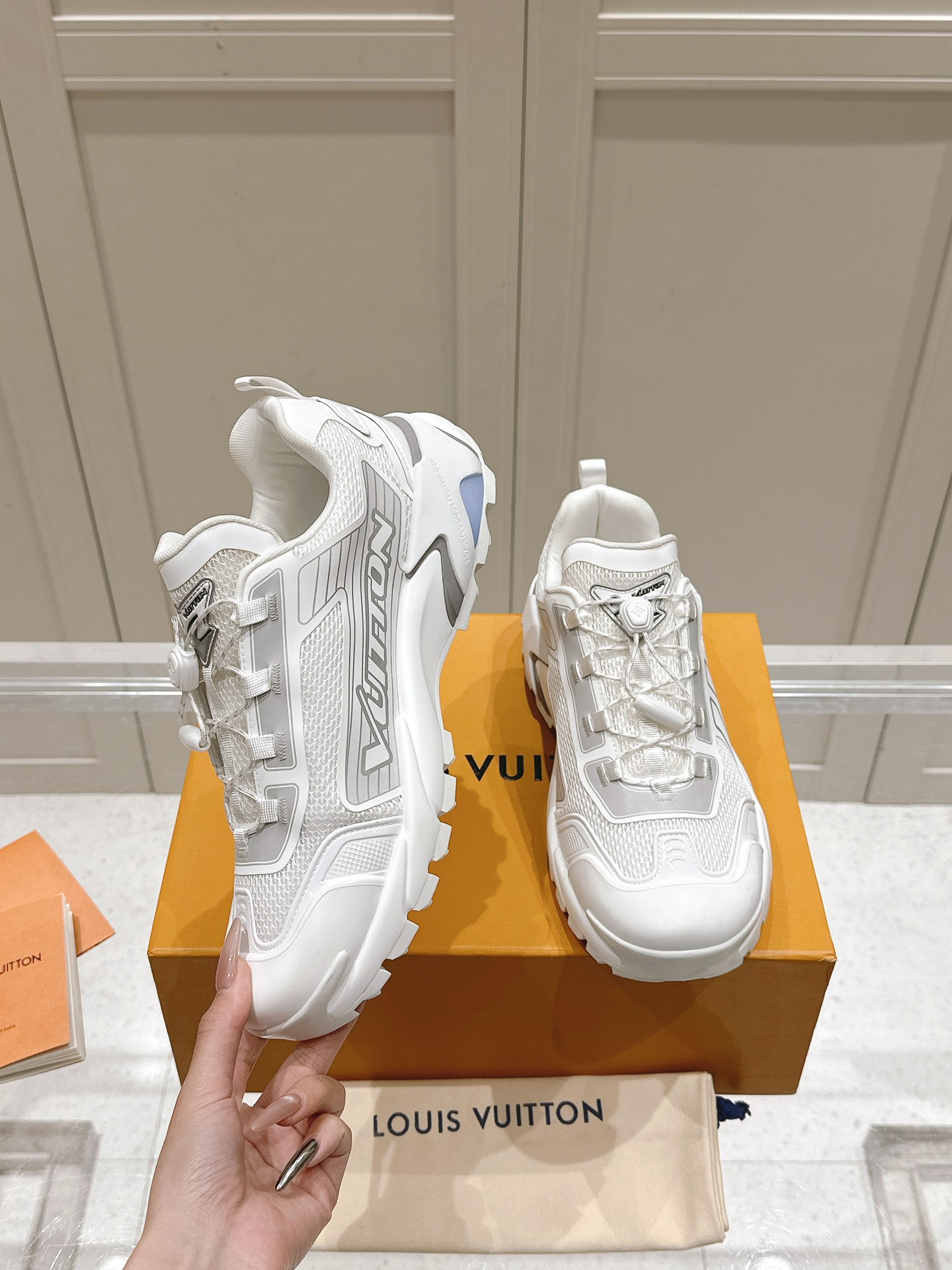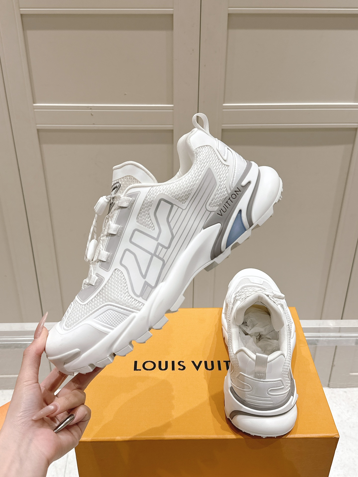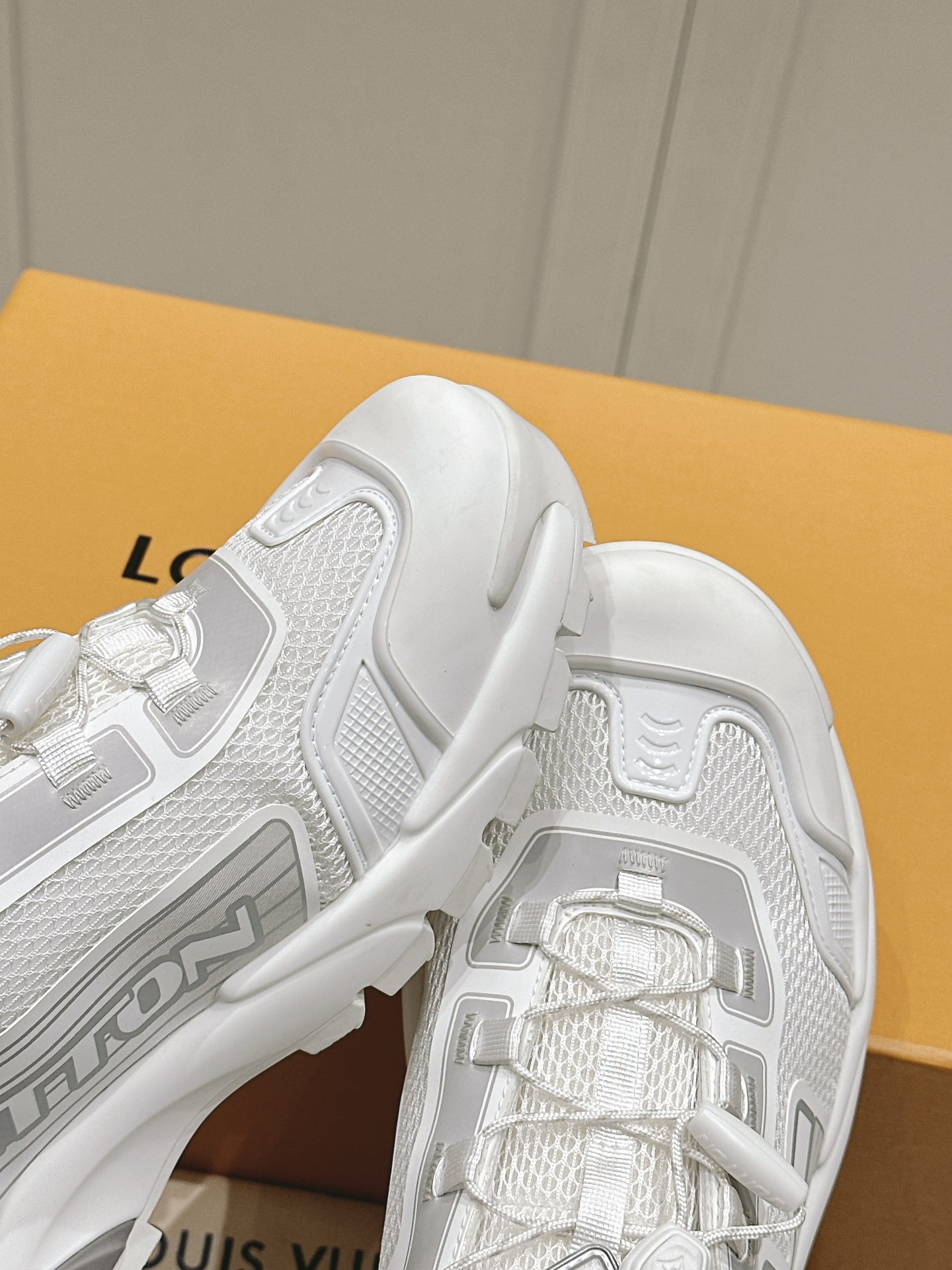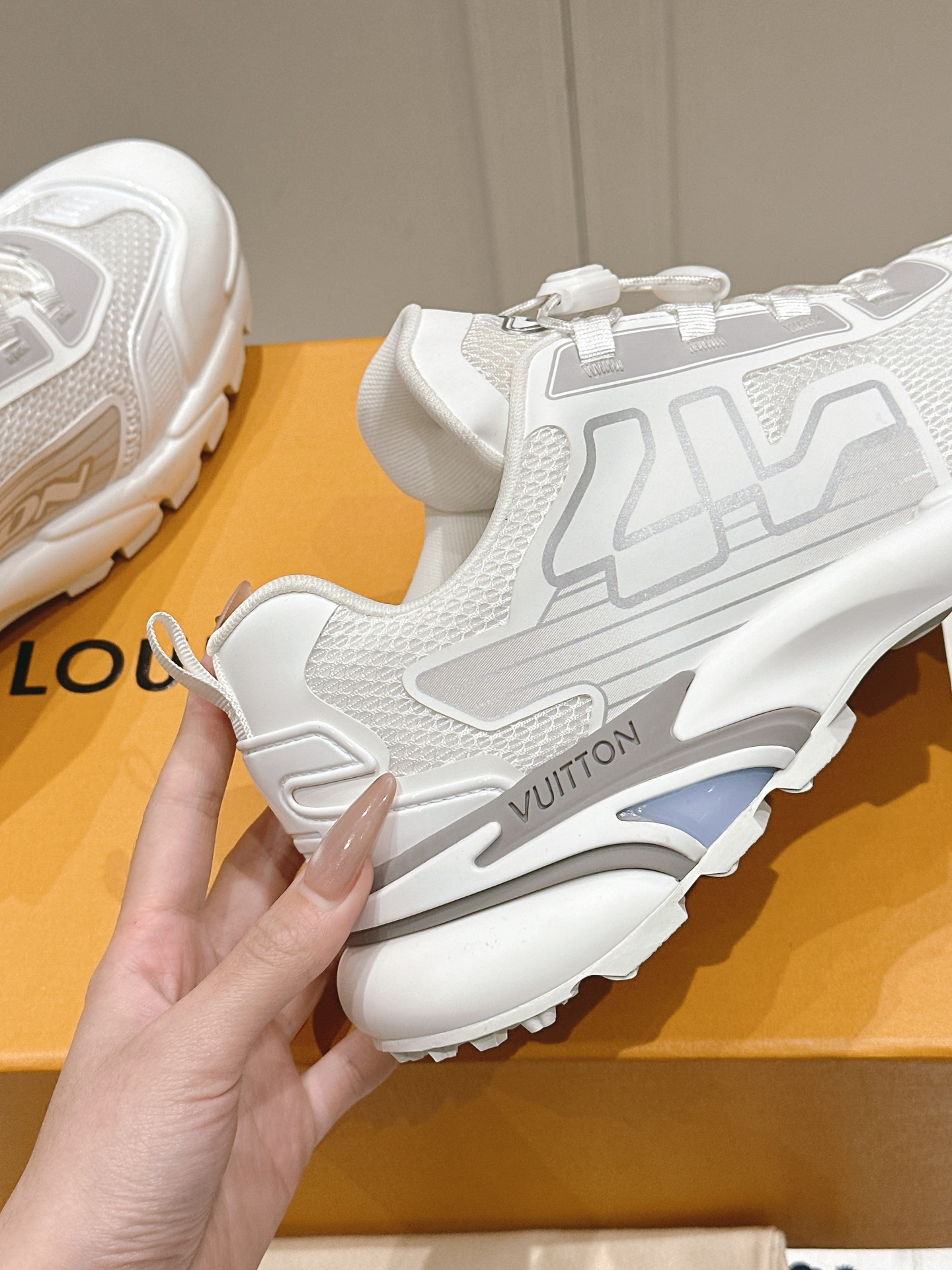 这款鞋子是AAAAA 1:1 质量 (非常棒). 使用了和原版一模一样的材料. 商标部分也保持了和路易威登/Louis Vuitton一样. 图片拍摄是实物鞋子拍摄, 您所收到的实物保证和我们图片一模一样.