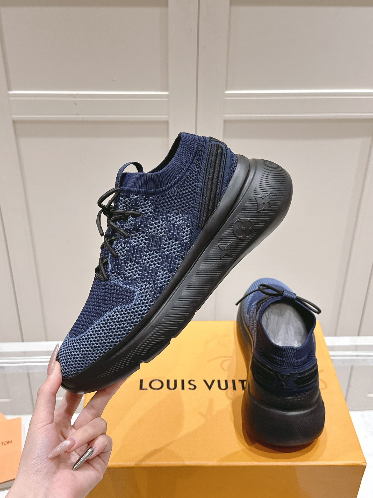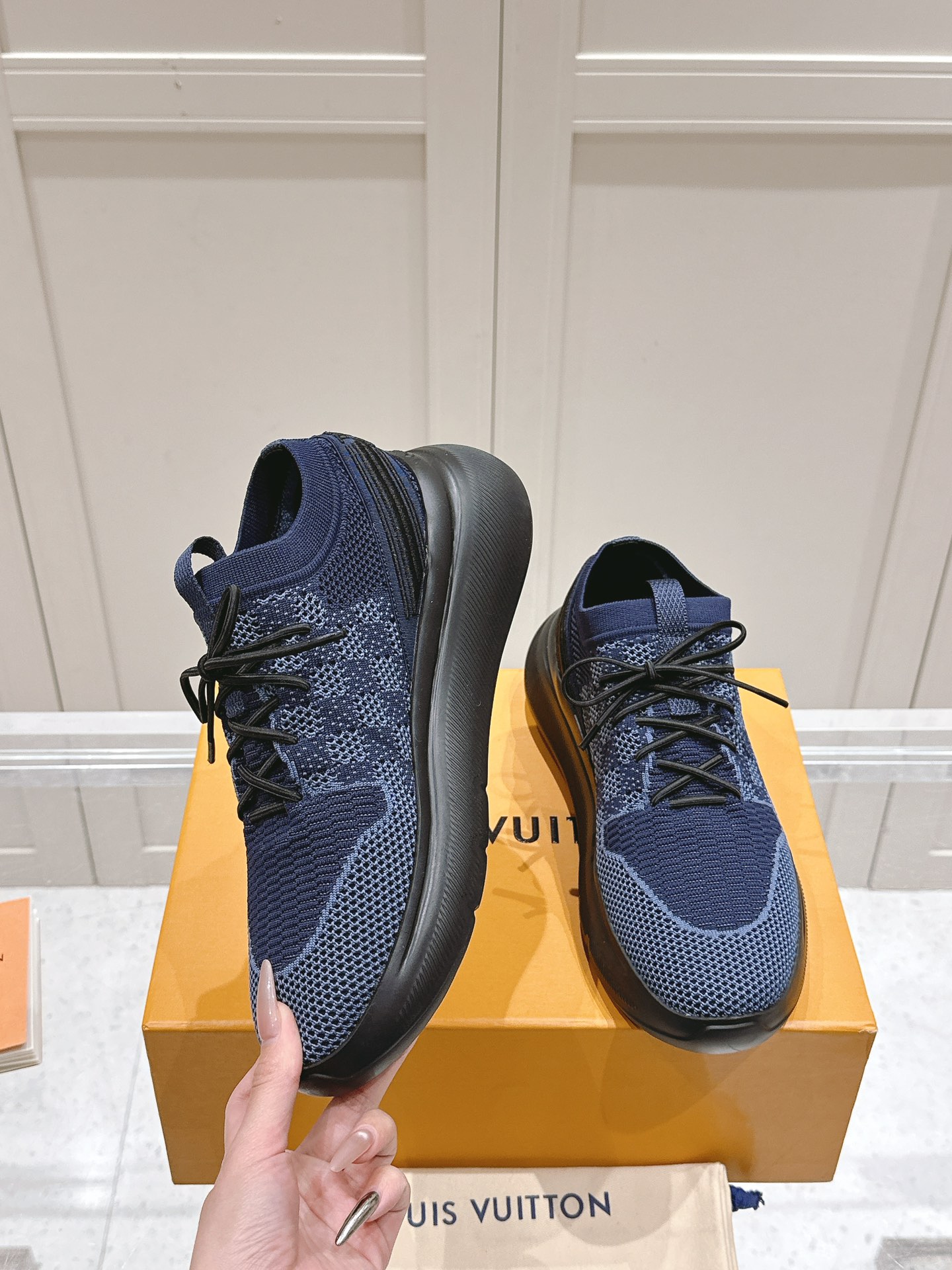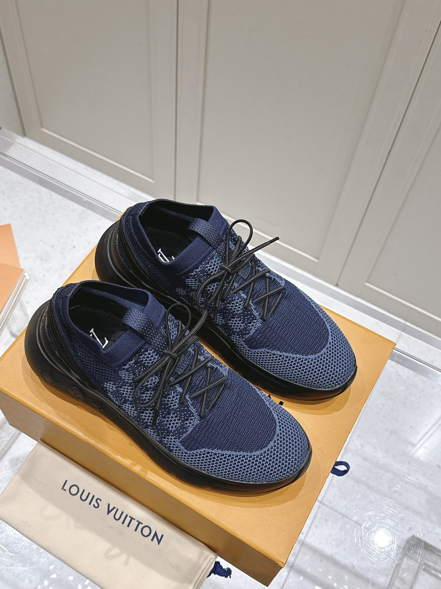 这款鞋子是AAAAA 1:1 质量 (非常棒). 使用了和原版一模一样的材料. 商标部分也保持了和路易威登/Louis Vuitton一样. 图片拍摄是实物鞋子拍摄, 您所收到的实物保证和我们图片一模一样.
