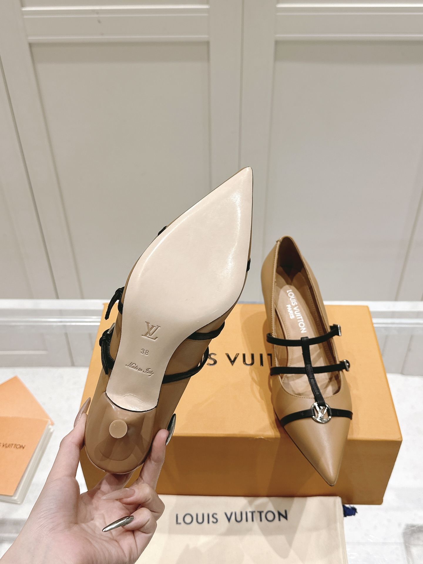 这款鞋子是AAAAA 1:1 质量 (非常棒). 使用了和原版一模一样的材料. 商标部分也保持了和路易威登/Louis Vuitton一样. 图片拍摄是实物鞋子拍摄, 您所收到的实物保证和我们图片一模一样.