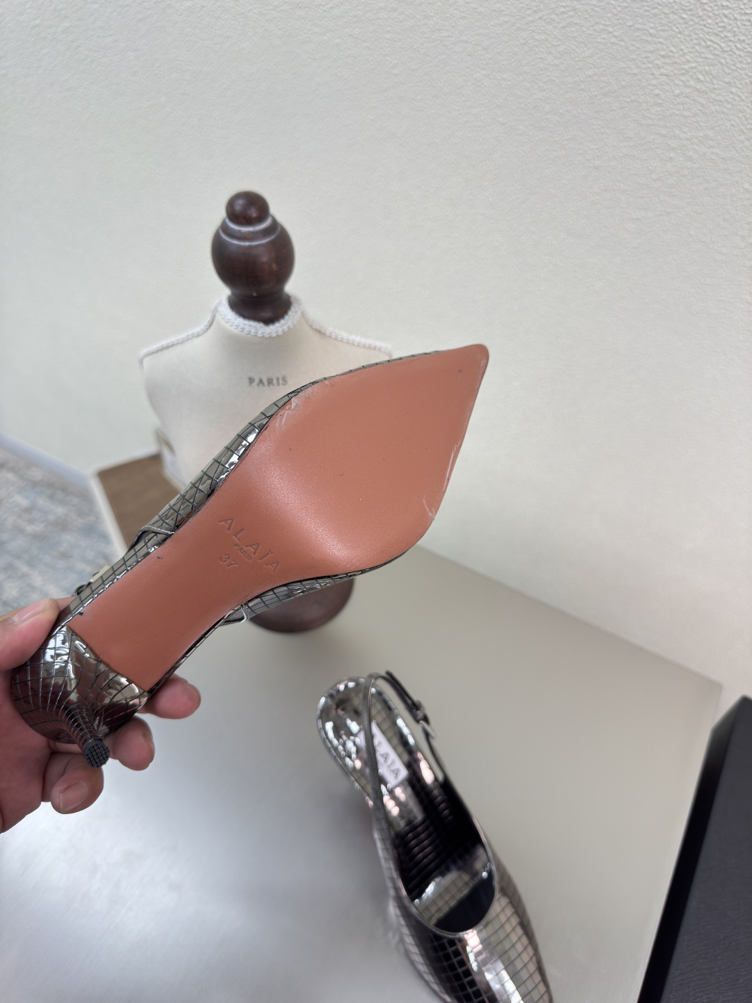 这款鞋子是AAAAA 1:1 质量 (非常棒). 使用了和原版一模一样的材料. 商标部分也保持了和Alaia一样. 图片拍摄是实物鞋子拍摄, 您所收到的实物保证和我们图片一模一样.