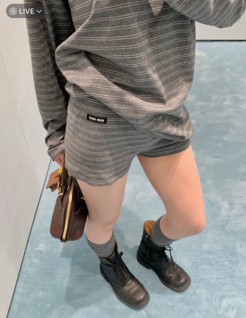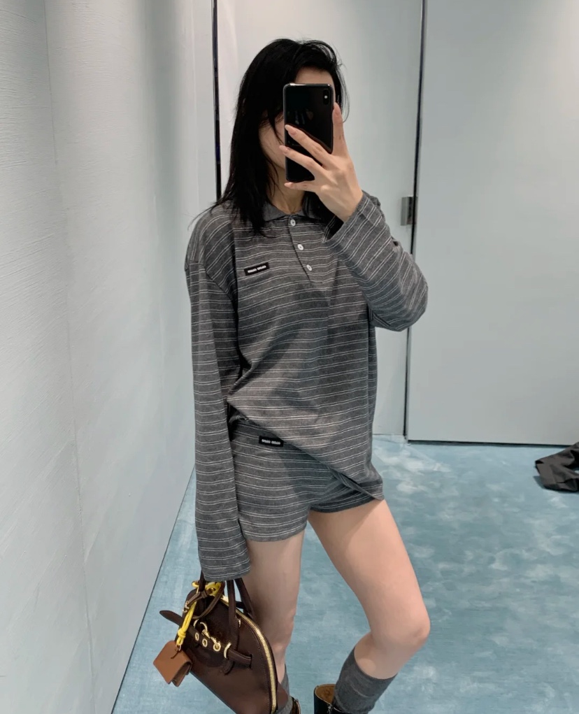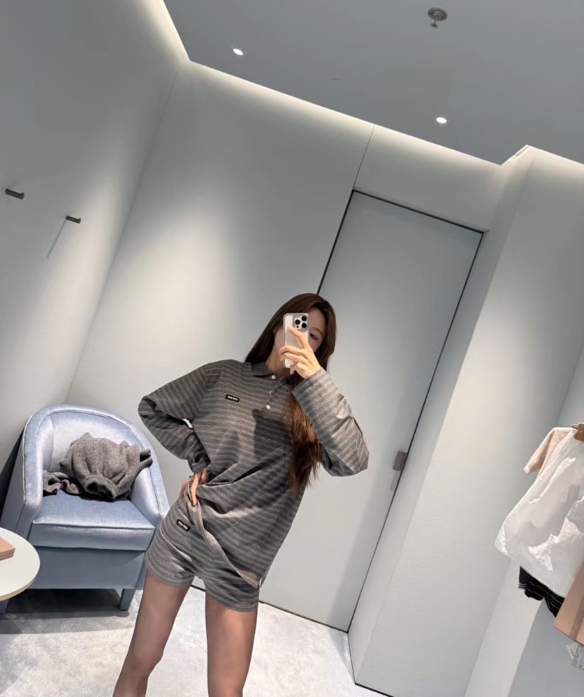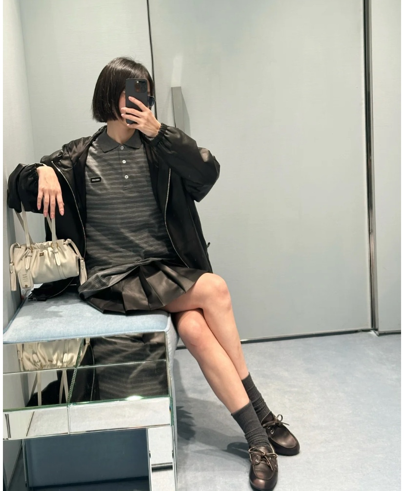 这款衣服是AAAAA 1:1 质量 (非常棒). 使用了和原版一模一样的材料. 商标部分也保持了和缪缪/Miu Miu一样. 图片拍摄是实物衣服拍摄, 您所收到的实物保证和我们图片一模一样.