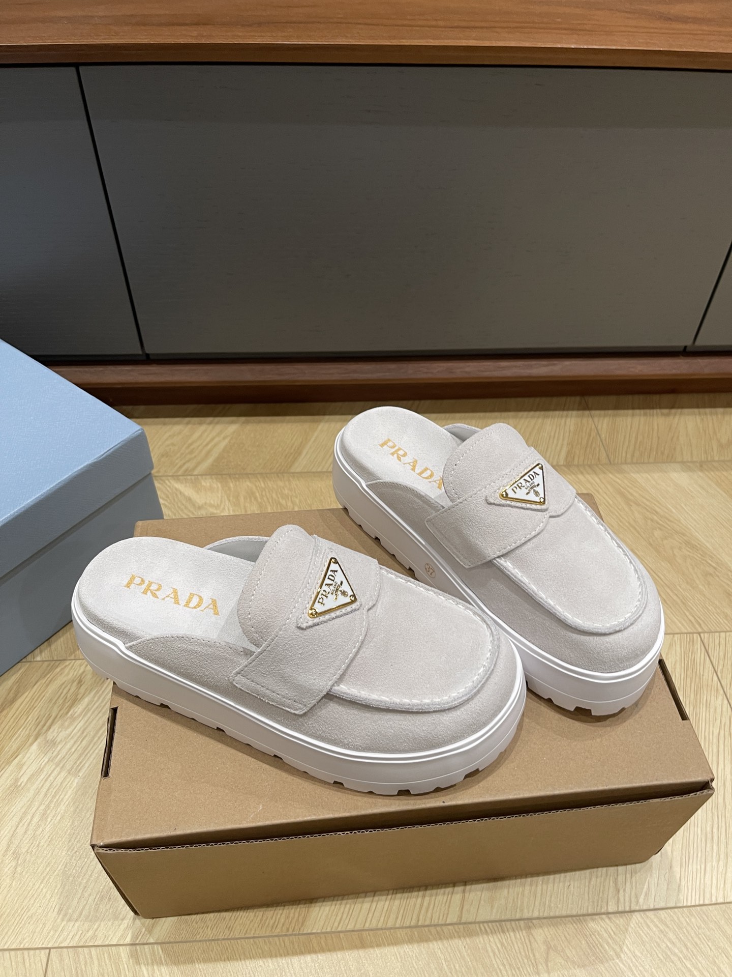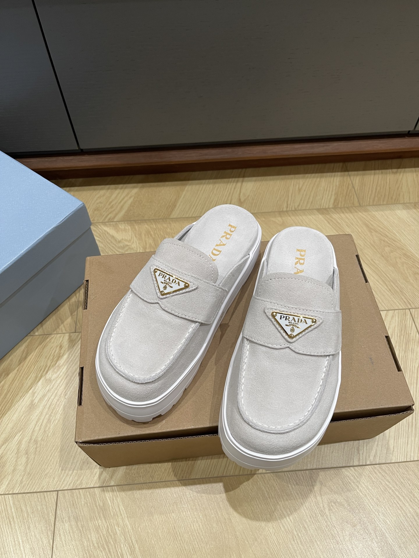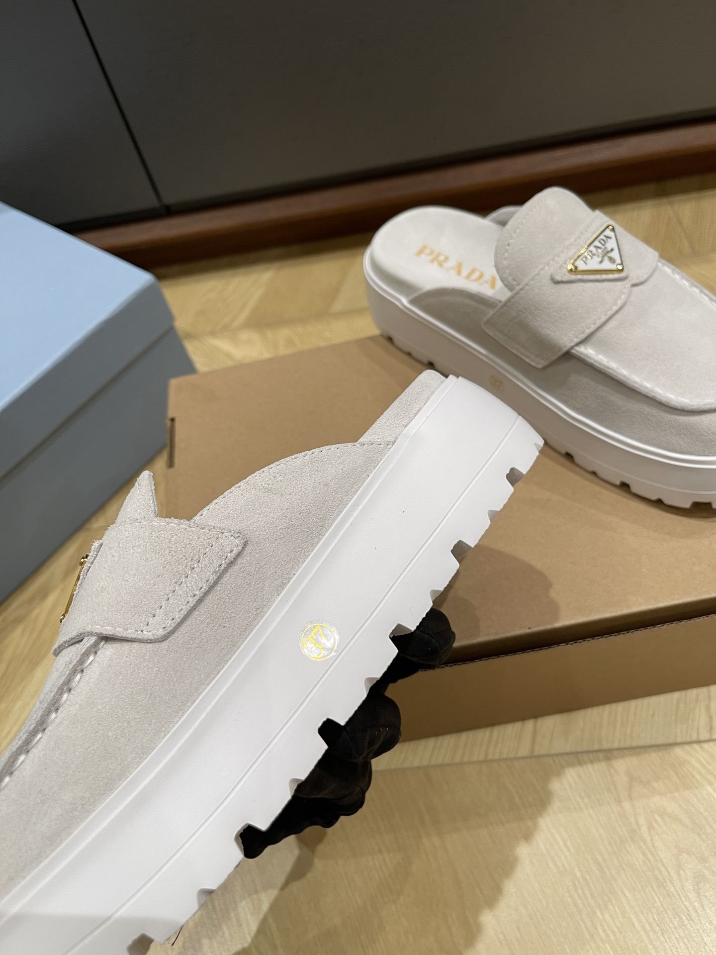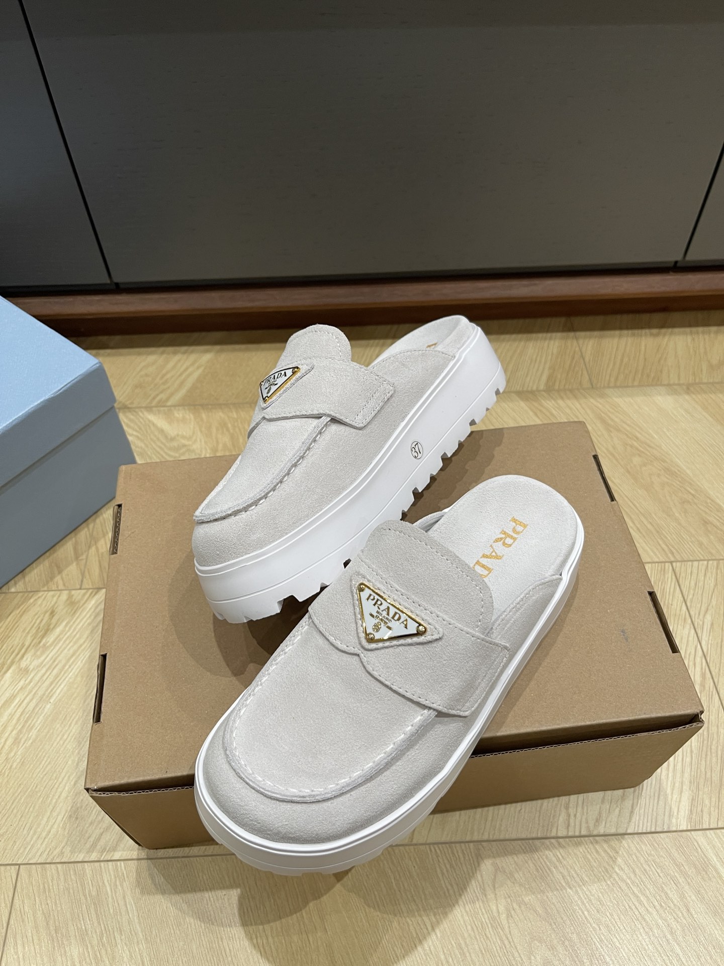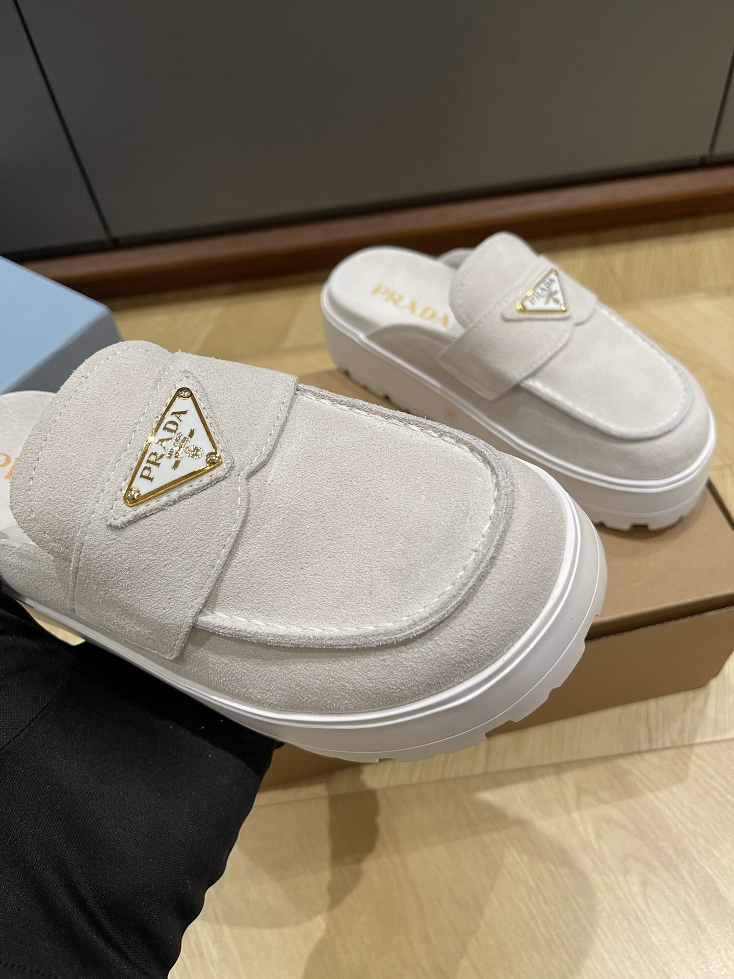 这款鞋子是AAAAA 1:1 质量 (非常棒). 使用了和原版一模一样的材料. 商标部分也保持了和普拉达/Prada一样. 图片拍摄是实物鞋子拍摄, 您所收到的实物保证和我们图片一模一样.