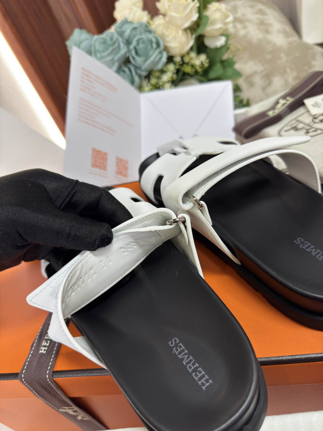 这款鞋子是AAAAA 1:1 质量 (非常棒). 使用了和原版一模一样的材料. 商标部分也保持了和爱马仕/Hermes一样. 图片拍摄是实物鞋子拍摄, 您所收到的实物保证和我们图片一模一样.