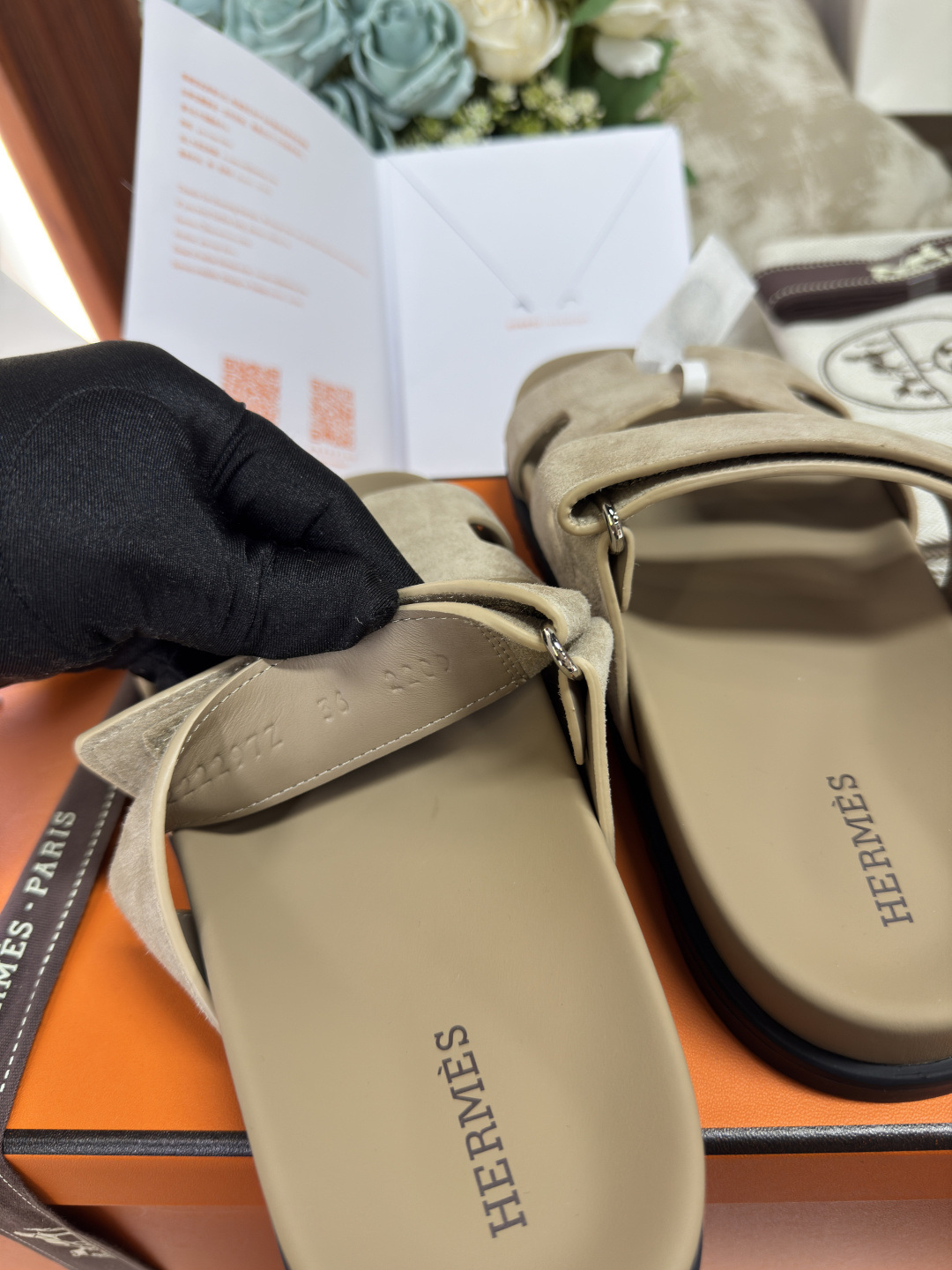 这款鞋子是AAAAA 1:1 质量 (非常棒). 使用了和原版一模一样的材料. 商标部分也保持了和爱马仕/Hermes一样. 图片拍摄是实物鞋子拍摄, 您所收到的实物保证和我们图片一模一样.
