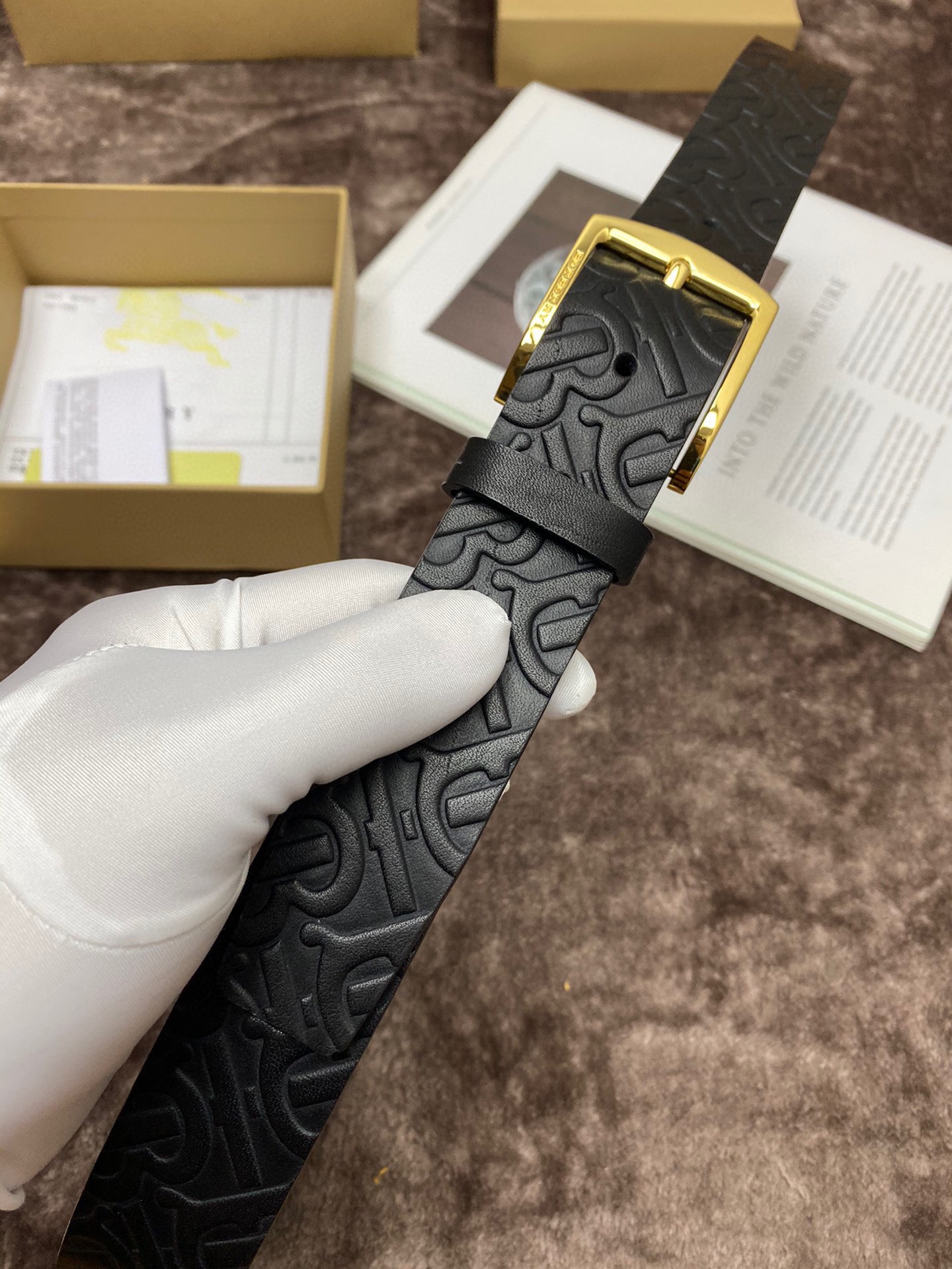 这款皮带是AAAAA 1:1 质量 (非常棒). 使用了和原版一模一样的材料. 商标部分也保持了和巴宝莉/Burberry一样. 图片拍摄是实物皮带拍摄, 您所收到的实物保证和我们图片一模一样.