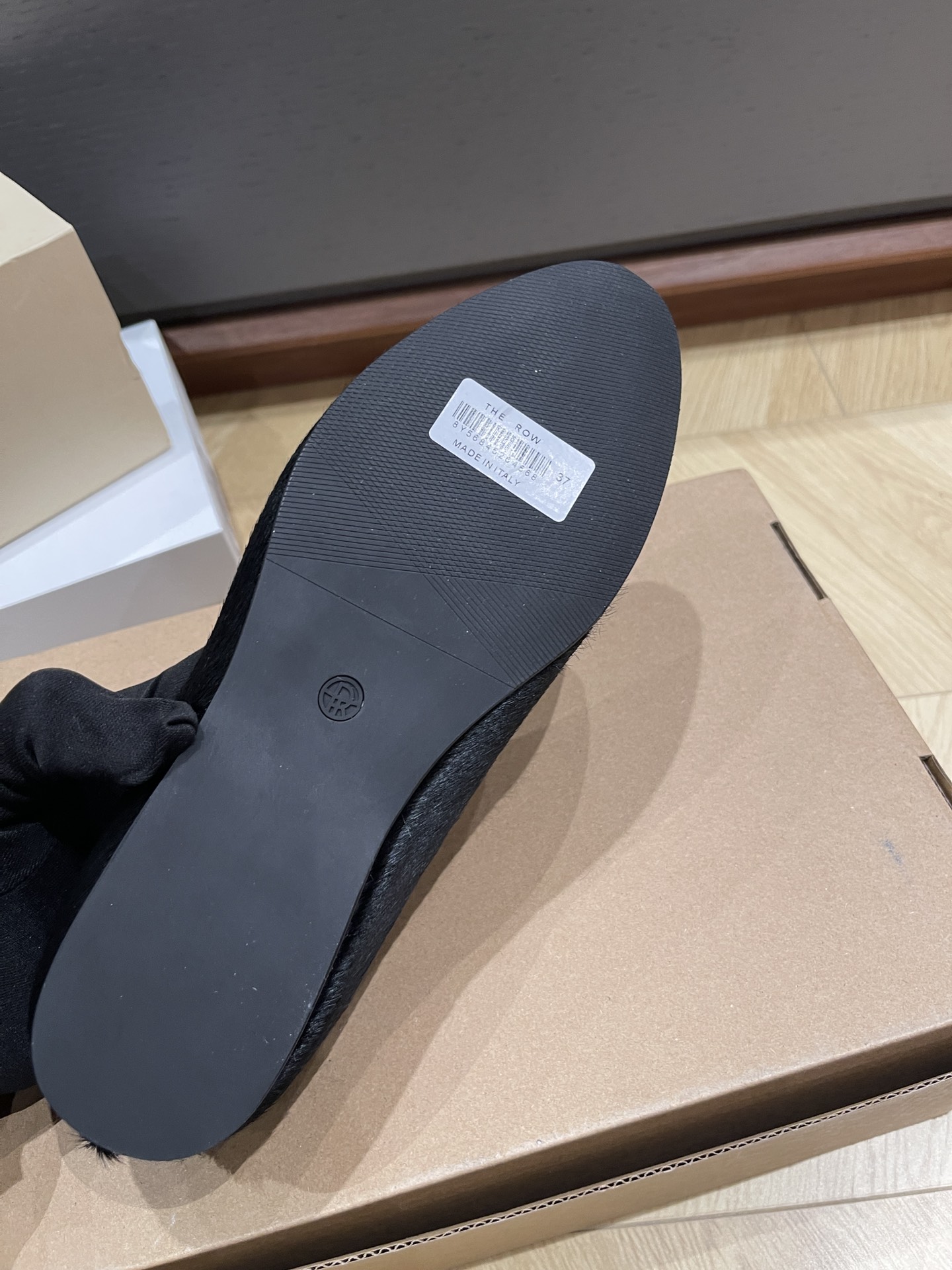 这款鞋子是AAAAA 1:1 质量 (非常棒). 使用了和原版一模一样的材料. 商标部分也保持了和The Row一样. 图片拍摄是实物鞋子拍摄, 您所收到的实物保证和我们图片一模一样.
