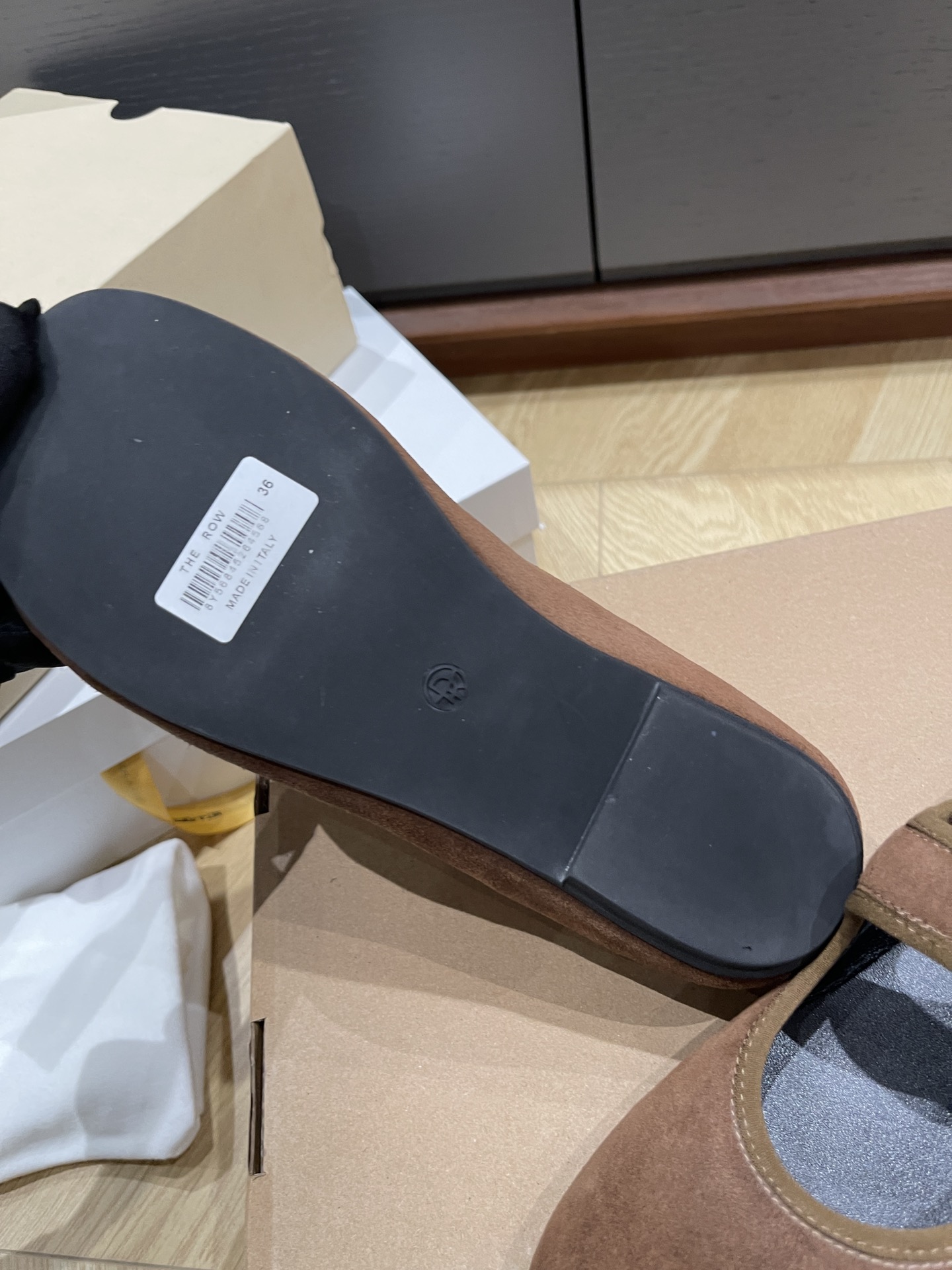 这款鞋子是AAAAA 1:1 质量 (非常棒). 使用了和原版一模一样的材料. 商标部分也保持了和The Row一样. 图片拍摄是实物鞋子拍摄, 您所收到的实物保证和我们图片一模一样.