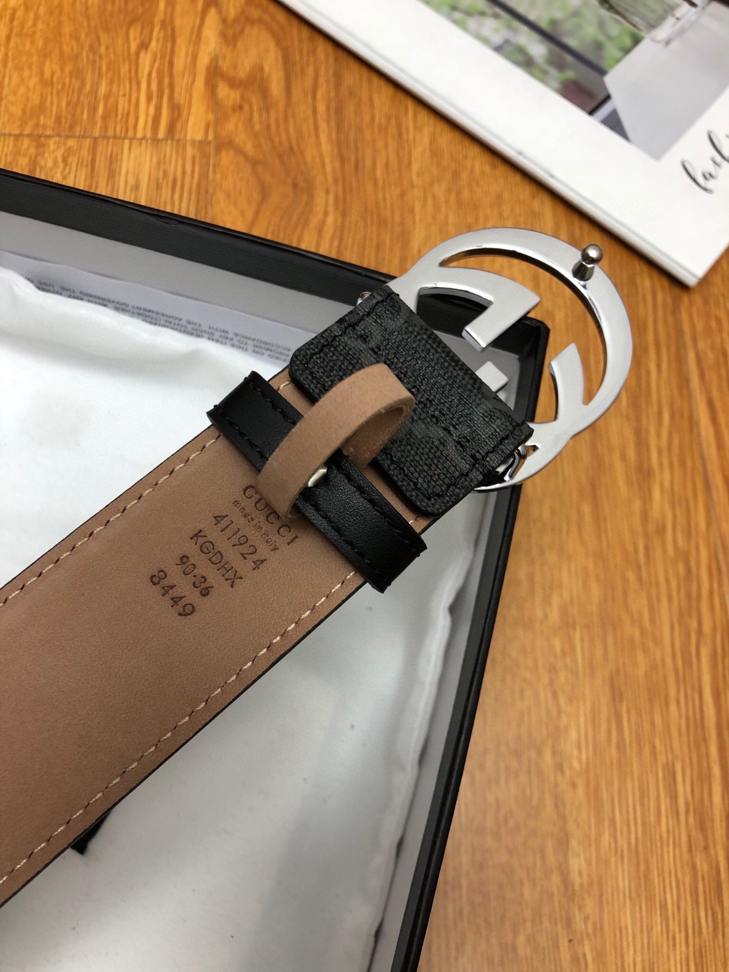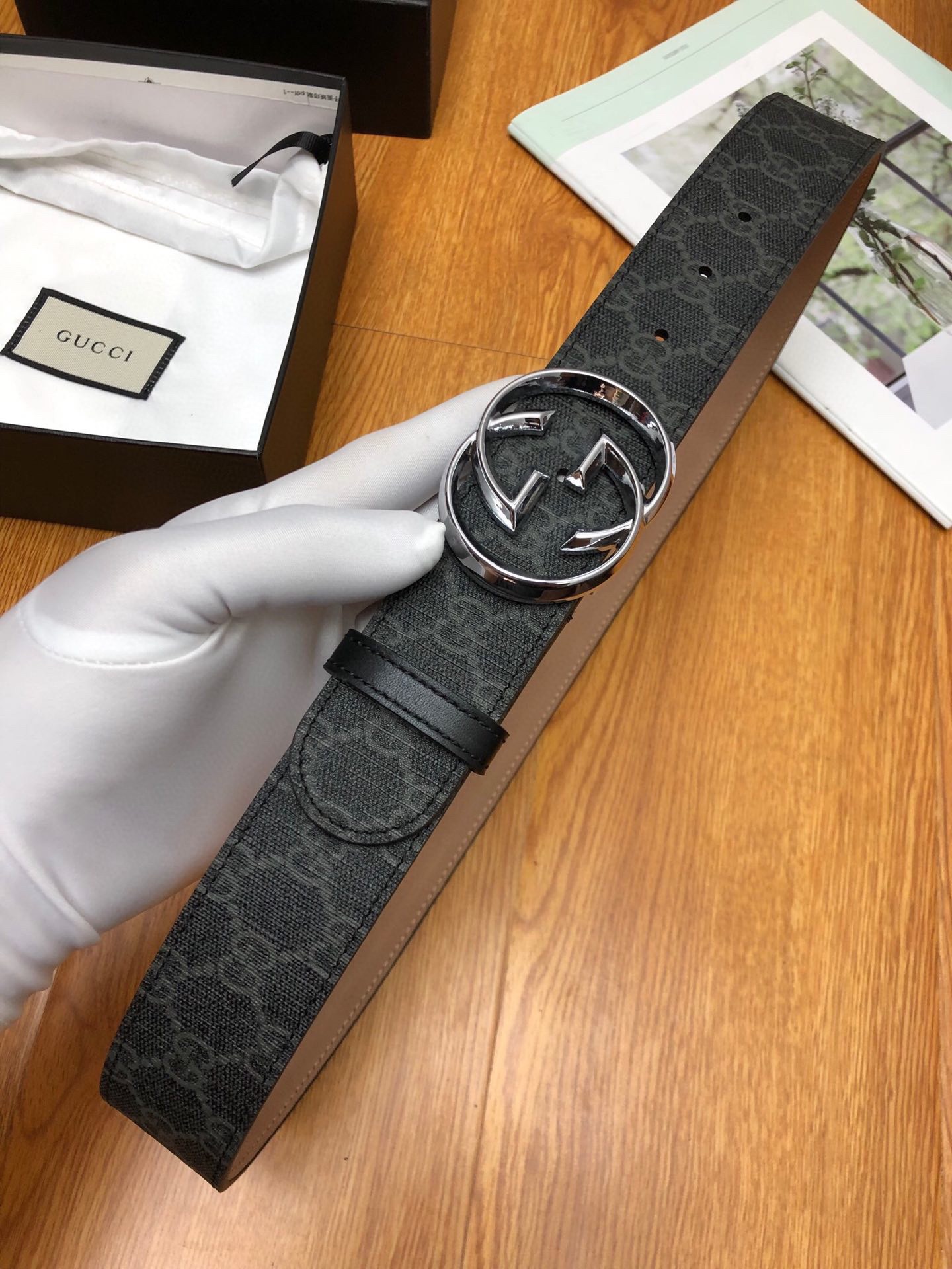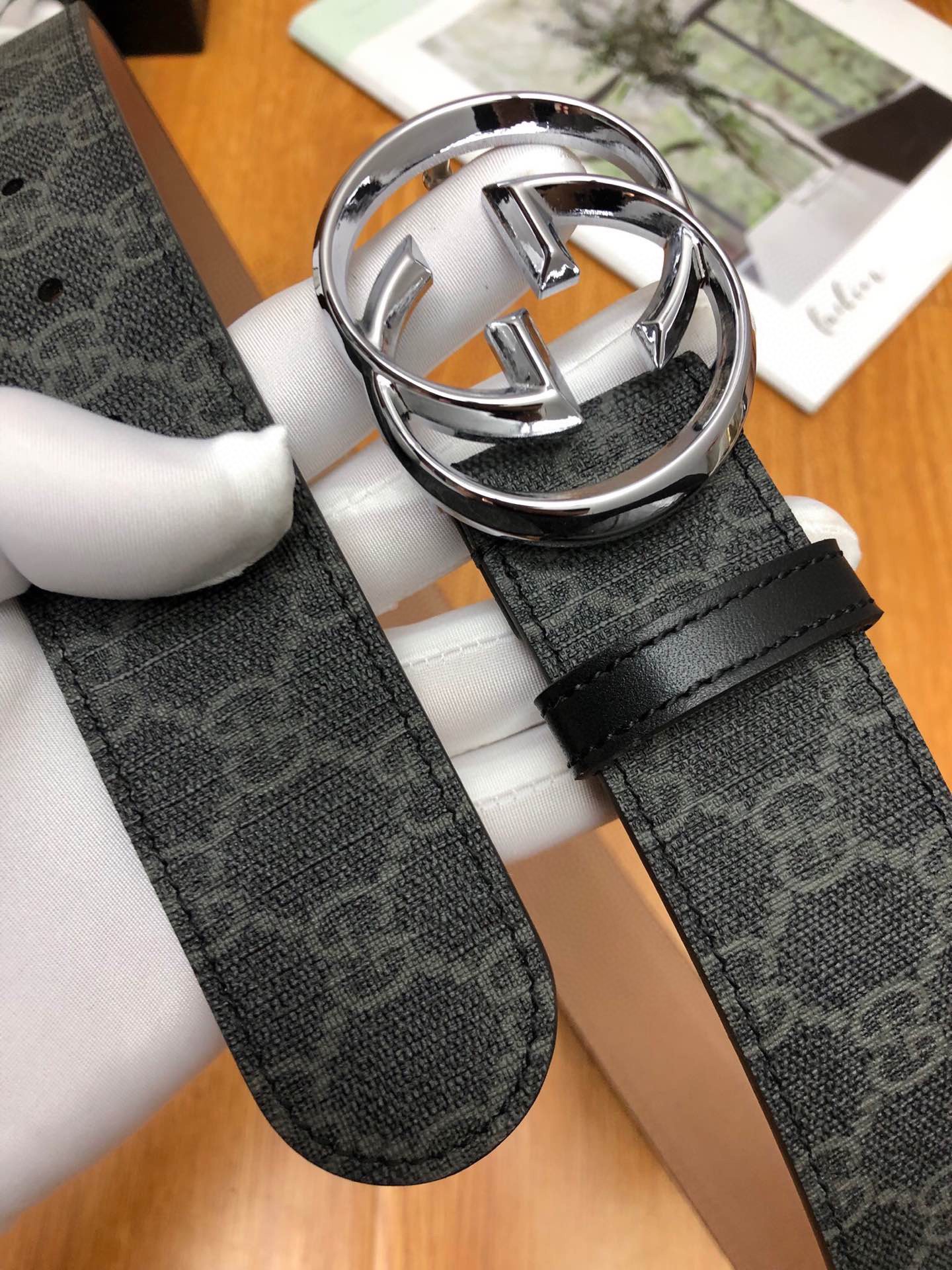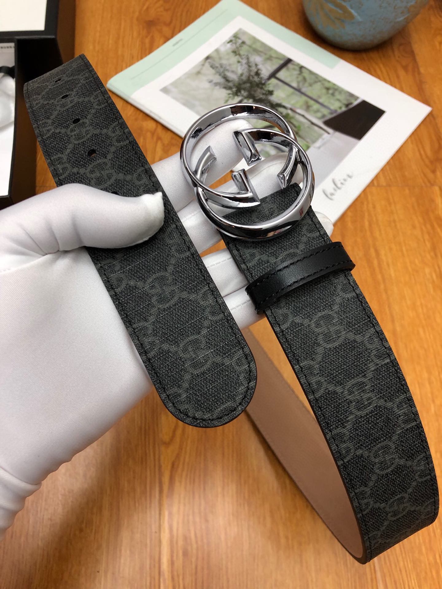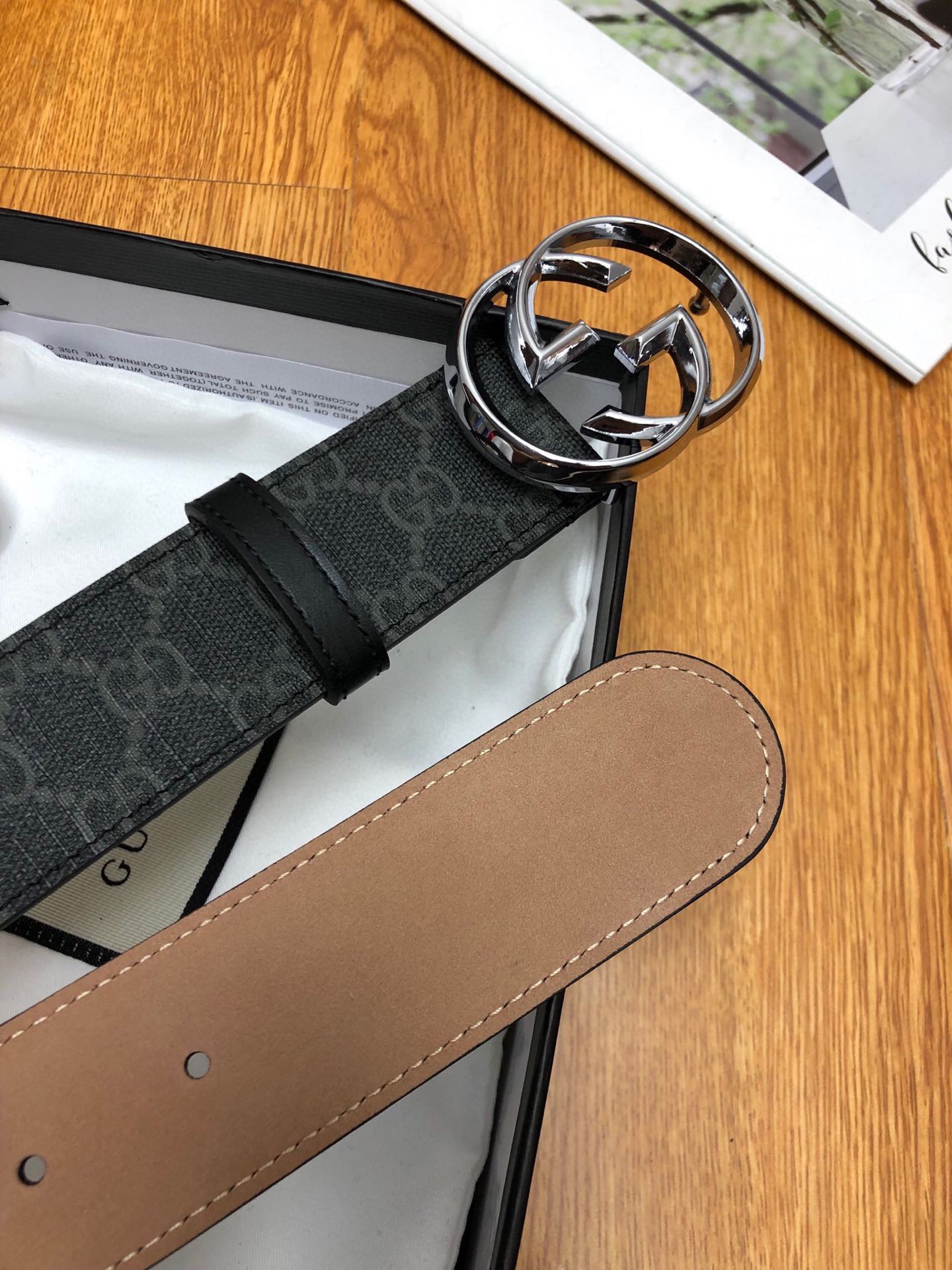 这款皮带是AAAAA 1:1 质量 (非常棒). 使用了和原版一模一样的材料. 商标部分也保持了和古奇/Gucci一样. 图片拍摄是实物皮带拍摄, 您所收到的实物保证和我们图片一模一样.