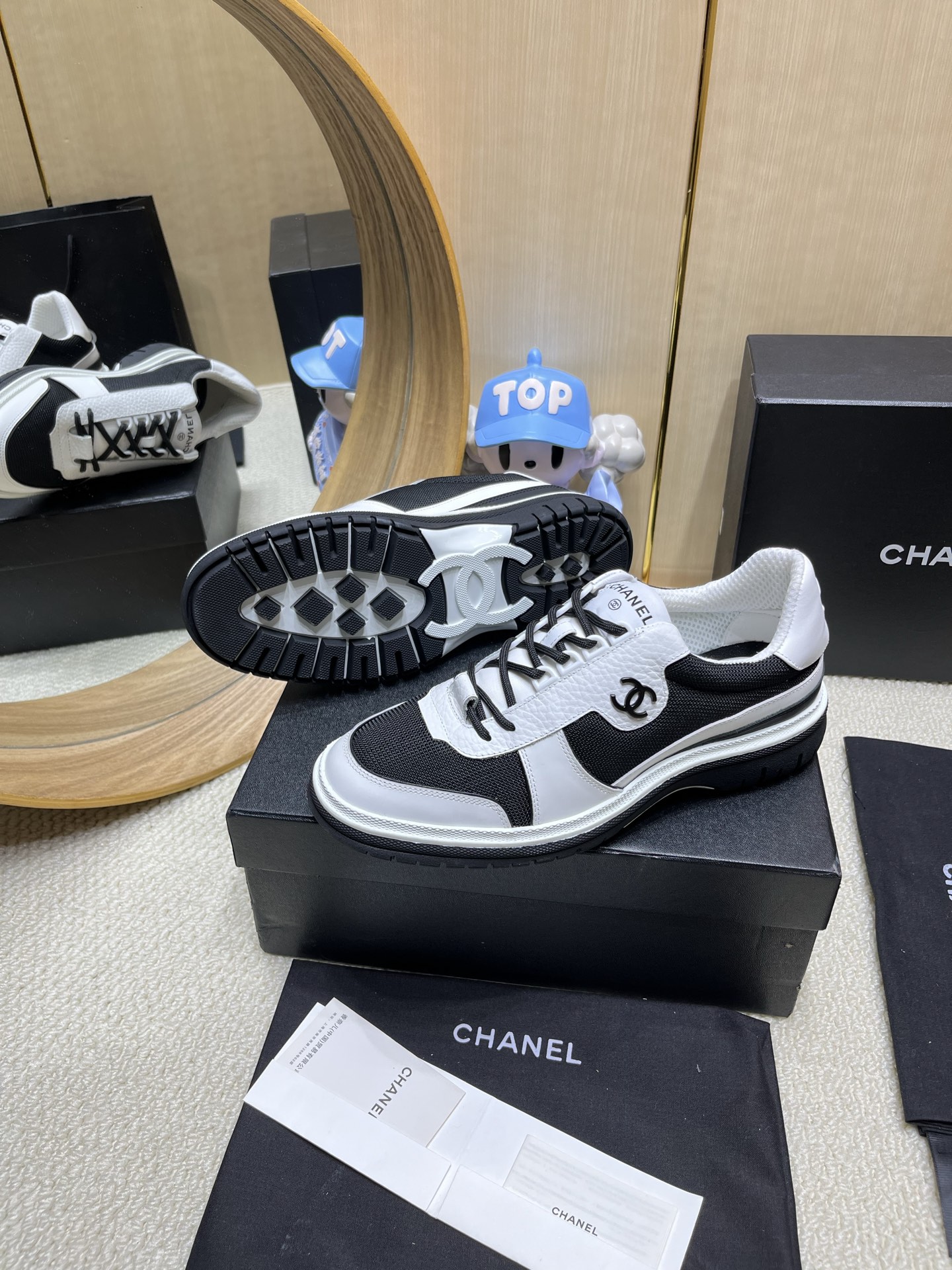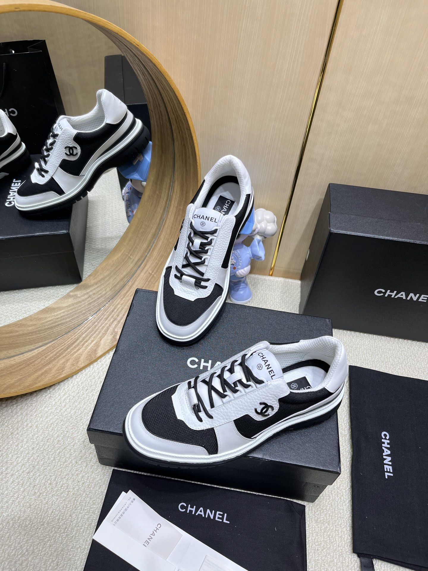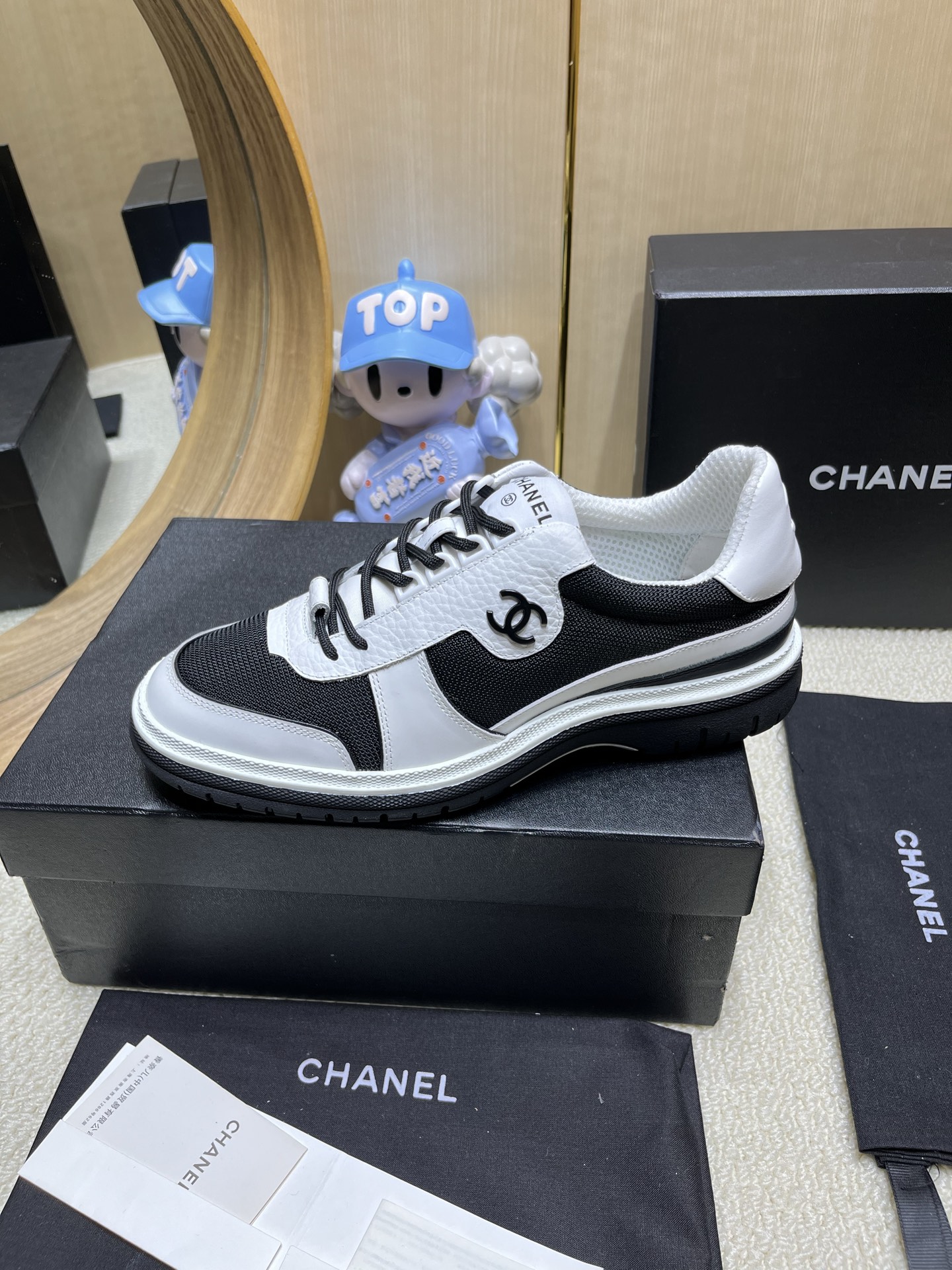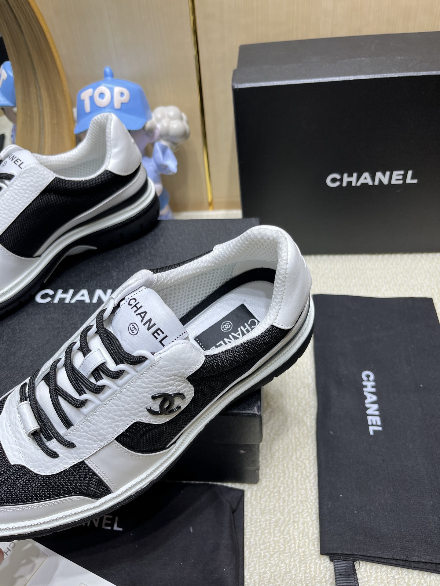 这款鞋子是AAAAA 1:1 质量 (非常棒). 使用了和原版一模一样的材料. 商标部分也保持了和香奈儿/Chanel一样. 图片拍摄是实物鞋子拍摄, 您所收到的实物保证和我们图片一模一样.