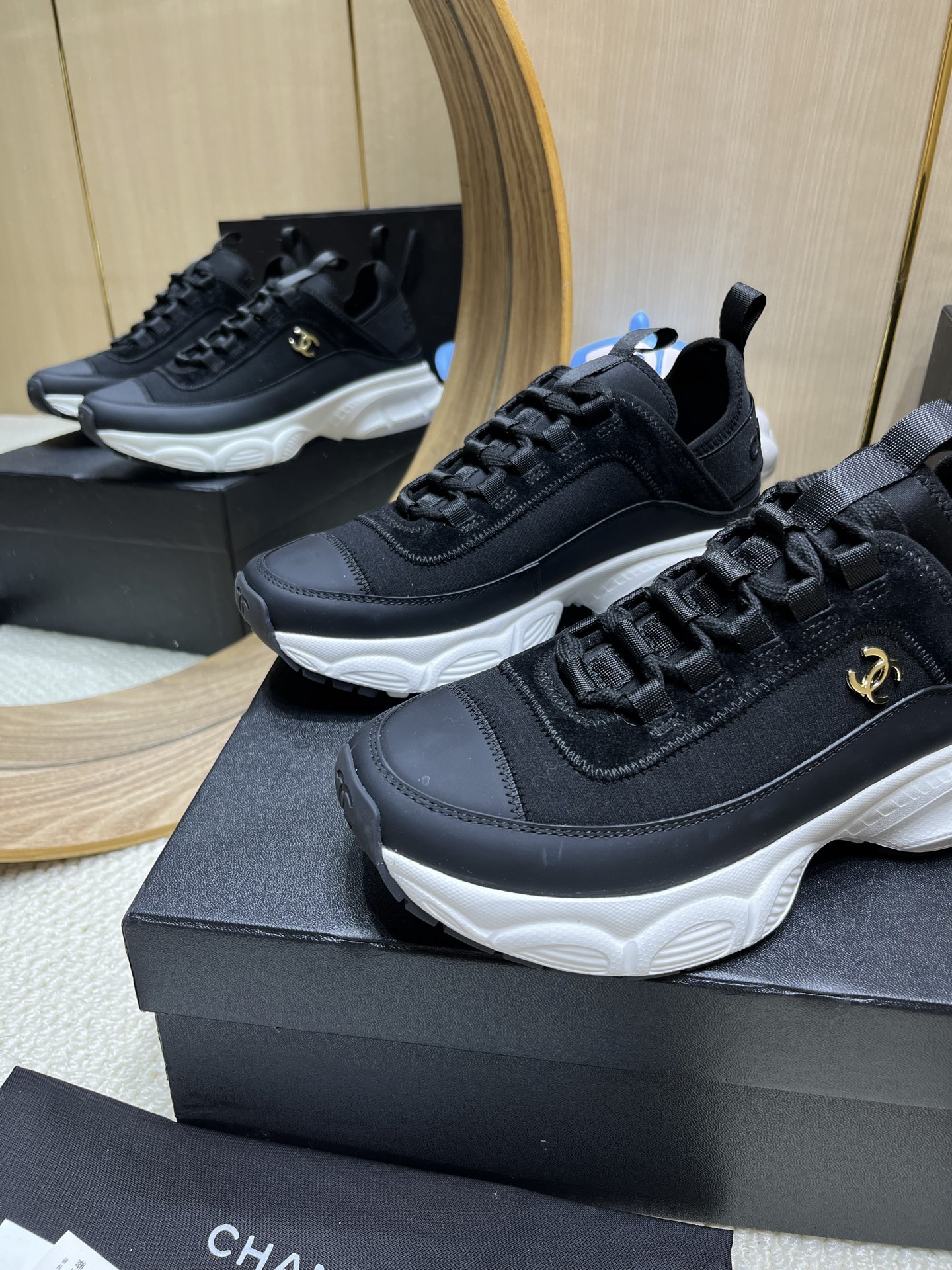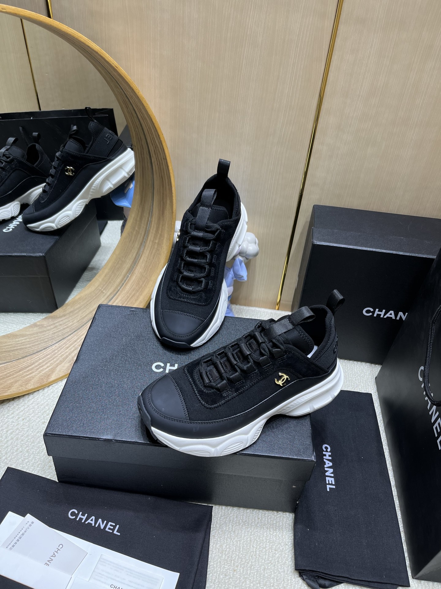 这款鞋子是AAAAA 1:1 质量 (非常棒). 使用了和原版一模一样的材料. 商标部分也保持了和香奈儿/Chanel一样. 图片拍摄是实物鞋子拍摄, 您所收到的实物保证和我们图片一模一样.