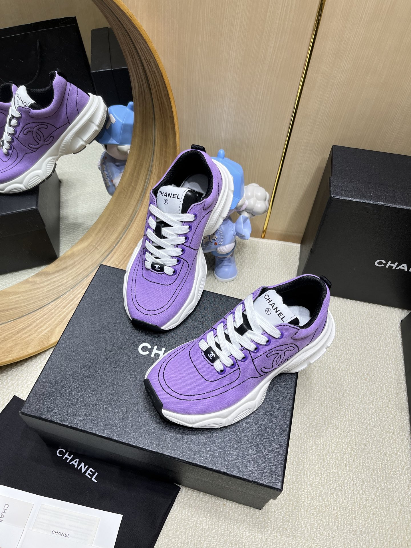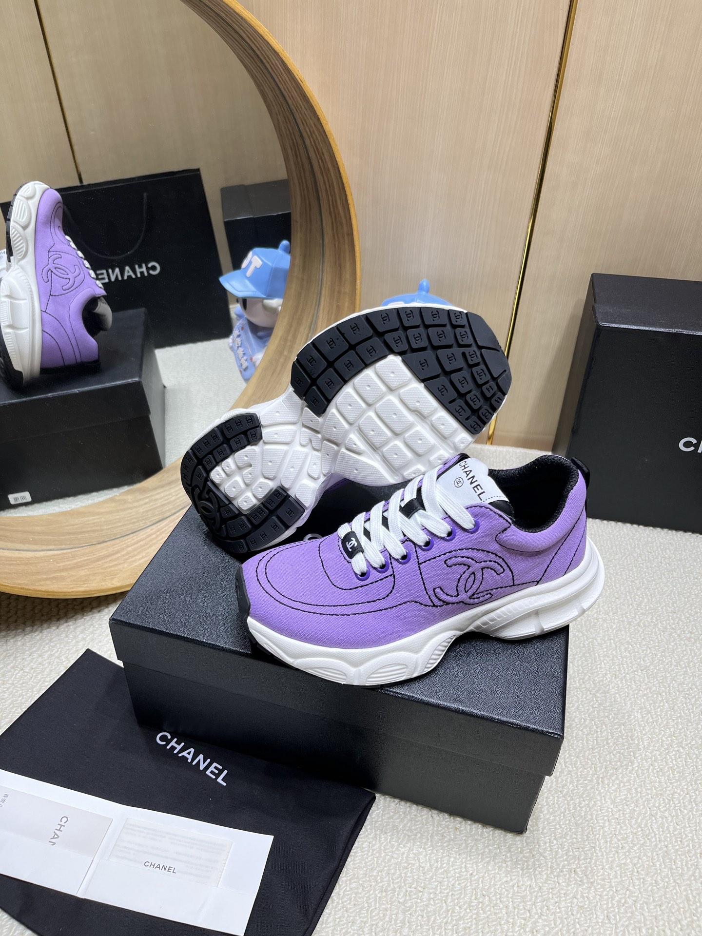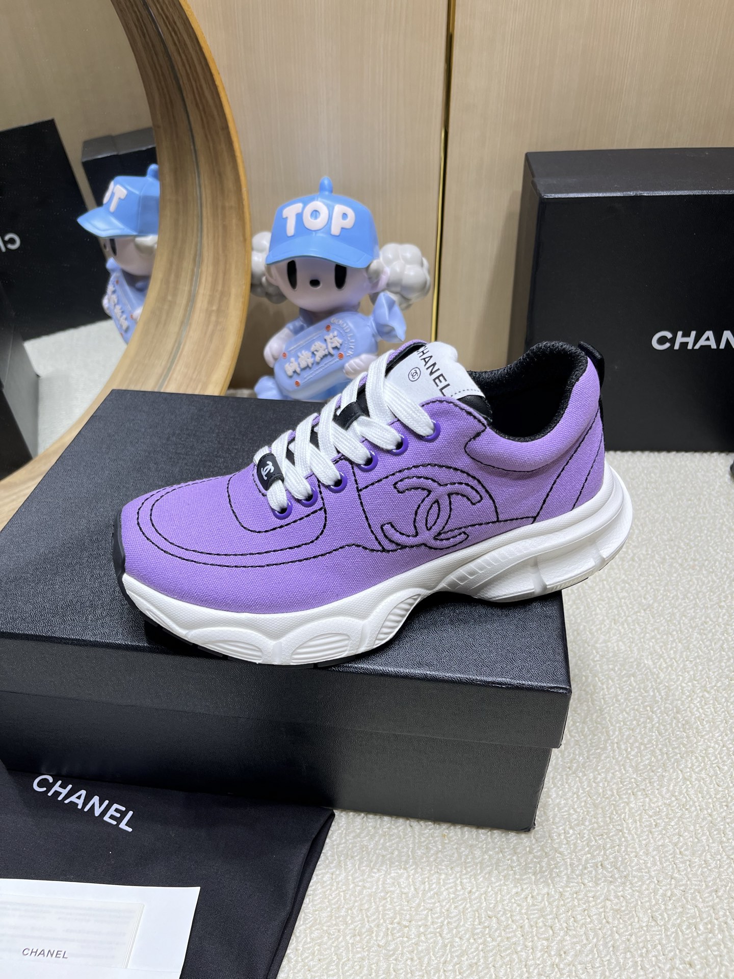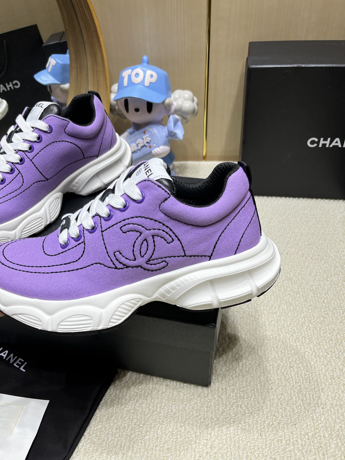 这款鞋子是AAAAA 1:1 质量 (非常棒). 使用了和原版一模一样的材料. 商标部分也保持了和香奈儿/Chanel一样. 图片拍摄是实物鞋子拍摄, 您所收到的实物保证和我们图片一模一样.
