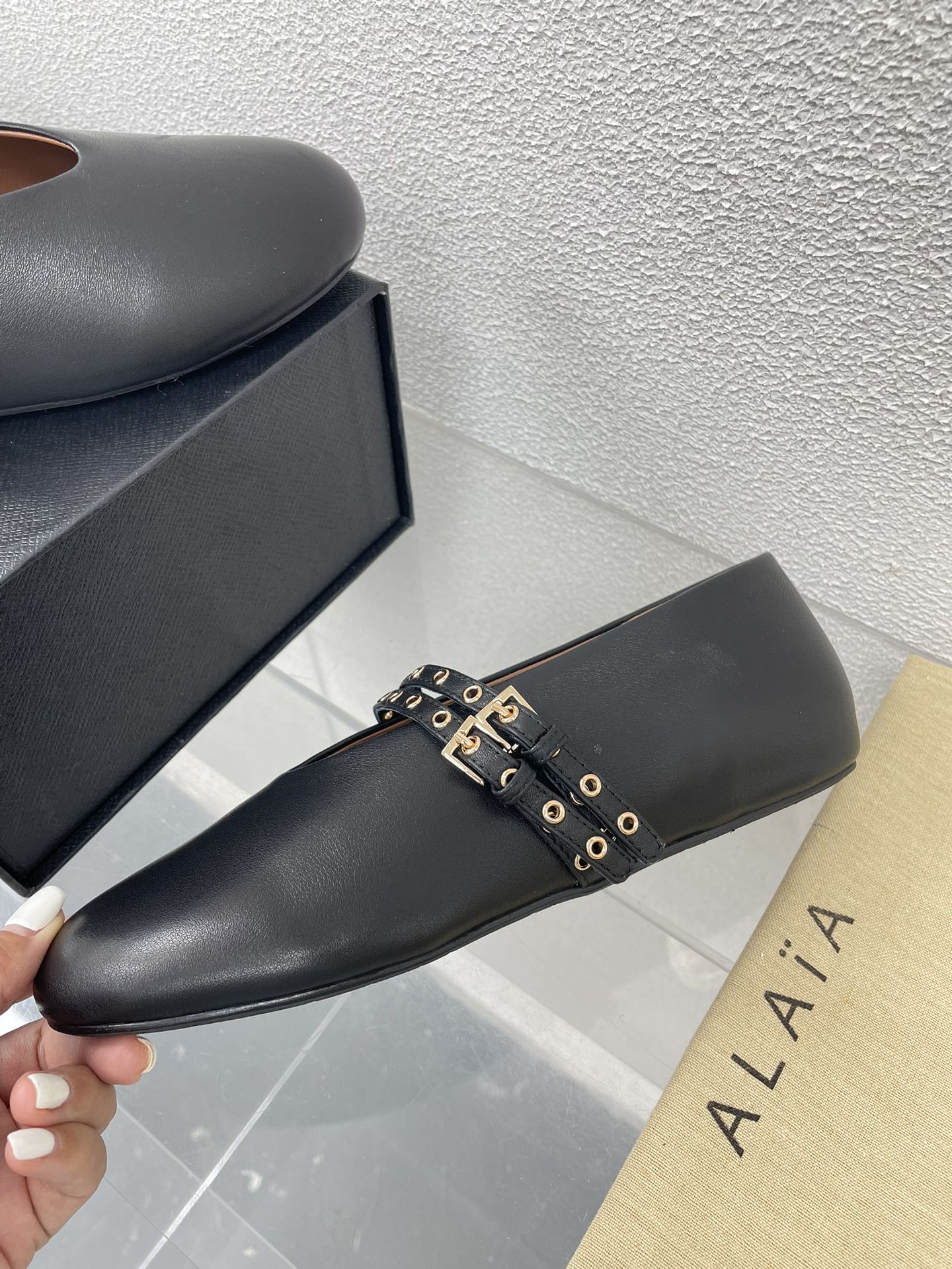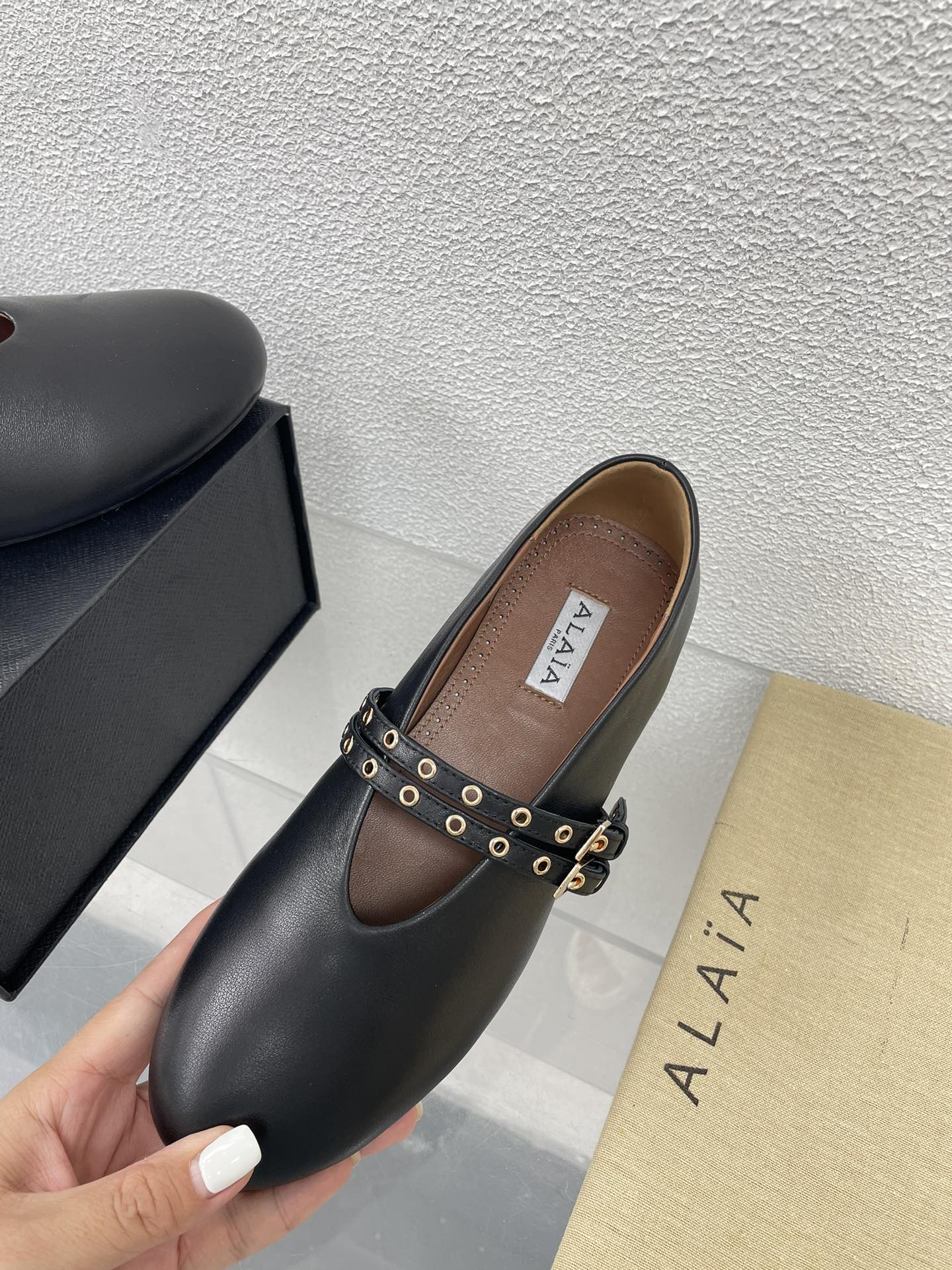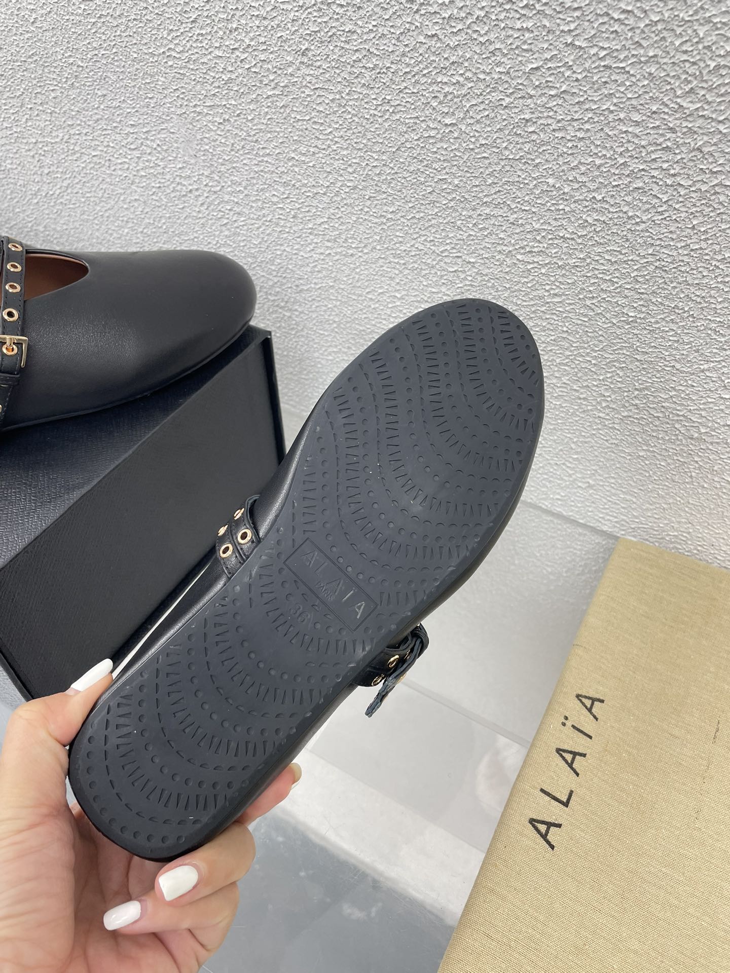 这款鞋子是AAAAA 1:1 质量 (非常棒). 使用了和原版一模一样的材料. 商标部分也保持了和Alaia一样. 图片拍摄是实物鞋子拍摄, 您所收到的实物保证和我们图片一模一样.
