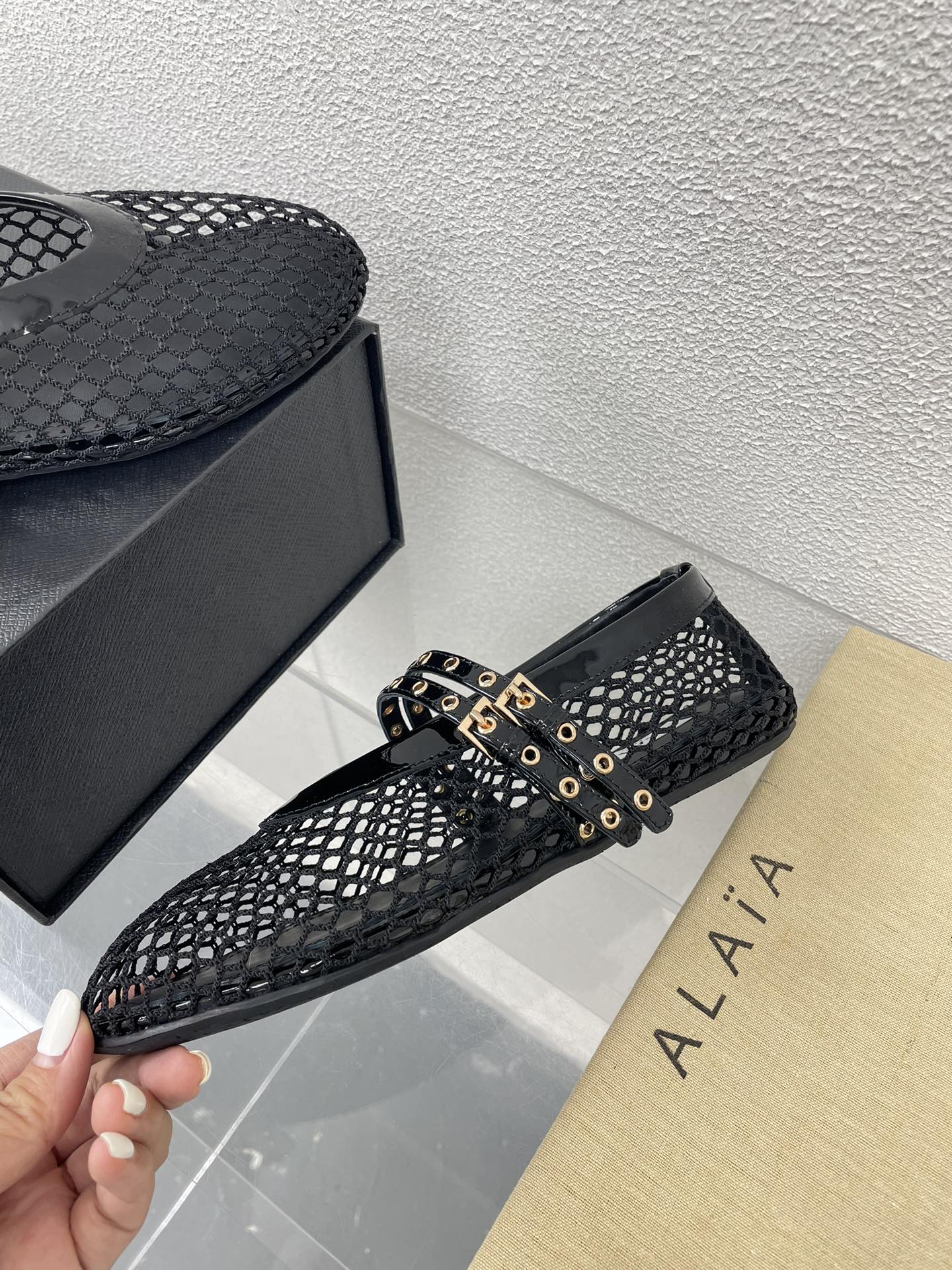 这款鞋子是AAAAA 1:1 质量 (非常棒). 使用了和原版一模一样的材料. 商标部分也保持了和Alaia一样. 图片拍摄是实物鞋子拍摄, 您所收到的实物保证和我们图片一模一样.