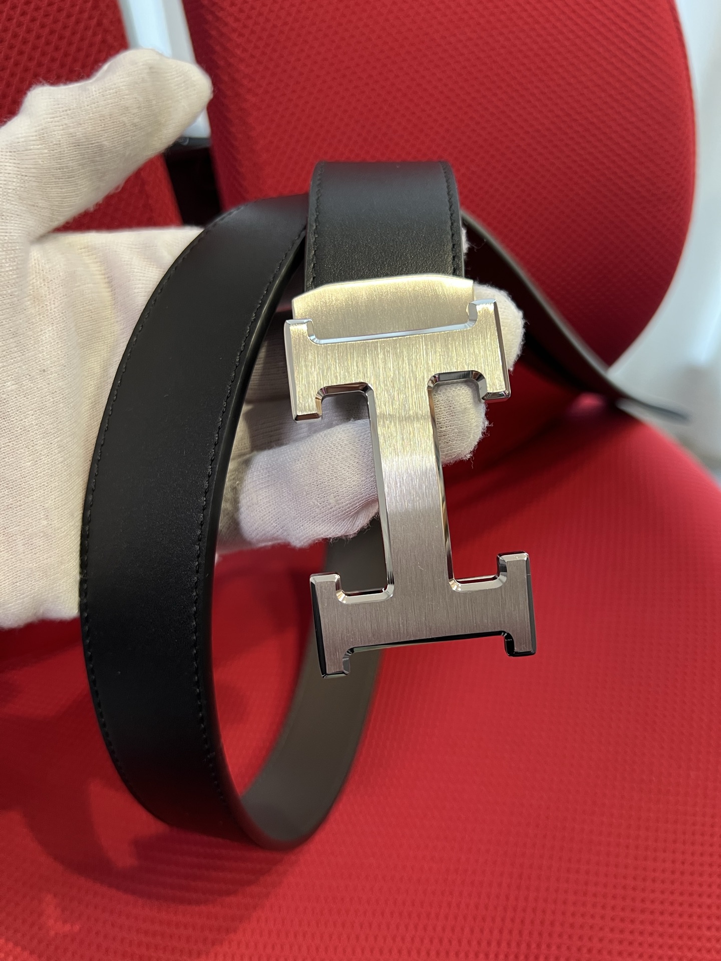 这款皮带是AAAAA 1:1 质量 (非常棒). 使用了和原版一模一样的材料. 商标部分也保持了和爱马仕/Hermes一样. 图片拍摄是实物皮带拍摄, 您所收到的实物保证和我们图片一模一样.