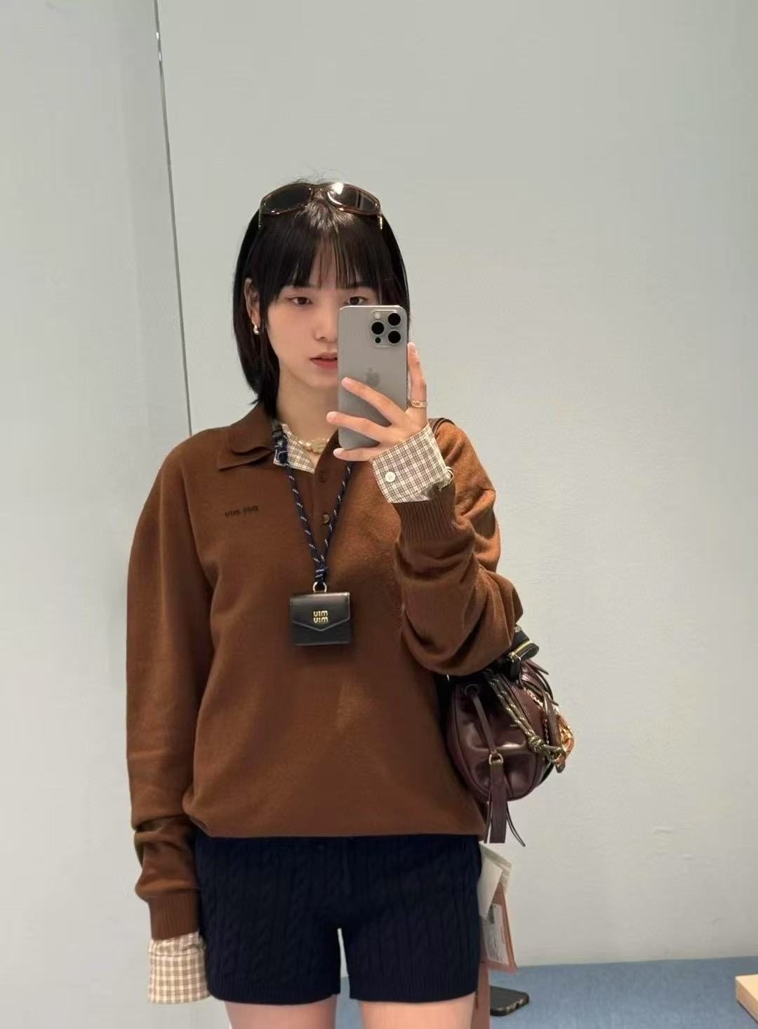 这款衣服是AAAAA 1:1 质量 (非常棒). 使用了和原版一模一样的材料. 商标部分也保持了和缪缪/Miu Miu一样. 图片拍摄是实物衣服拍摄, 您所收到的实物保证和我们图片一模一样.