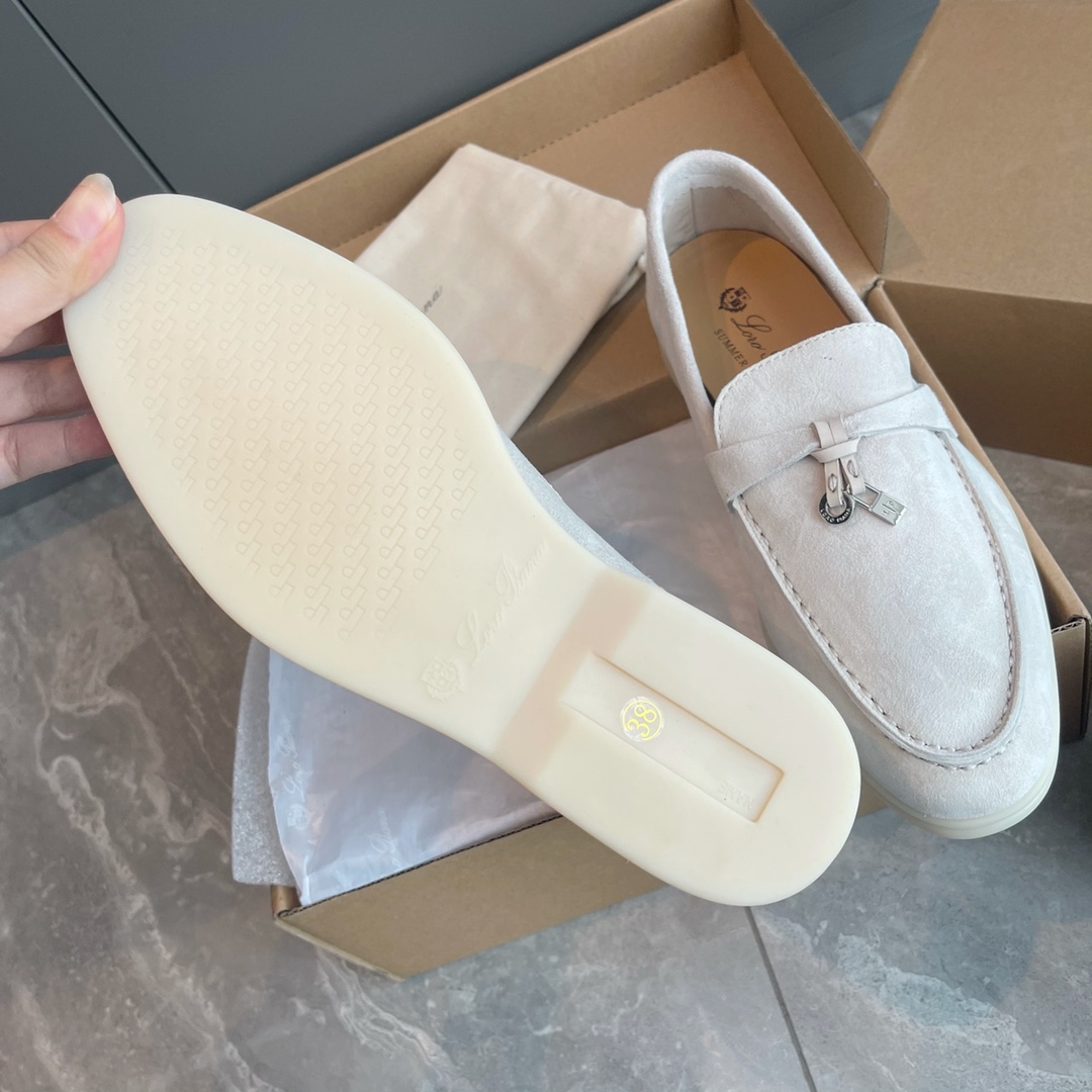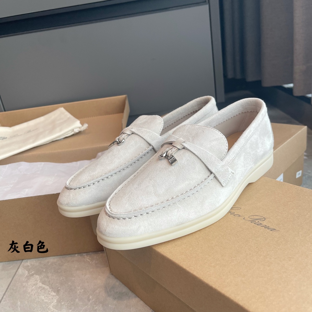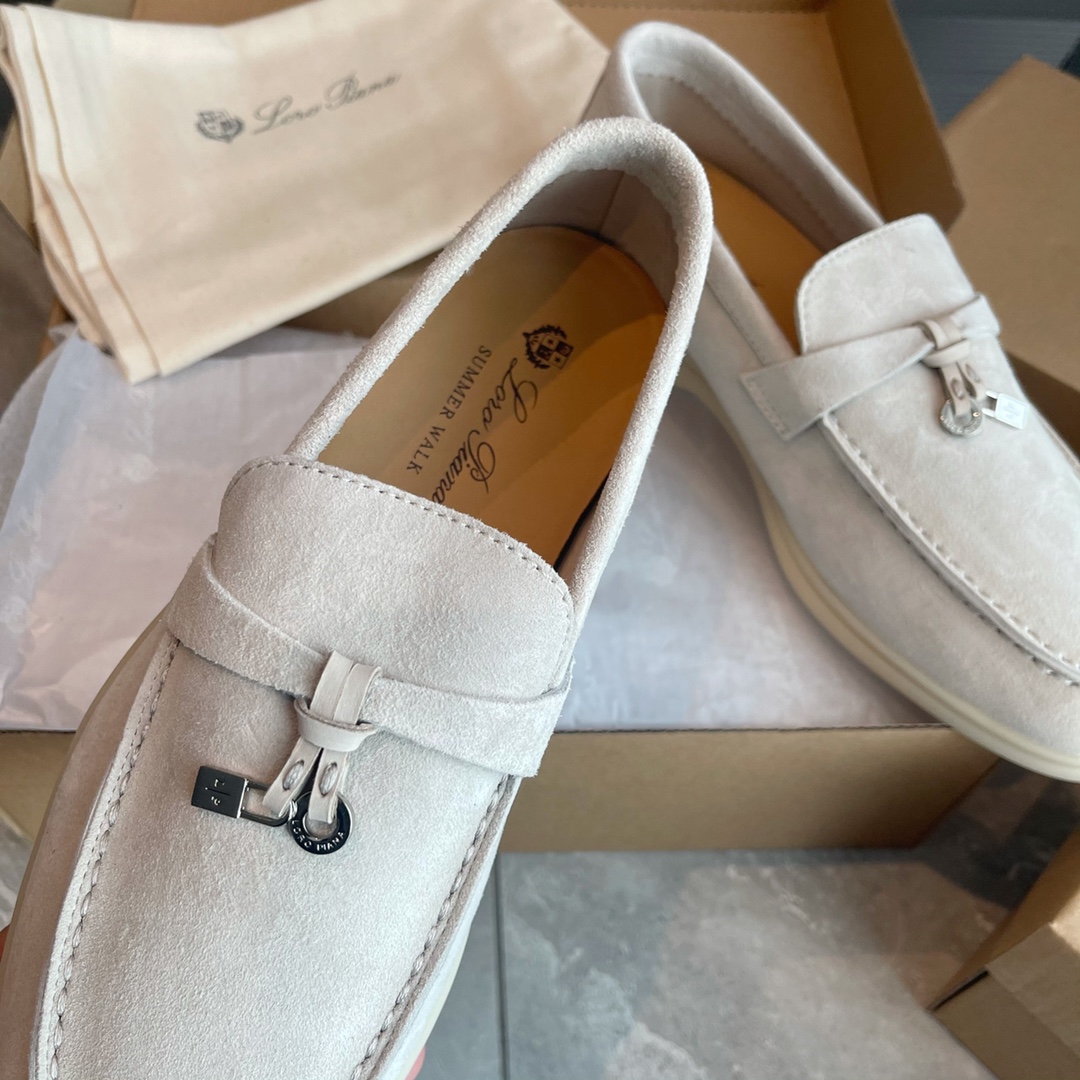 这款鞋子是AAAAA 1:1 质量 (非常棒). 使用了和原版一模一样的材料. 商标部分也保持了和洛罗皮亚纳/Loro Piana一样. 图片拍摄是实物鞋子拍摄, 您所收到的实物保证和我们图片一模一样.